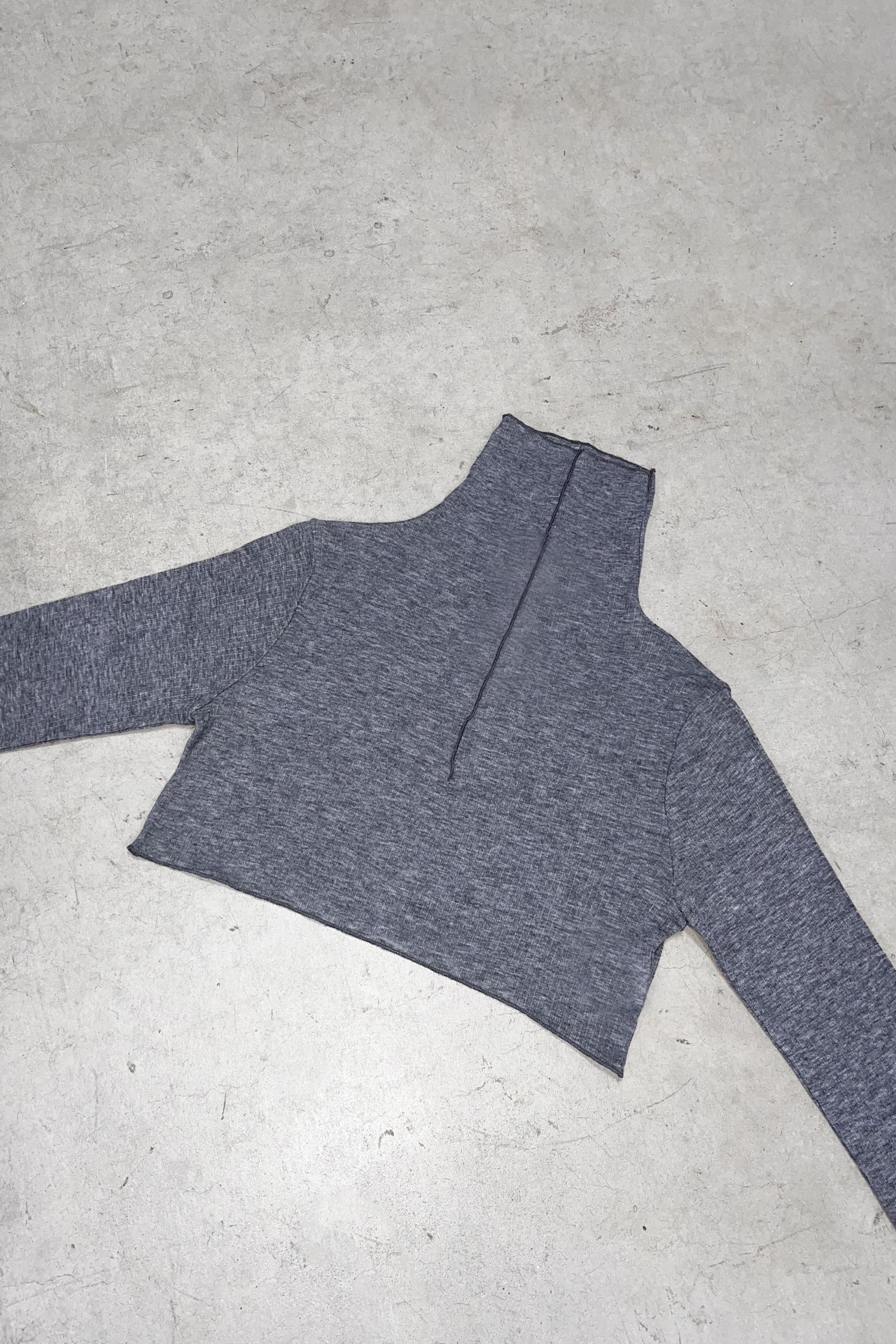 Turtleneck. Lightweight. Long sleeve. Cropped. 20" length based on size S.