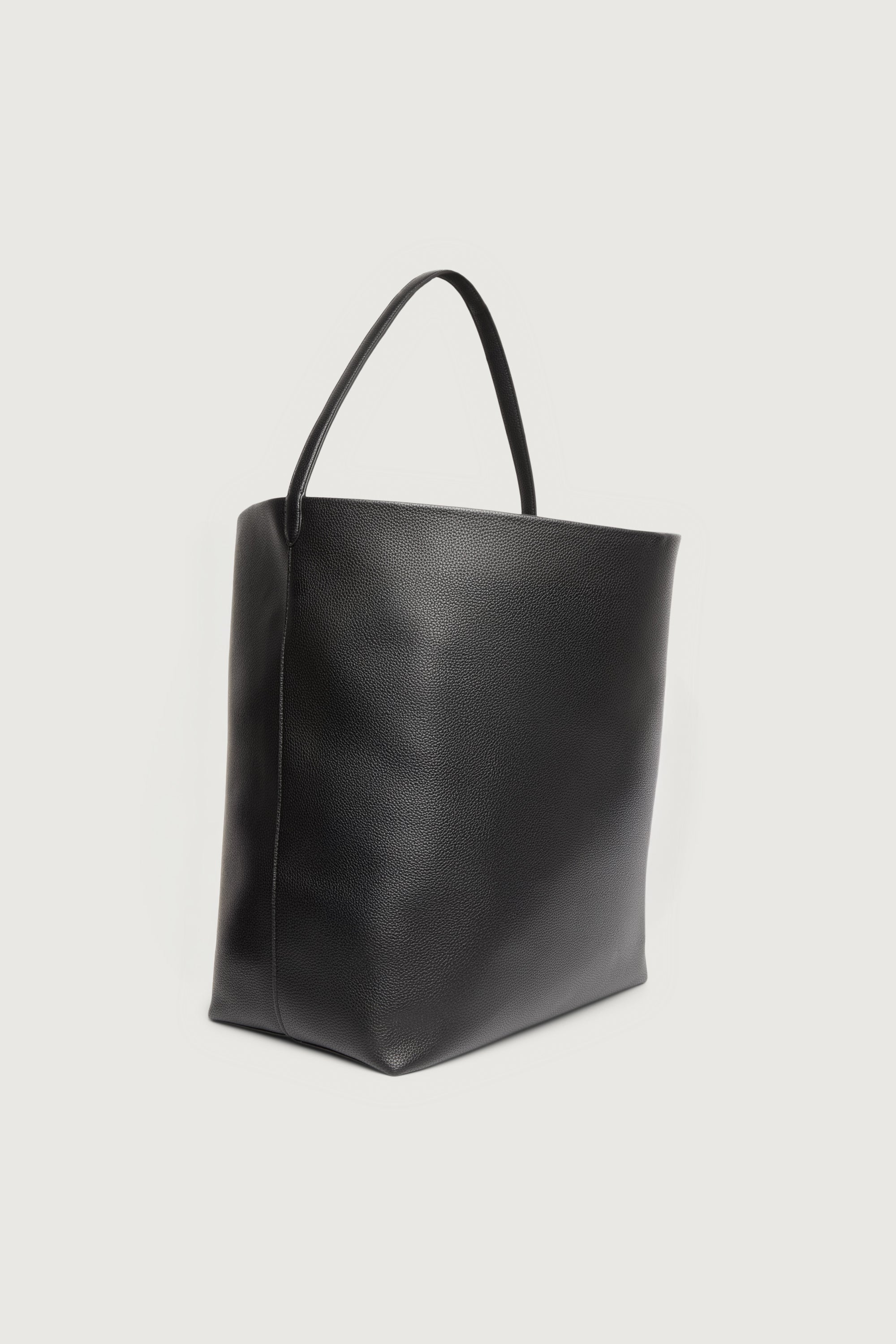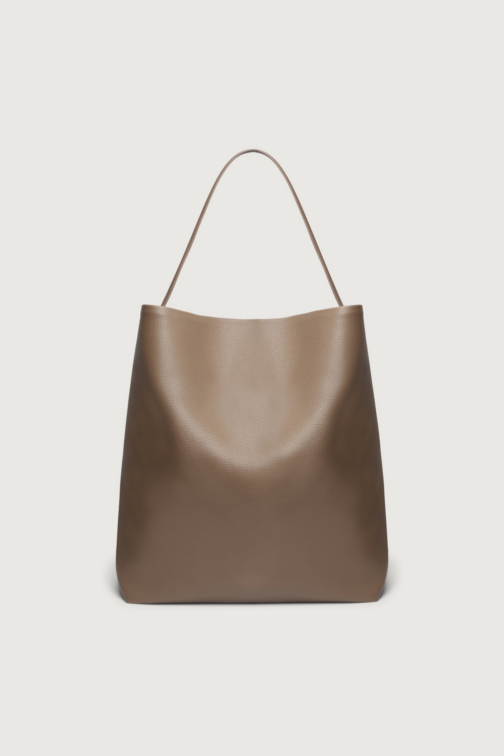Soft vegan pebbled leather. Very spacious vegan suede lined interior. Lobster clasp closure. Very spacious vegan suede lined interior. Structured base.