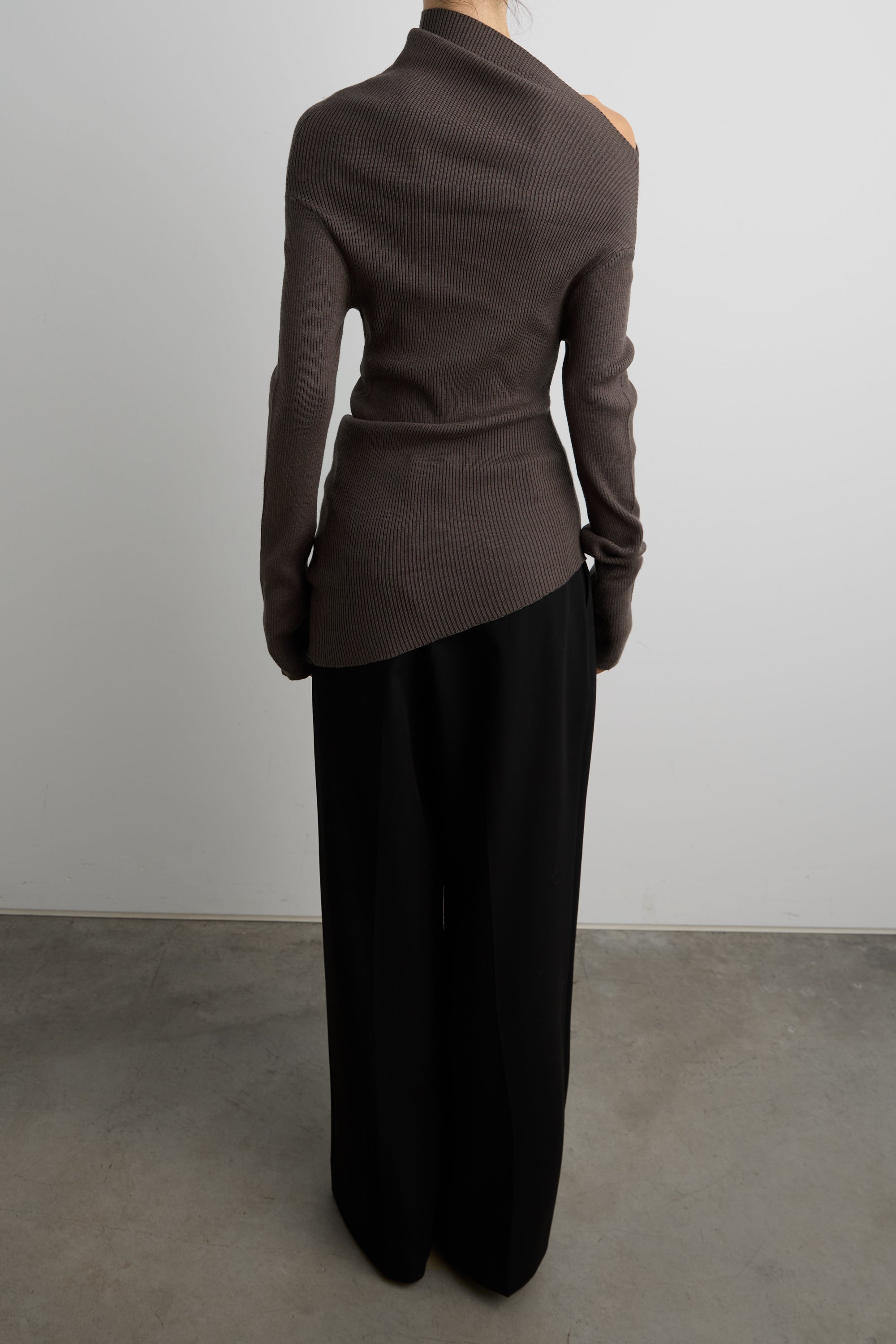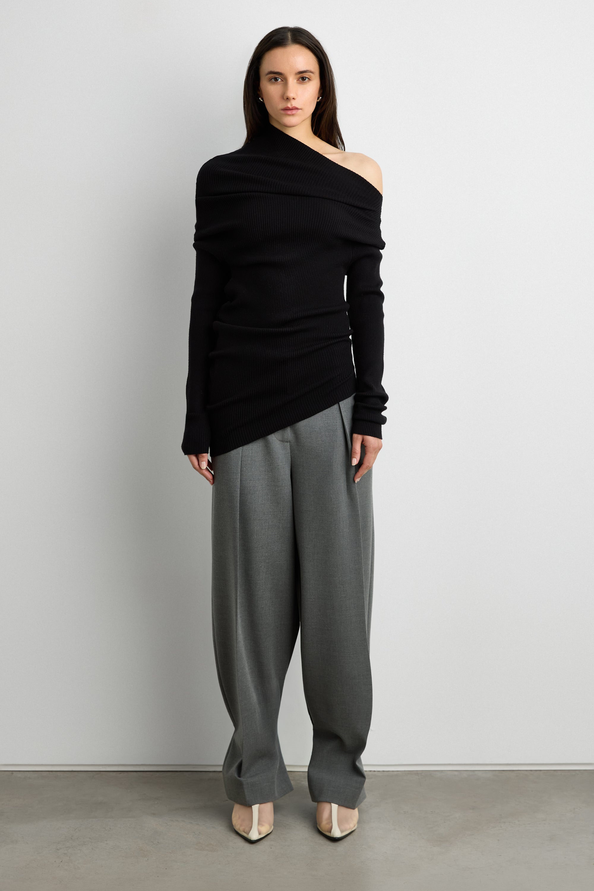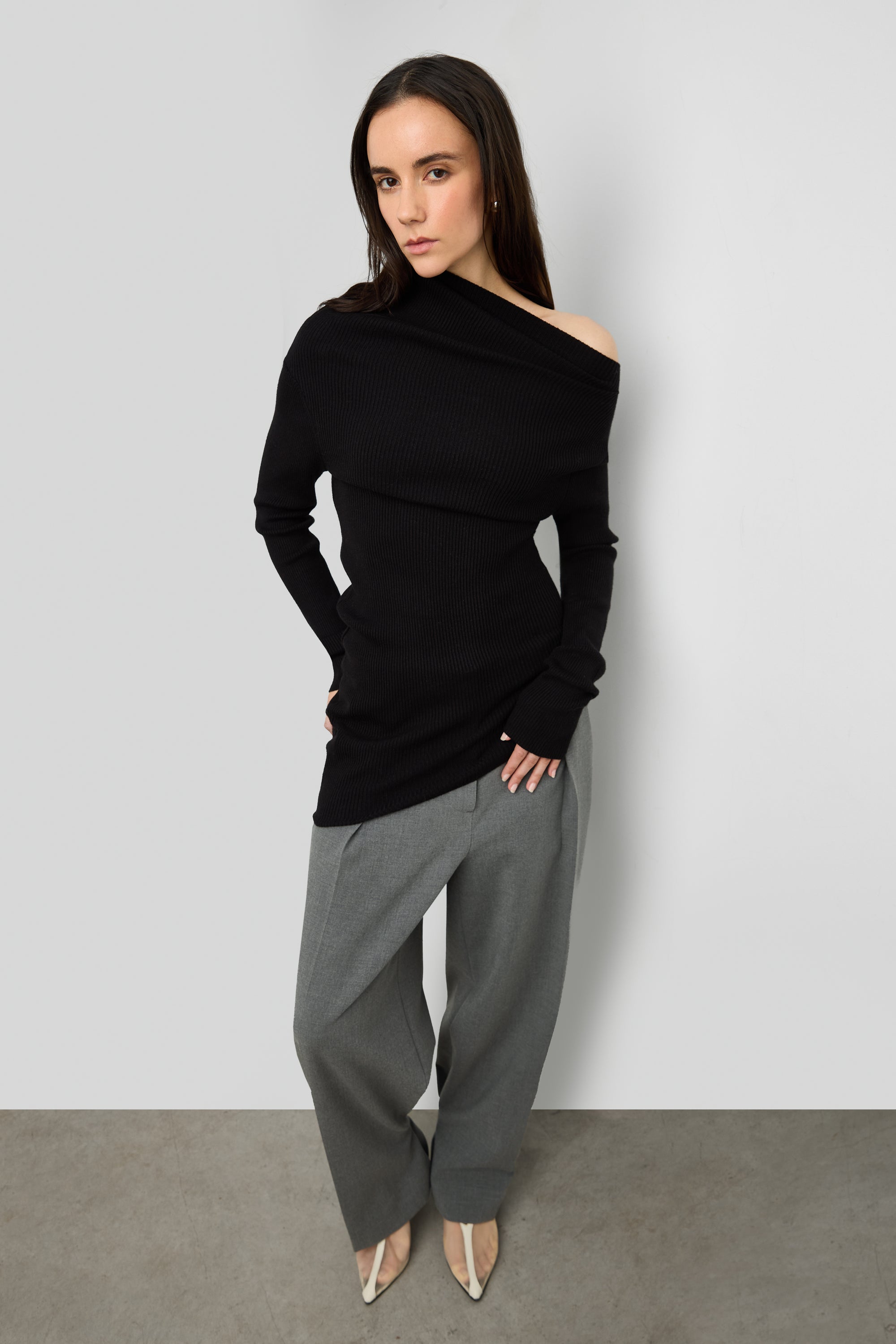 ASYMMETRICAL OFF-SHOULDER RIBBED KNIT TOP