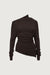 This draped off-shoulder knit top is crafted from a soft, stretchy rib knit that contours the body while creating a fluid, asymmetrical neckline. Designed with extended sleeves and a sculpted fit, it brings a refined yet effortless edge to cold-weather dressing. Pair it with tailored trousers or denim for a modern, elevated look.