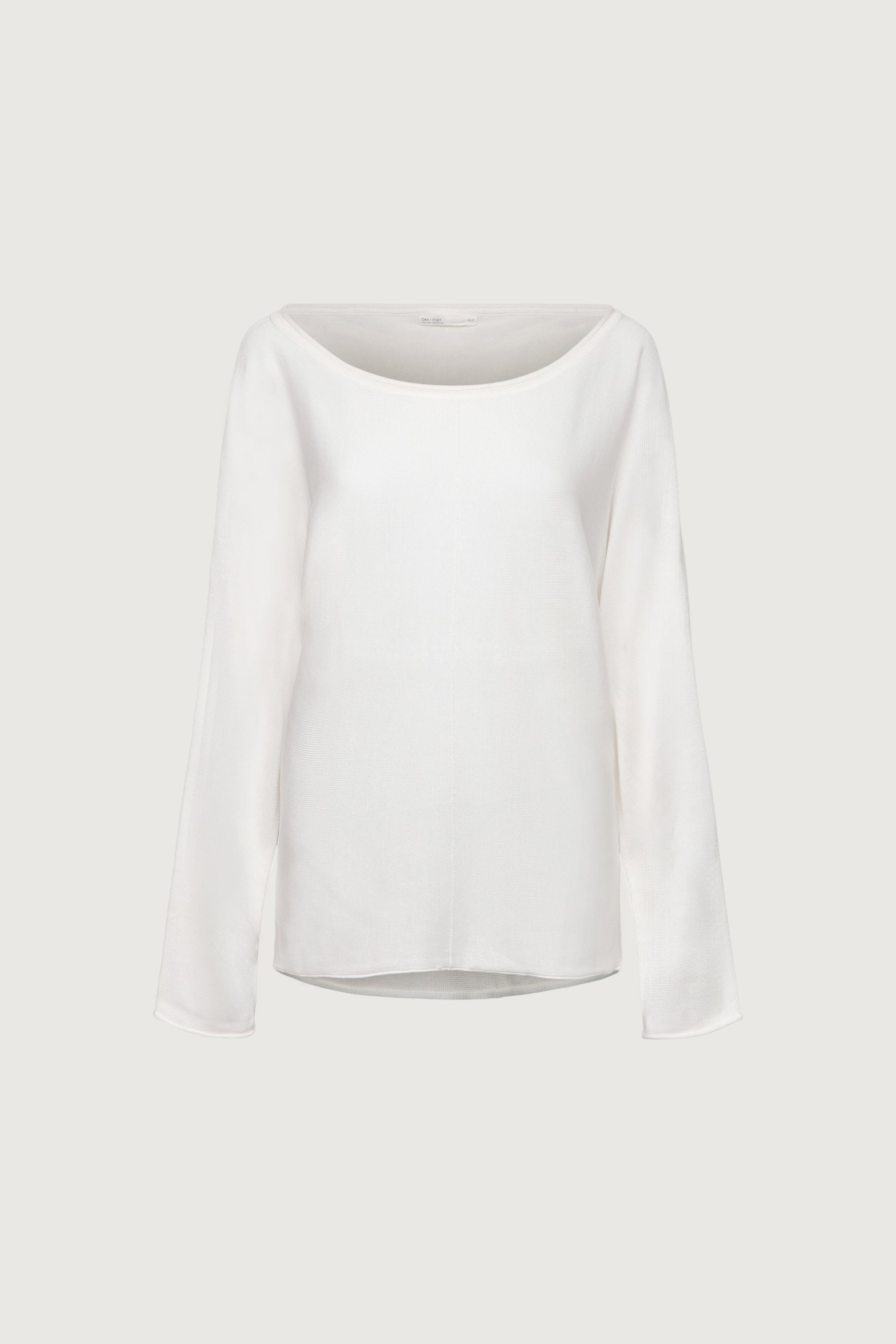 Lyocell linen blend. Wide neckline with rolled finish. Dolman sleeves. Exposed seam.