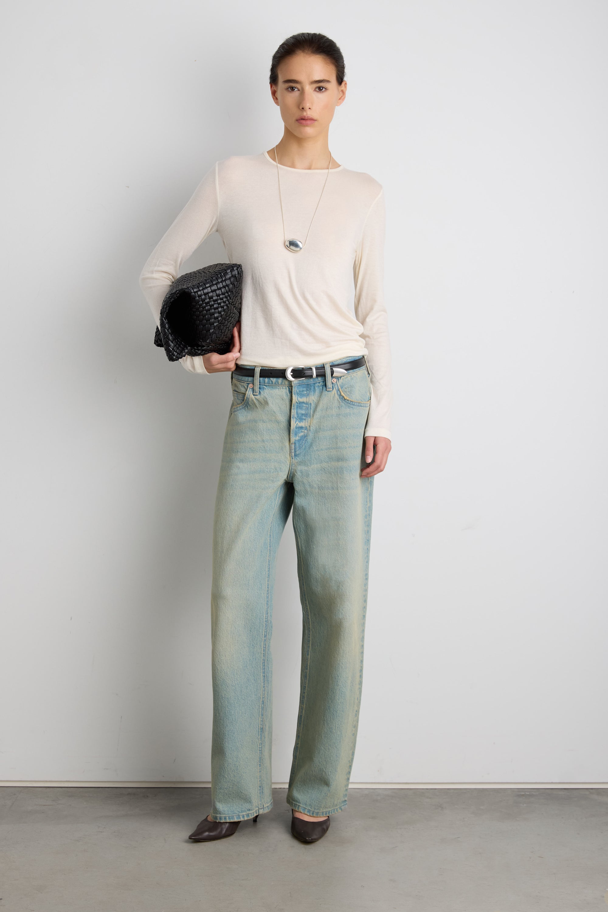 These straight leg vintage wash jeans are made in a relaxed fit and has a mid-rise waist. A staple to own this season, build endless outfits with this pair. Go for a more relaxed look and size up so it sit lower on the waist.