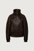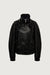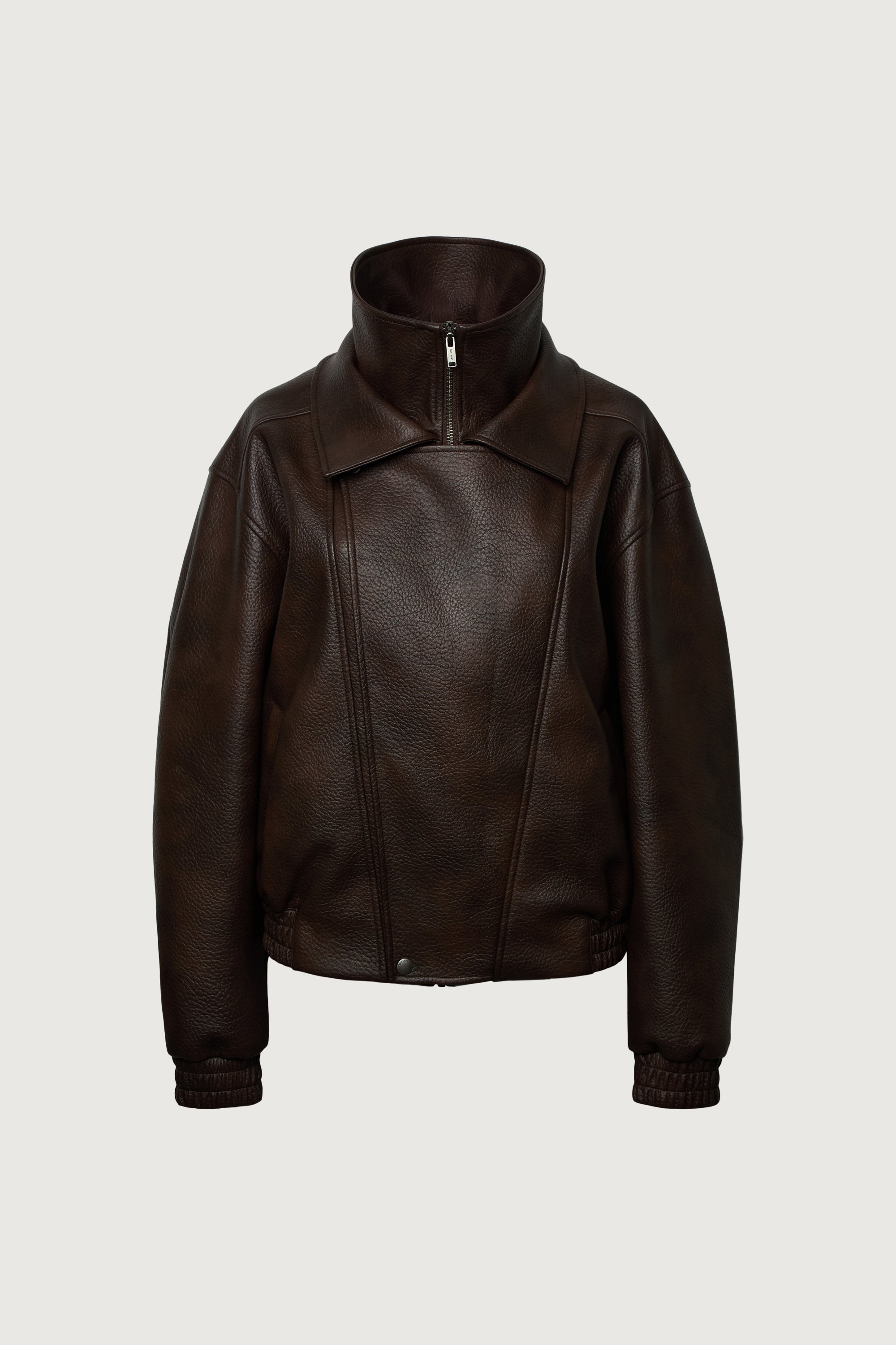 Vegan leather. Double collar. Zip-up front closure. Front flap with snap buttons. Dropped shoulders. Slash side pockets. Elasticated hem and cuffs.