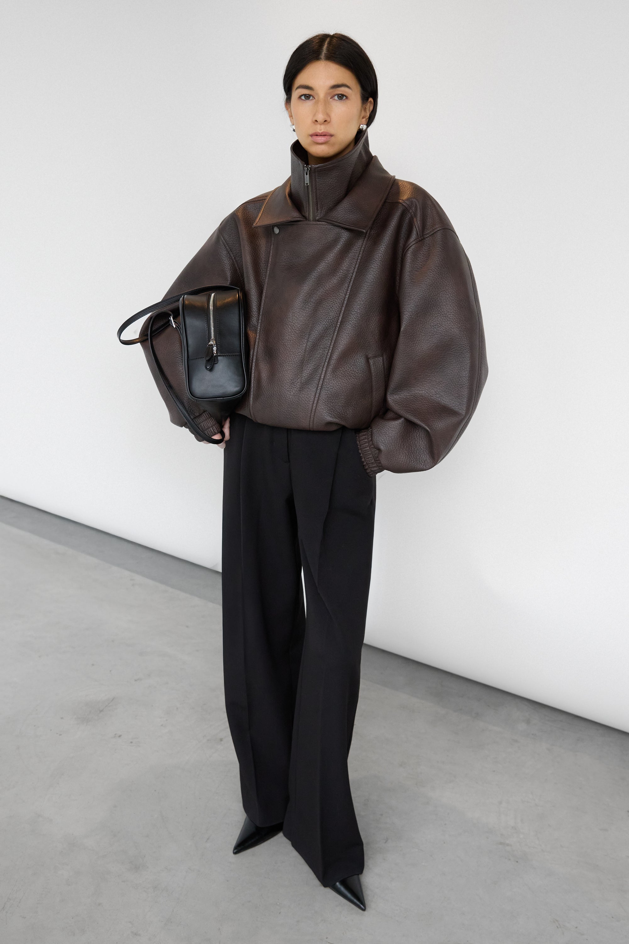 - Model in Brown is 5'7" and is wearing a size S