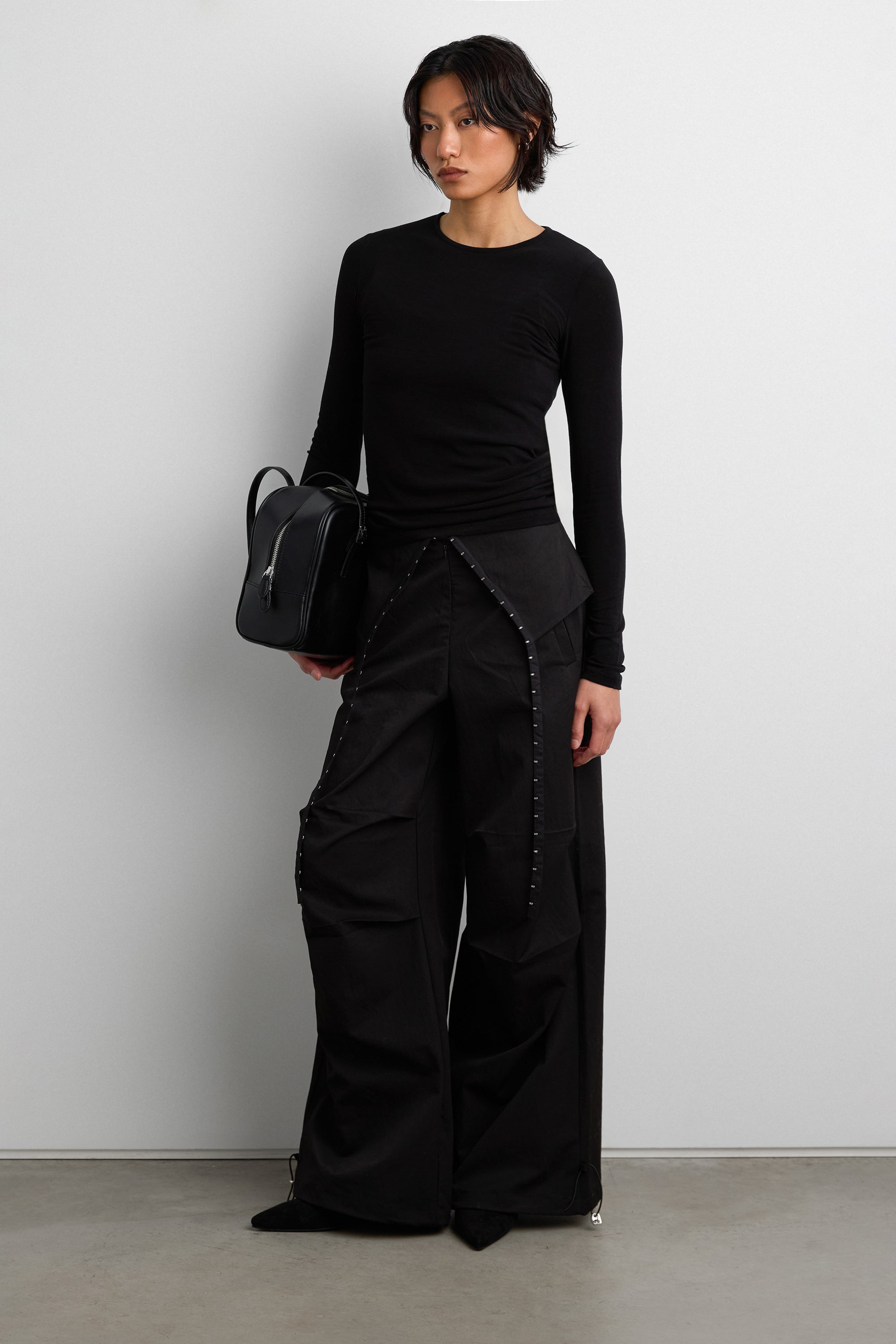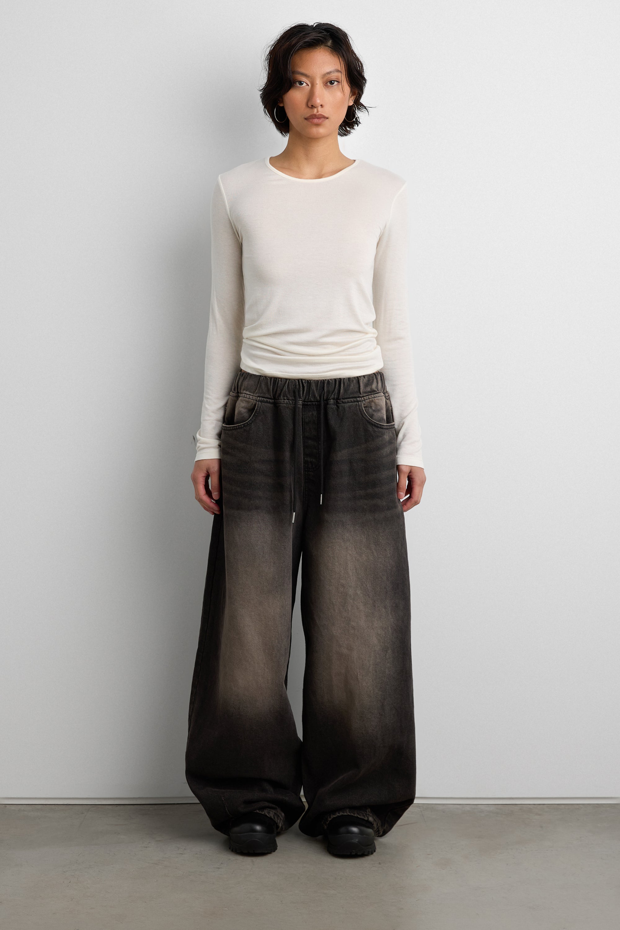 This long sleeve top is crafted from soft Tencel fabric that drapes naturally on the body. Designed with a classic crew neckline and a relaxed silhouette, it offers effortless comfort and versatility for layering or wearing on its own.