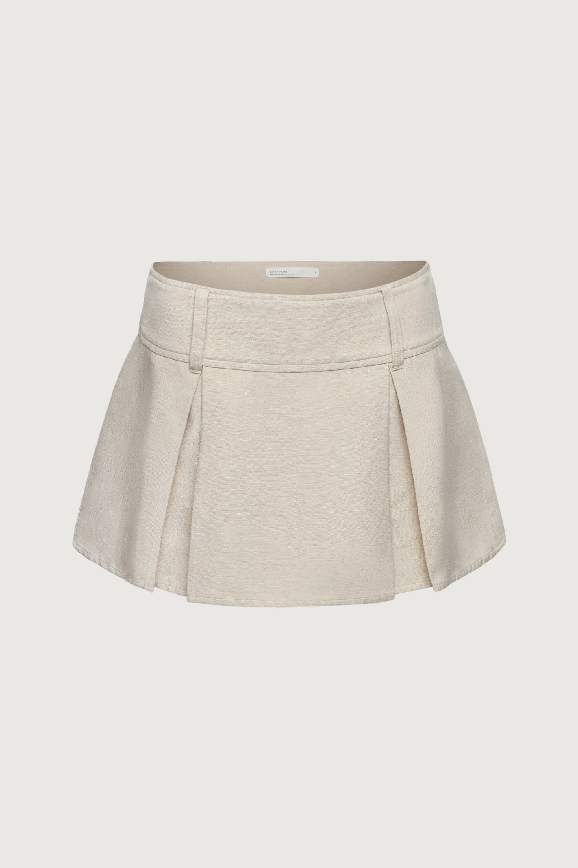 This linen blend pleated mini skirt is made in a classic fit and is detailed with a wide belt loop and is lined with shorts. Wear yours as a set with the Linen Blend Halter Square Neck Top or with style it casually with a crewneck t-shirt .