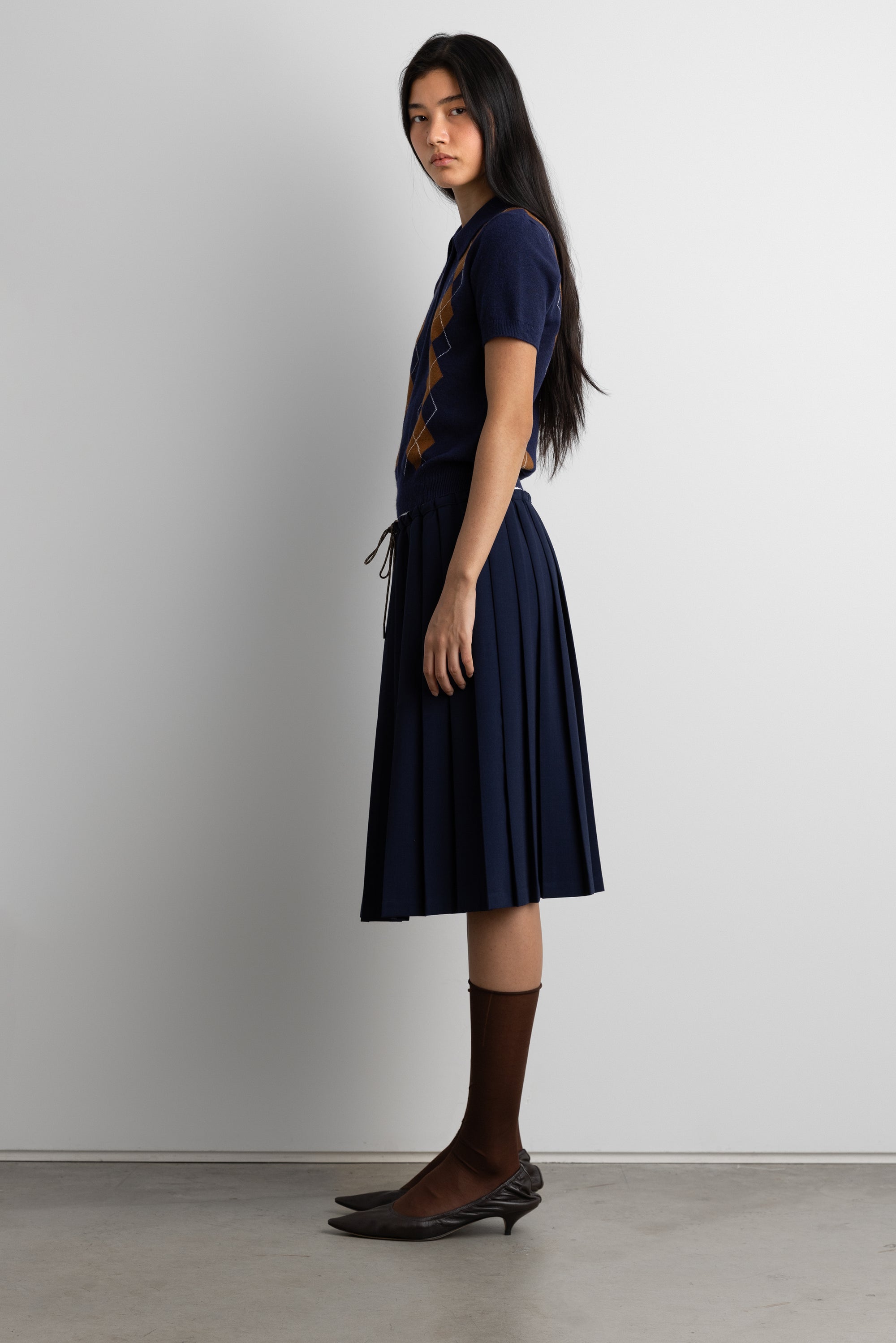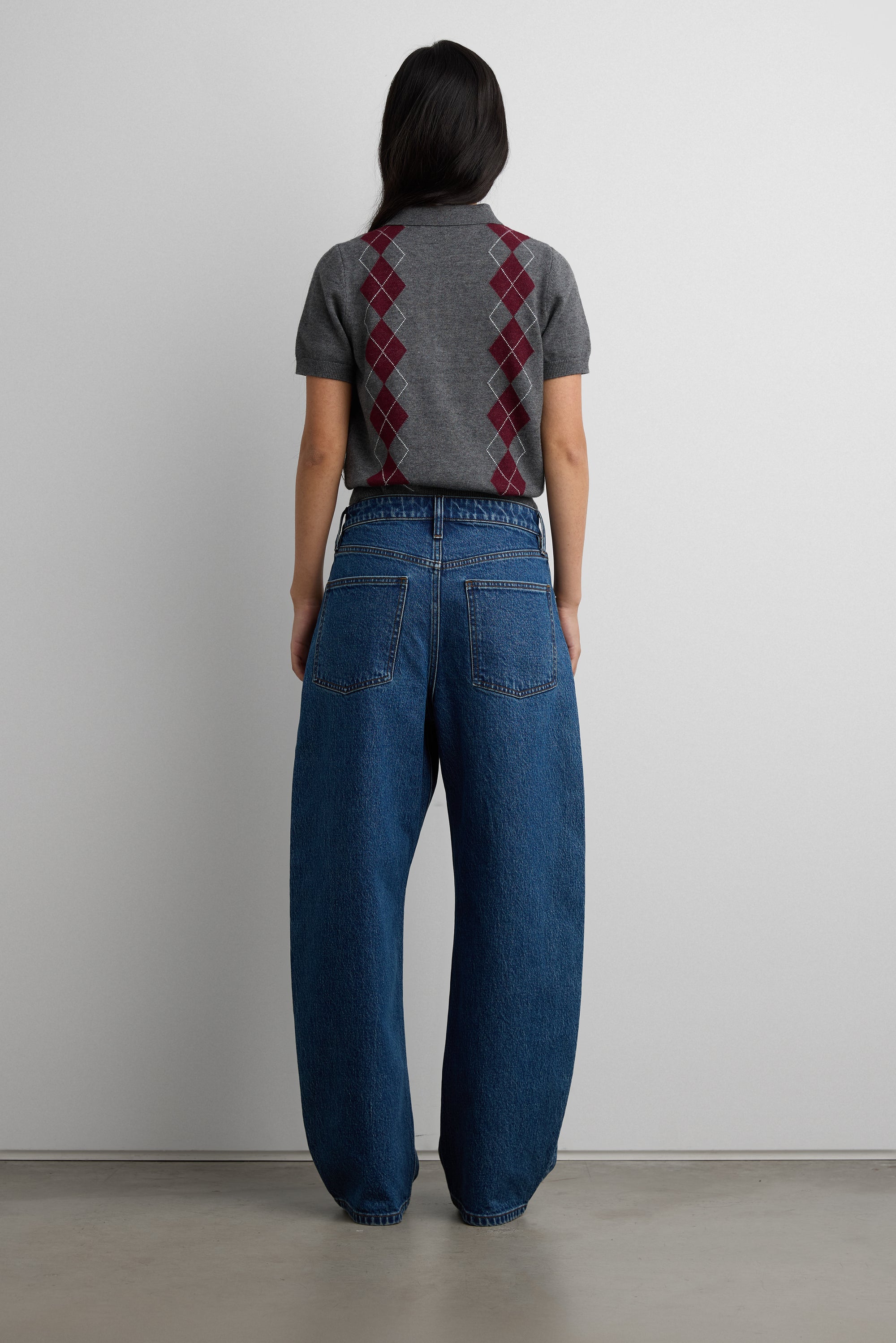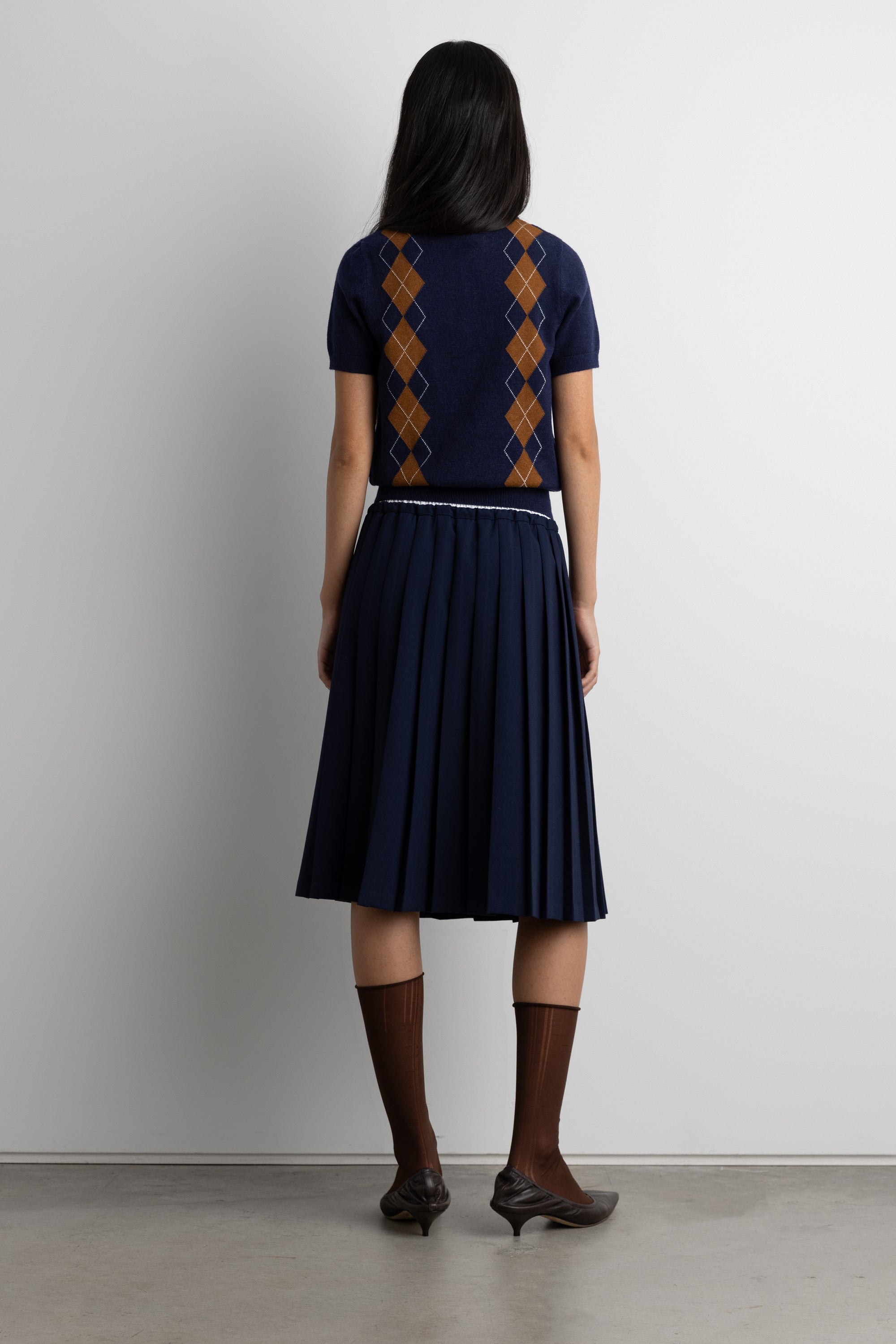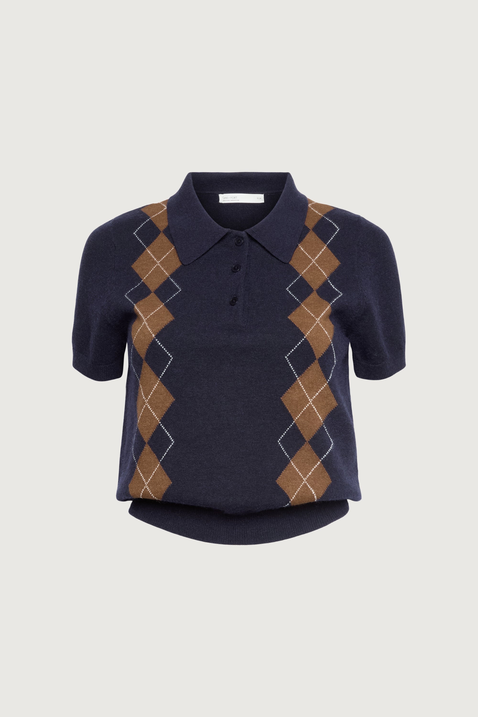 This polo short sleeve sweater is made in a slim fit and has an argyle intarsia knit pattern. A new classic to own this season, wear yours with a midi skirt and loafers.