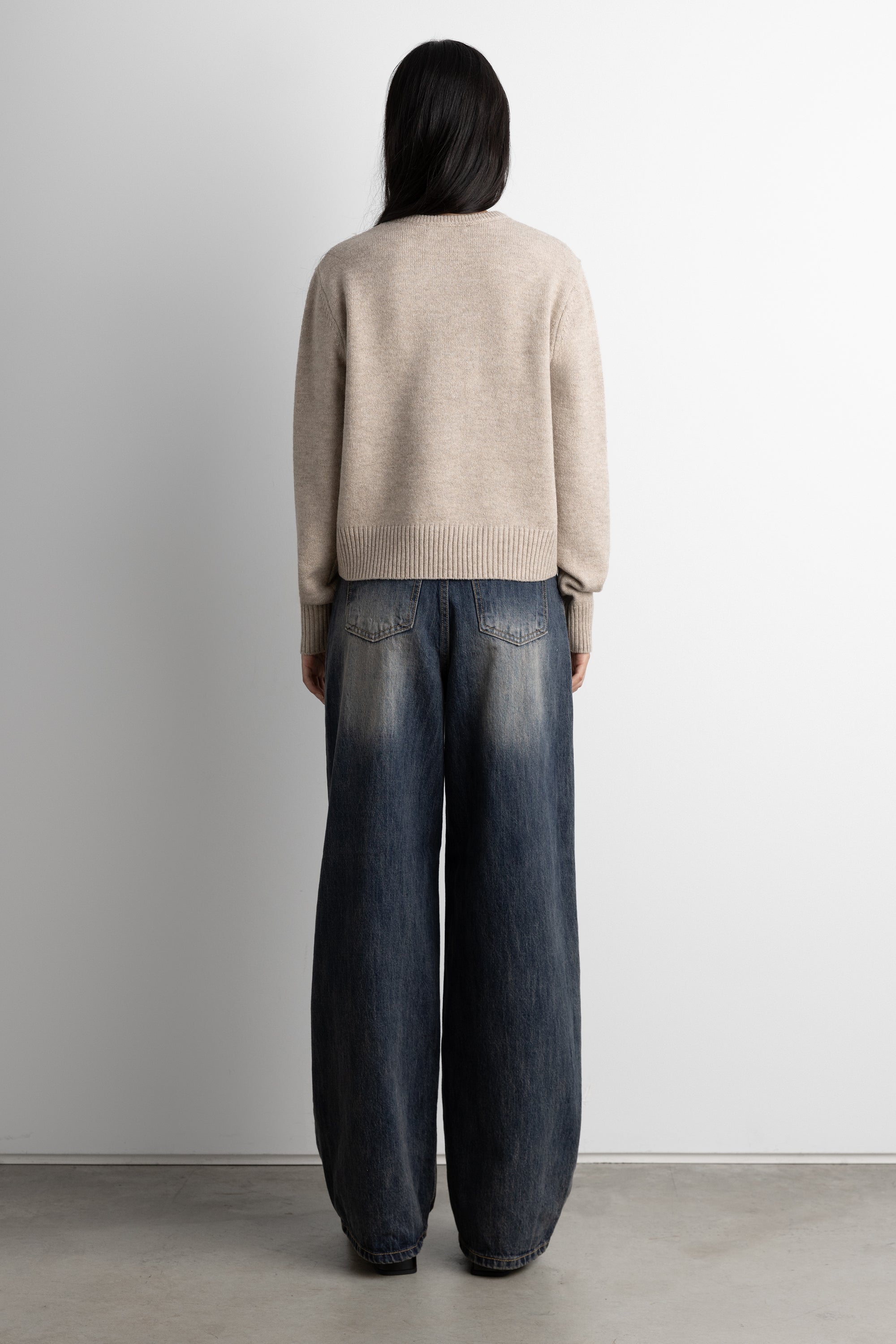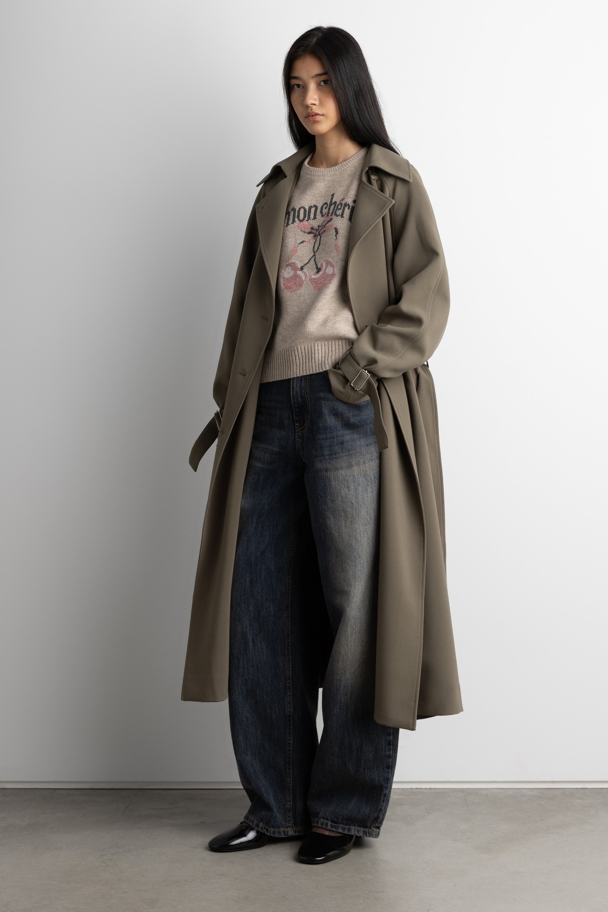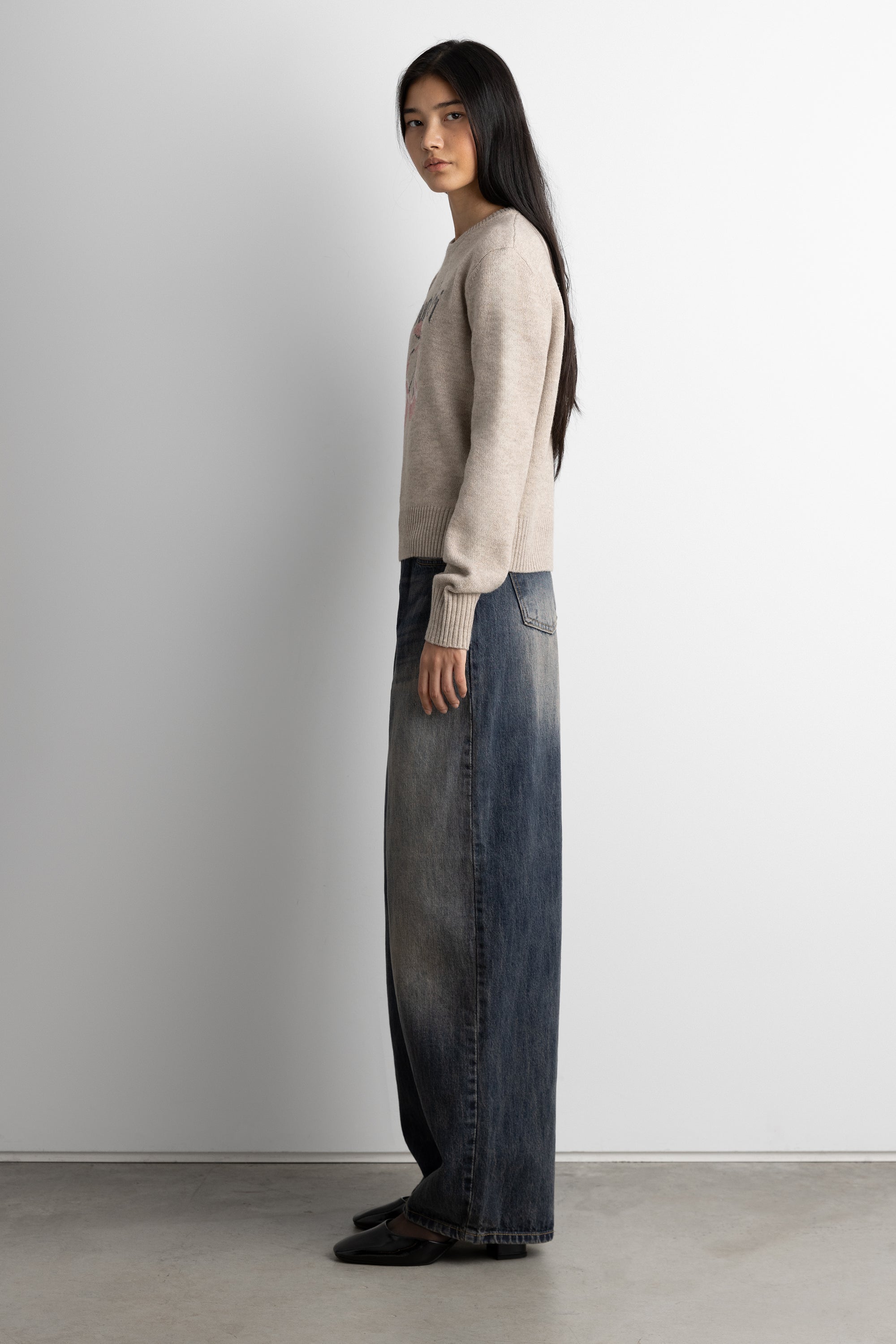 This crewneck sweater is made in a classic fit and has a jacquard knit design of a cherry and ”mon cherI” across the front. Pair yours with any bottoms from knit pants to high-rise trousers.