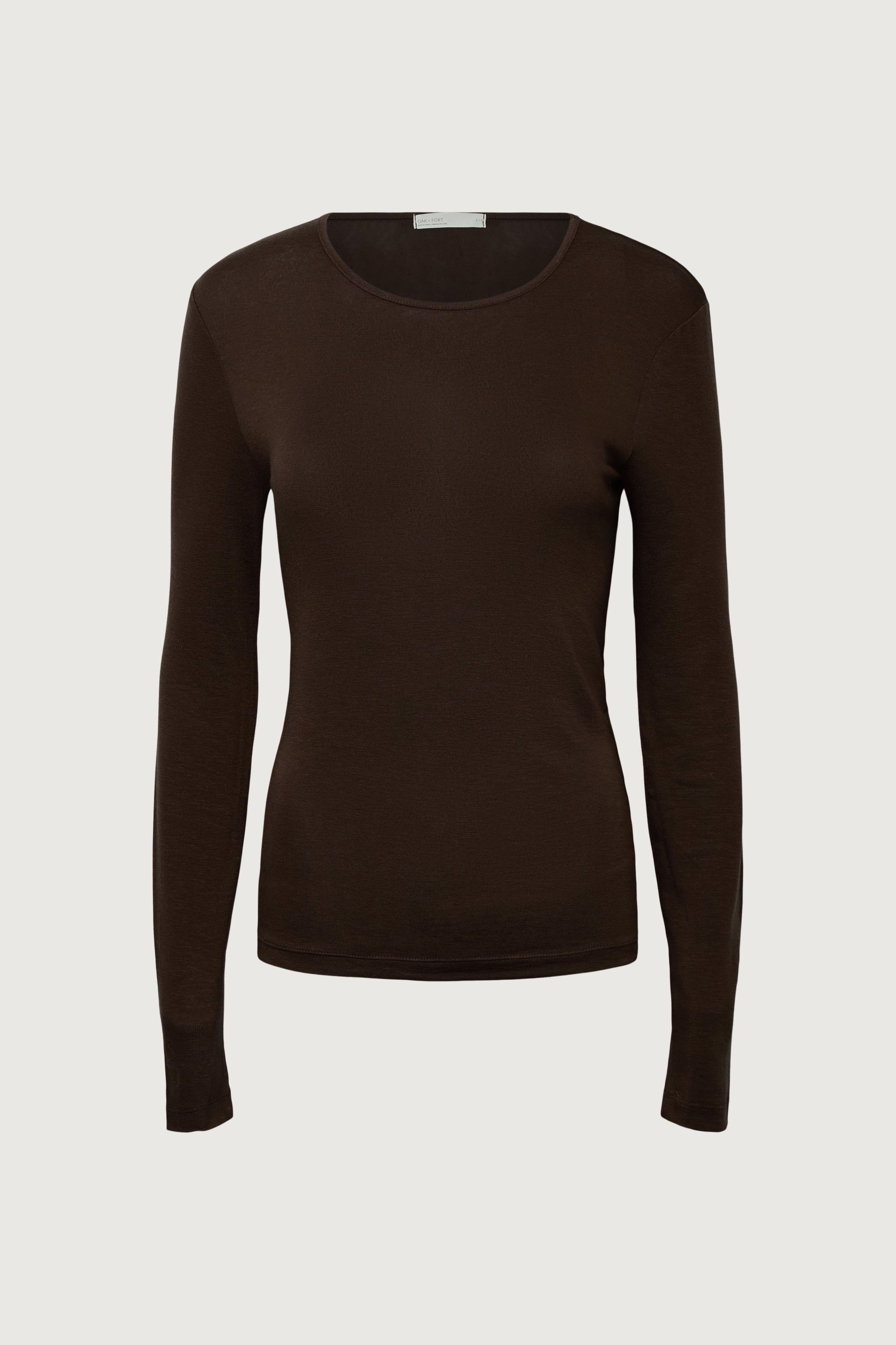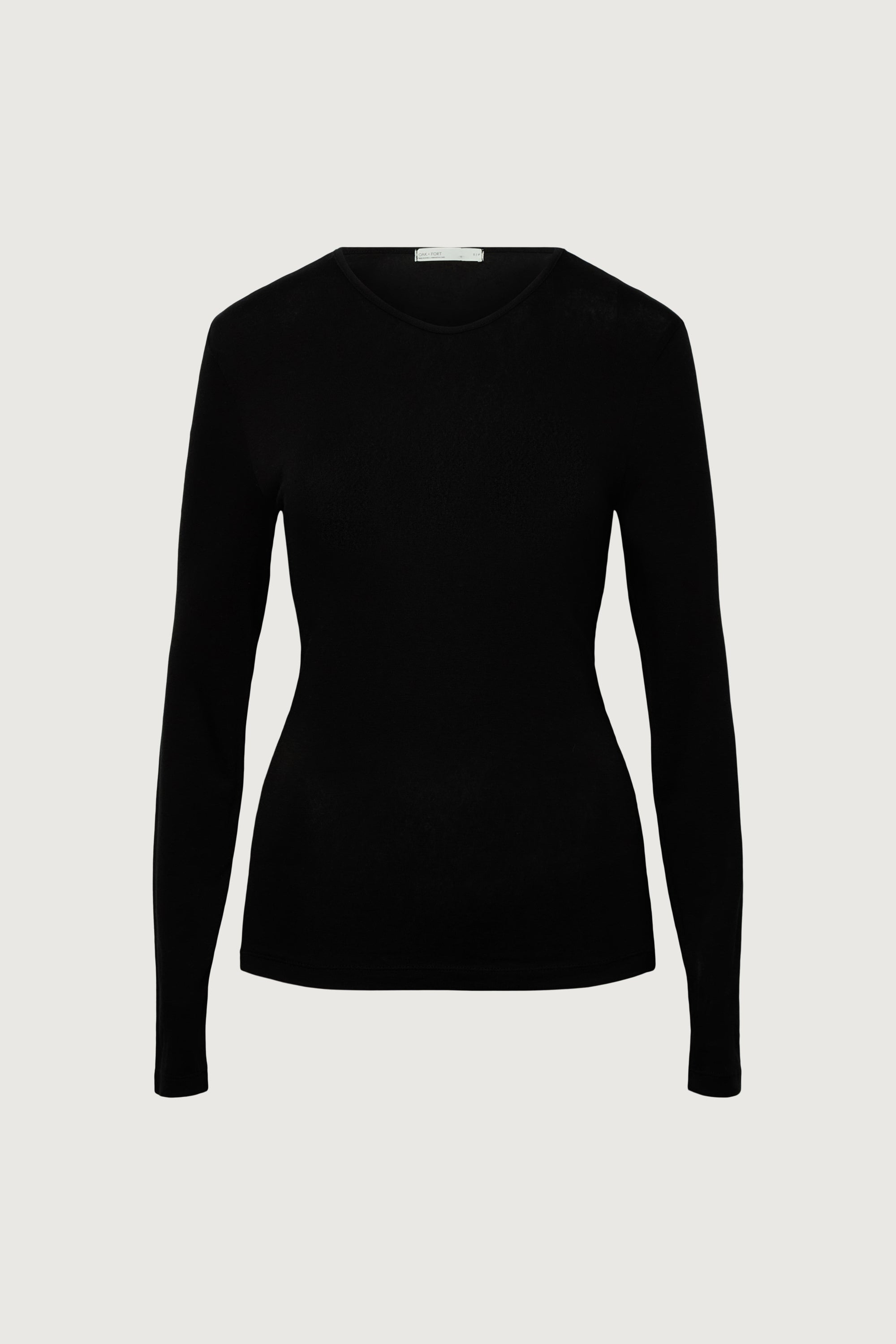 This long sleeve top is crafted from soft Tencel fabric that drapes naturally on the body. Designed with a classic crew neckline and a relaxed silhouette, it offers effortless comfort and versatility for layering or wearing on its own.