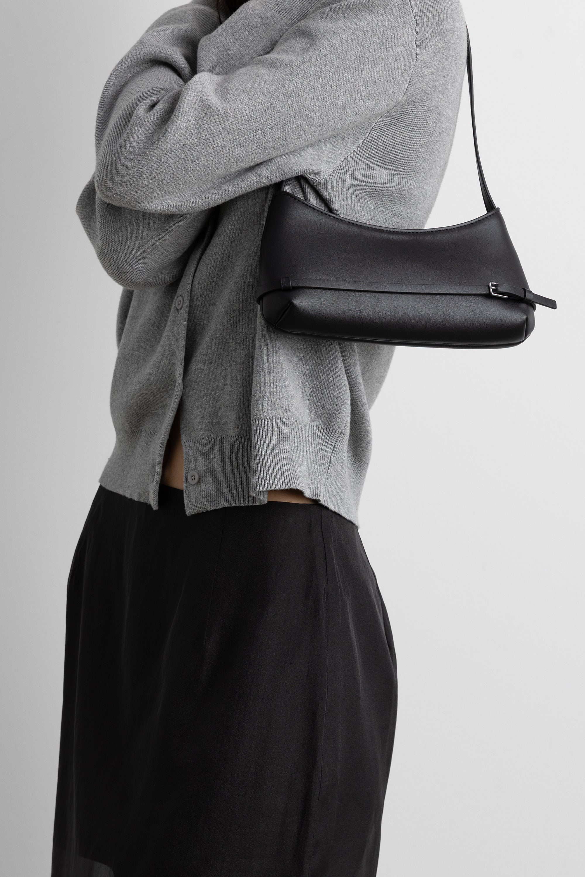 The Frankie Shoulder Bag features a belt detail design on the front, and secure zip closure keeps your essentials safe on nights out. Compact, cute, and functional, the Frankie Shoulder bag is a practical and stylish accessory for any outfit and occasion.