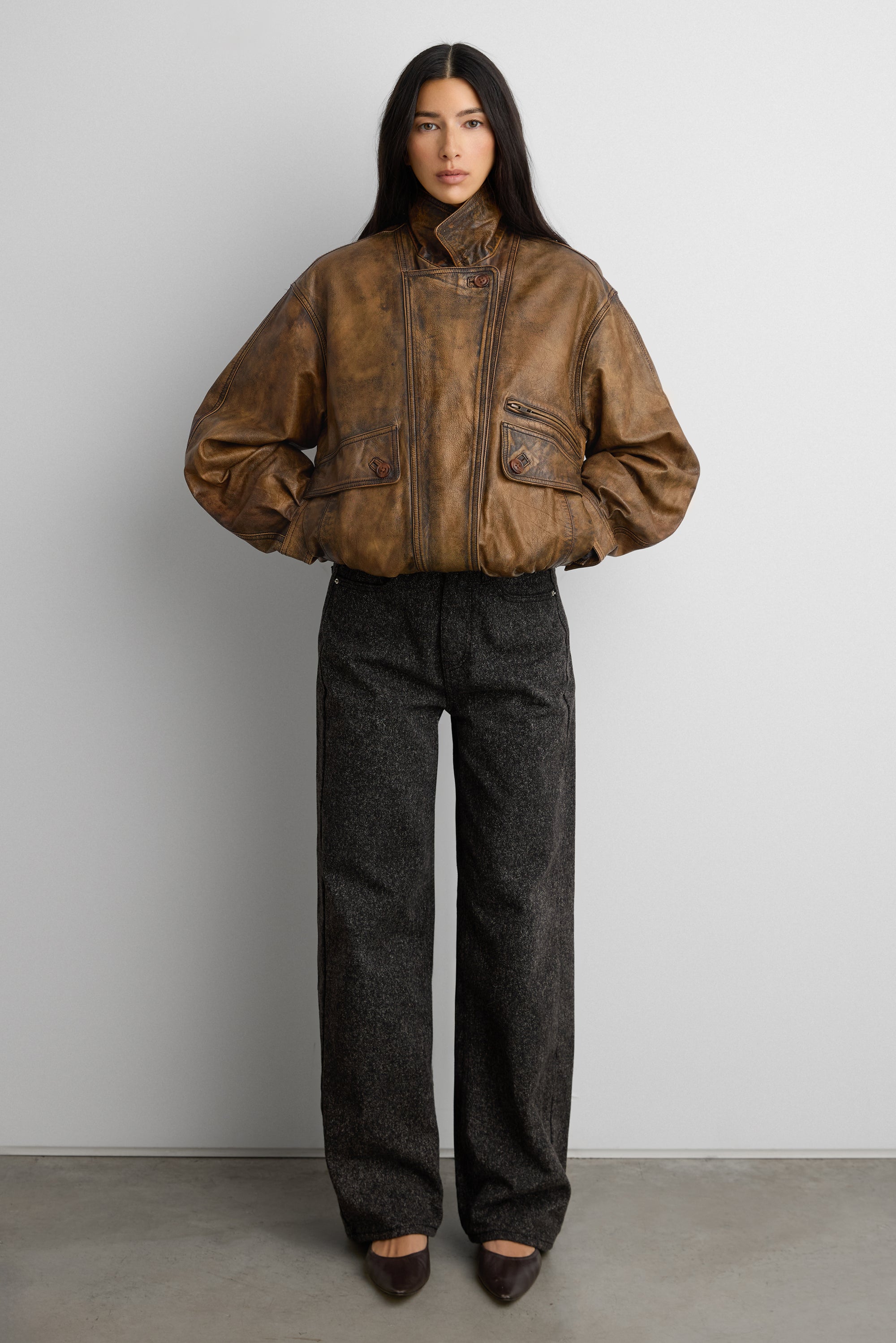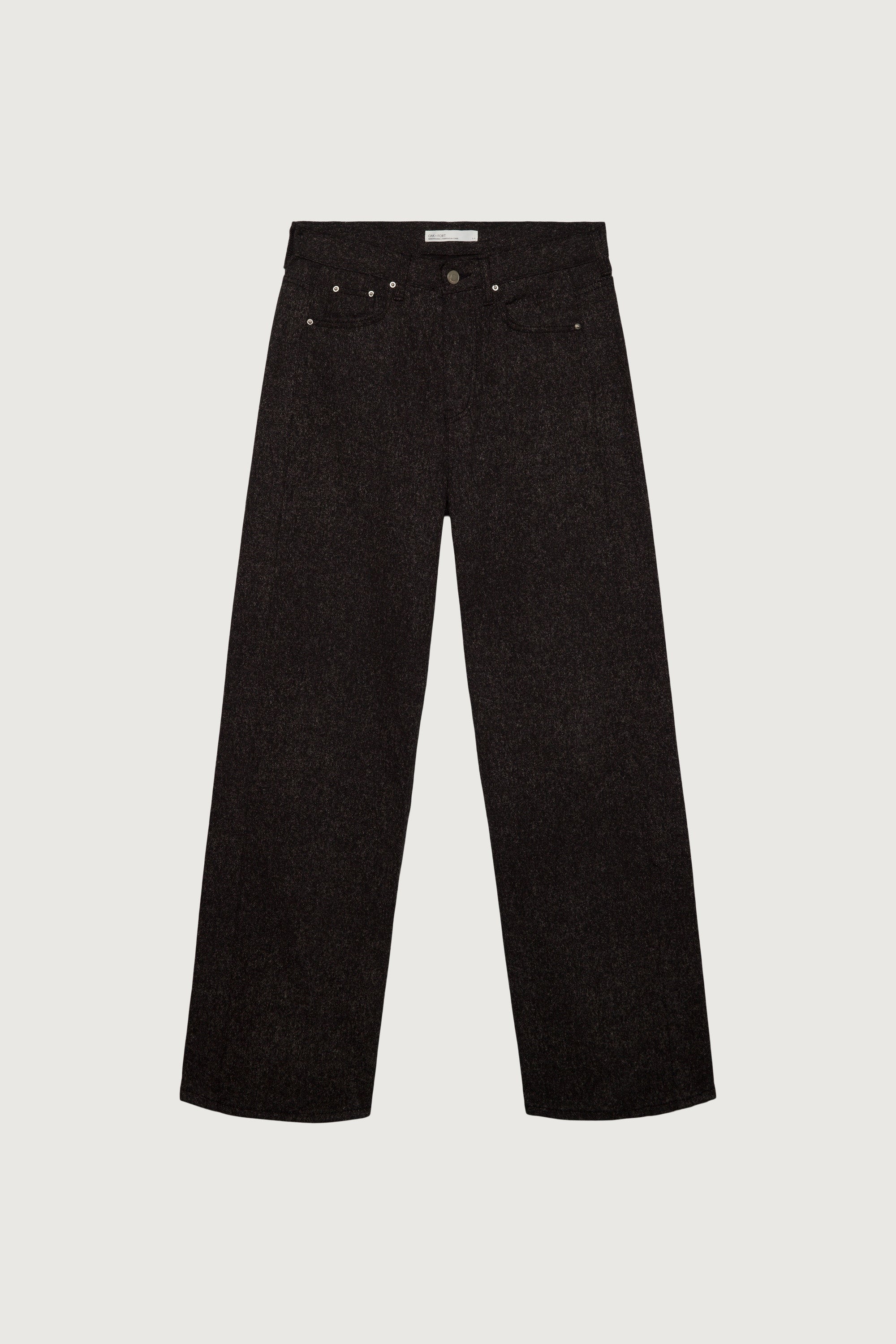 Marled textured fabric. Wide-leg silhouette. Five-pocket design.