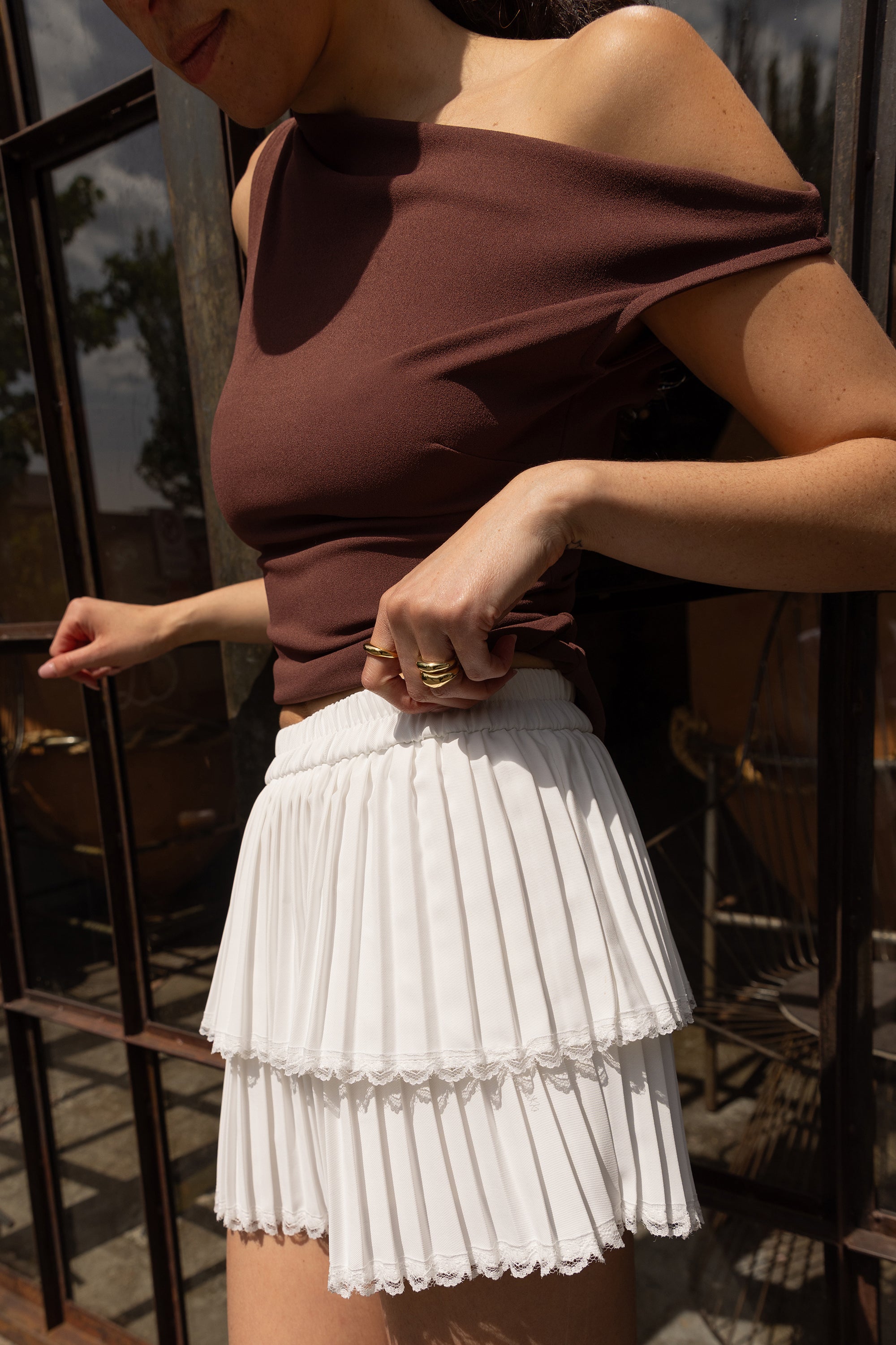 PLEATED TIERED MINI SKORT