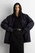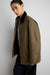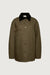 Cotton canvas. Contrast collar. Button front. Quilted interior. Water resistant wax finish. Back shoulder pleat design.