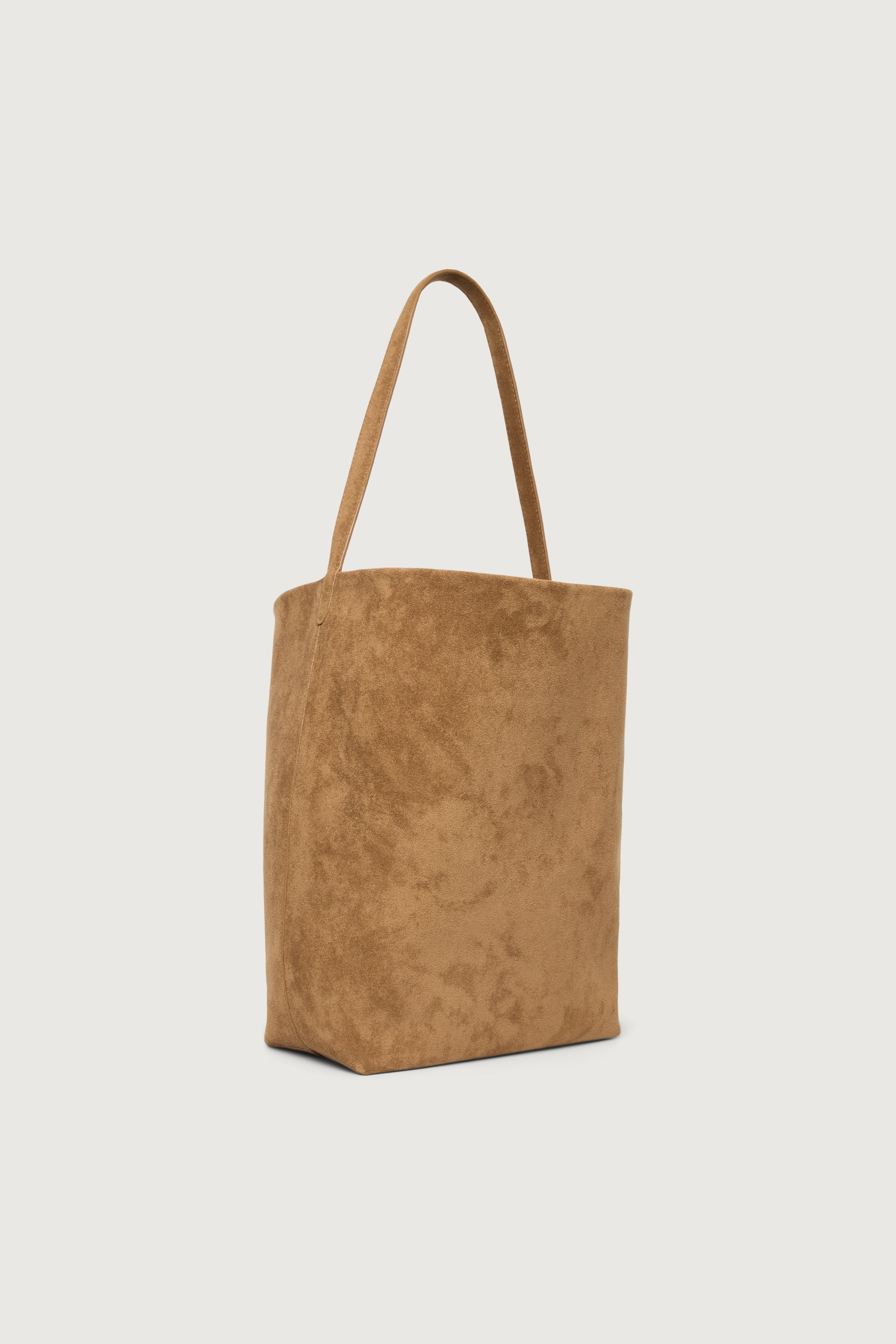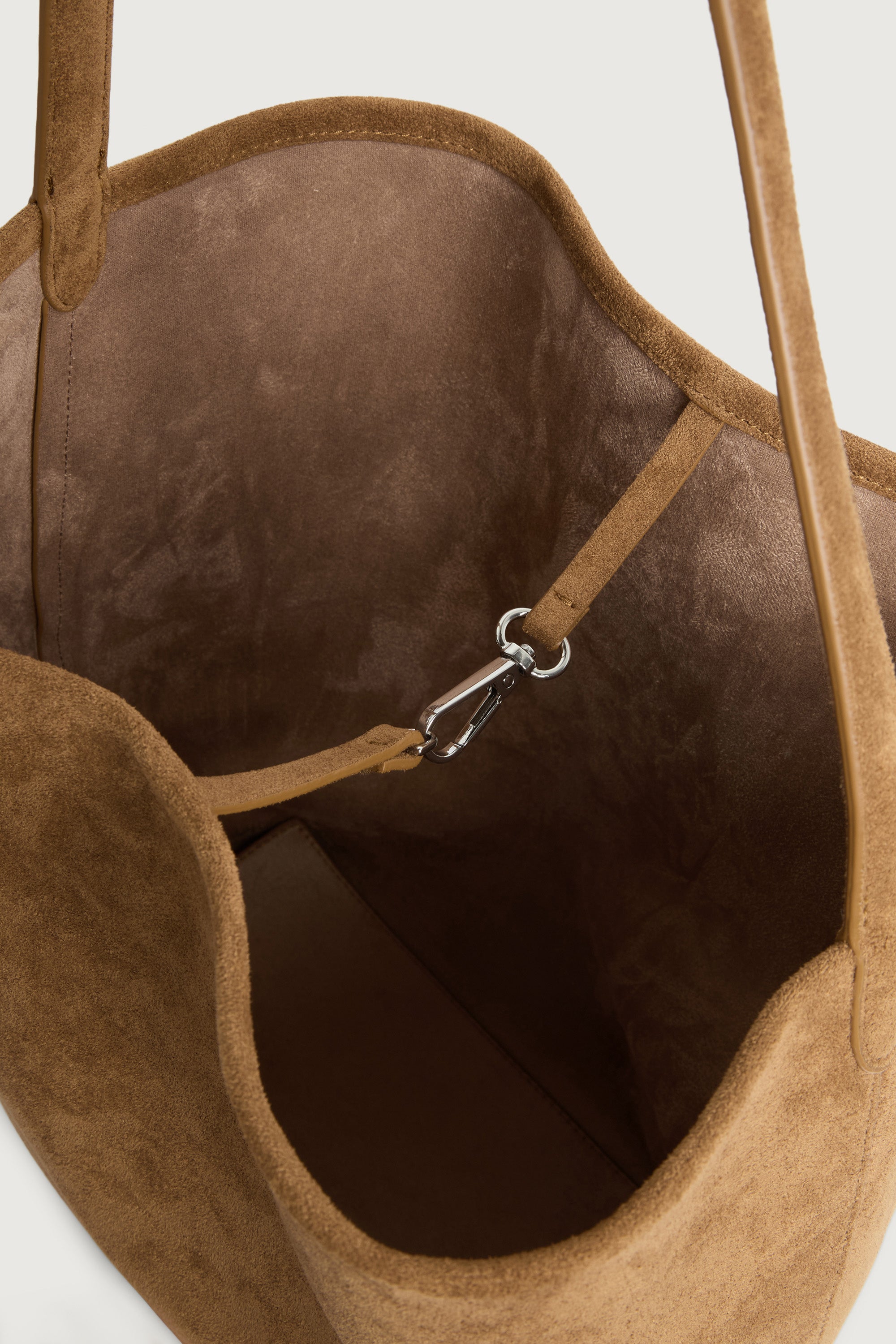 Our classic Sloane Tote is now available in soft vegan suede. Featuring a spacious interior and lobster clasp closure. An essential and practical bag for everyday use. The Sloane Tote also comes in a larger size (BA-15116-W).