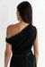 Heavy jersey crepe fabric. Off-the-shoulder design.