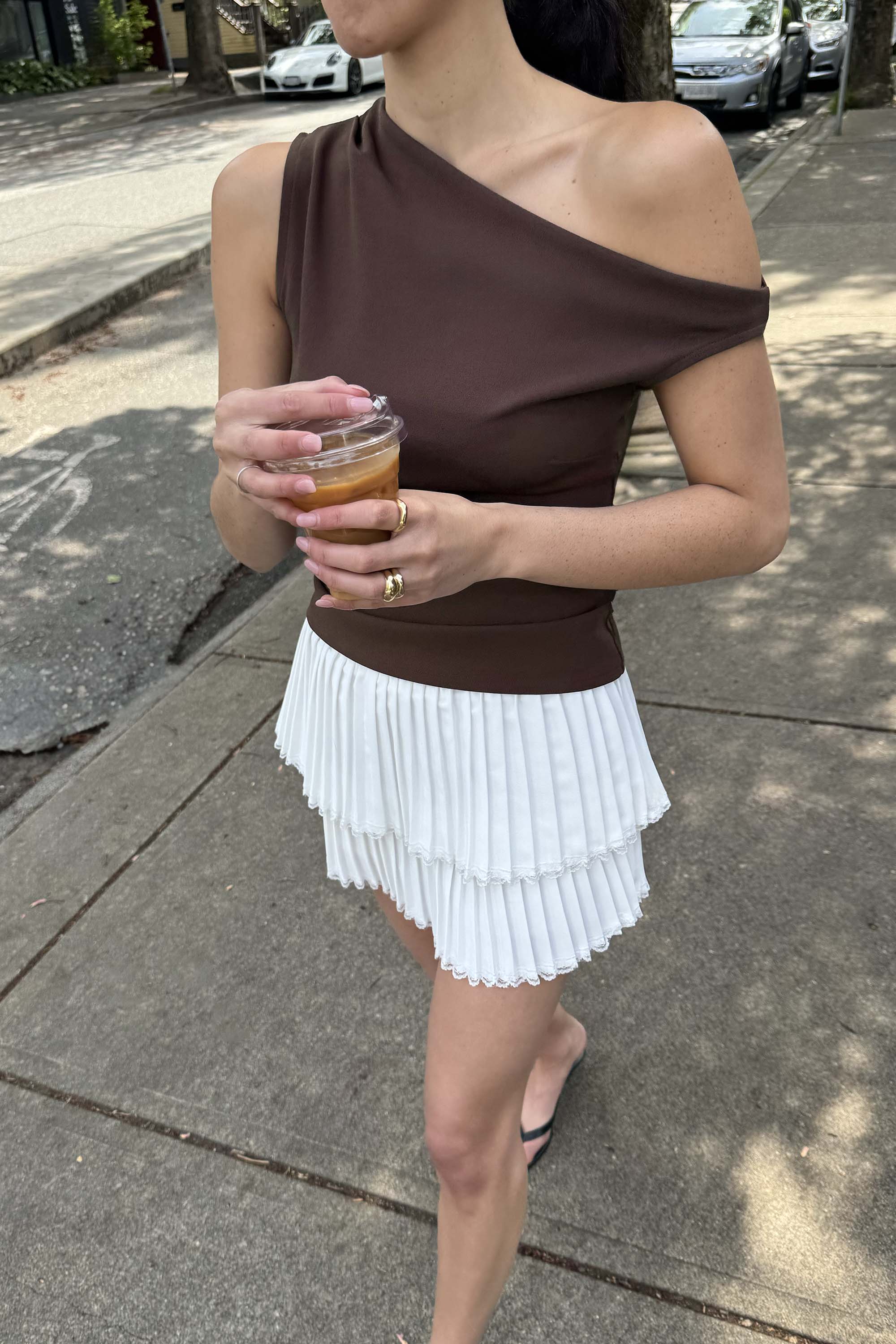 This off-the-shoulder top is made in a classic fit and drapes softly for added detail. A versatile top you can wear in any season, style yours as a set with Suiting Shorts (SH-12240-W).