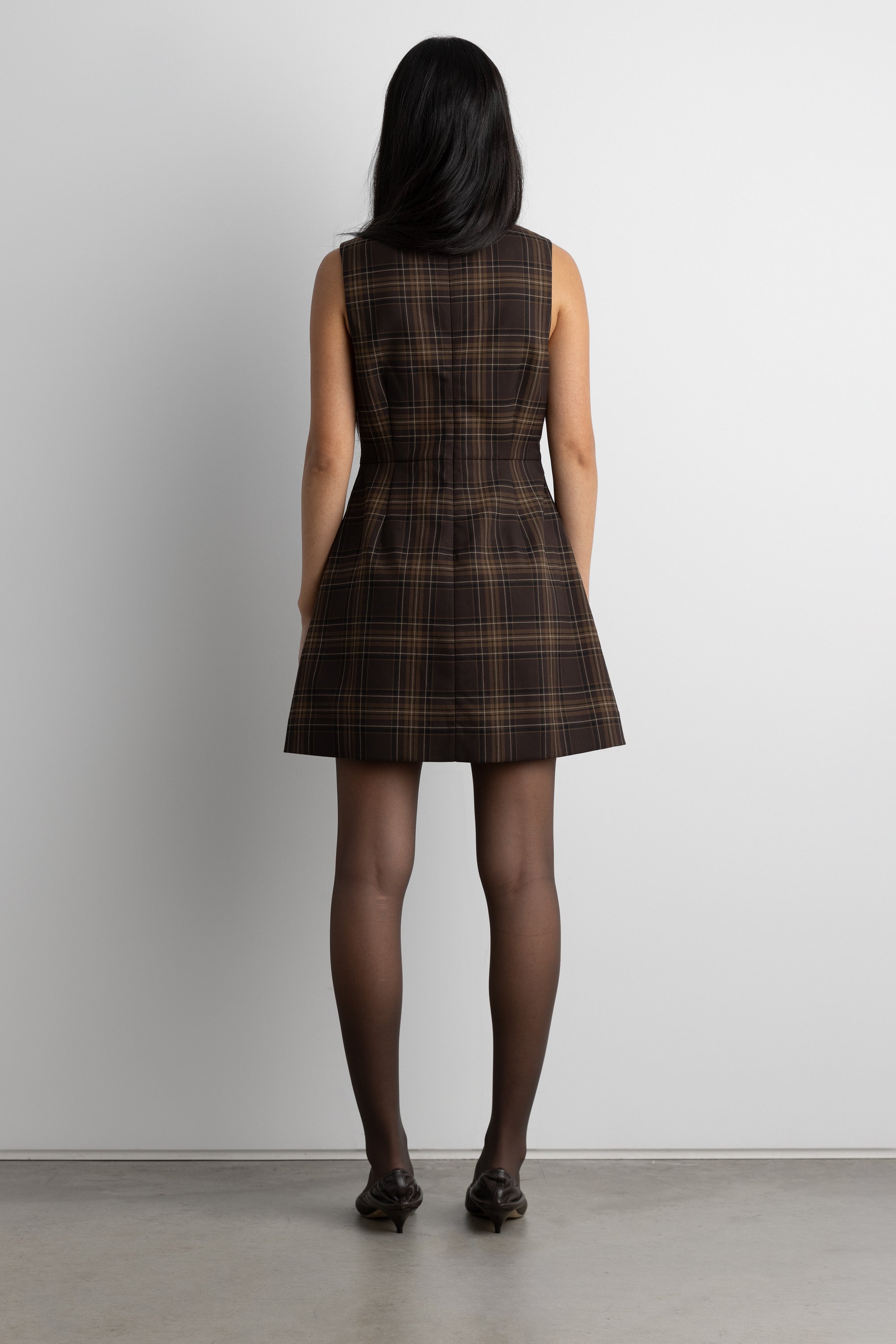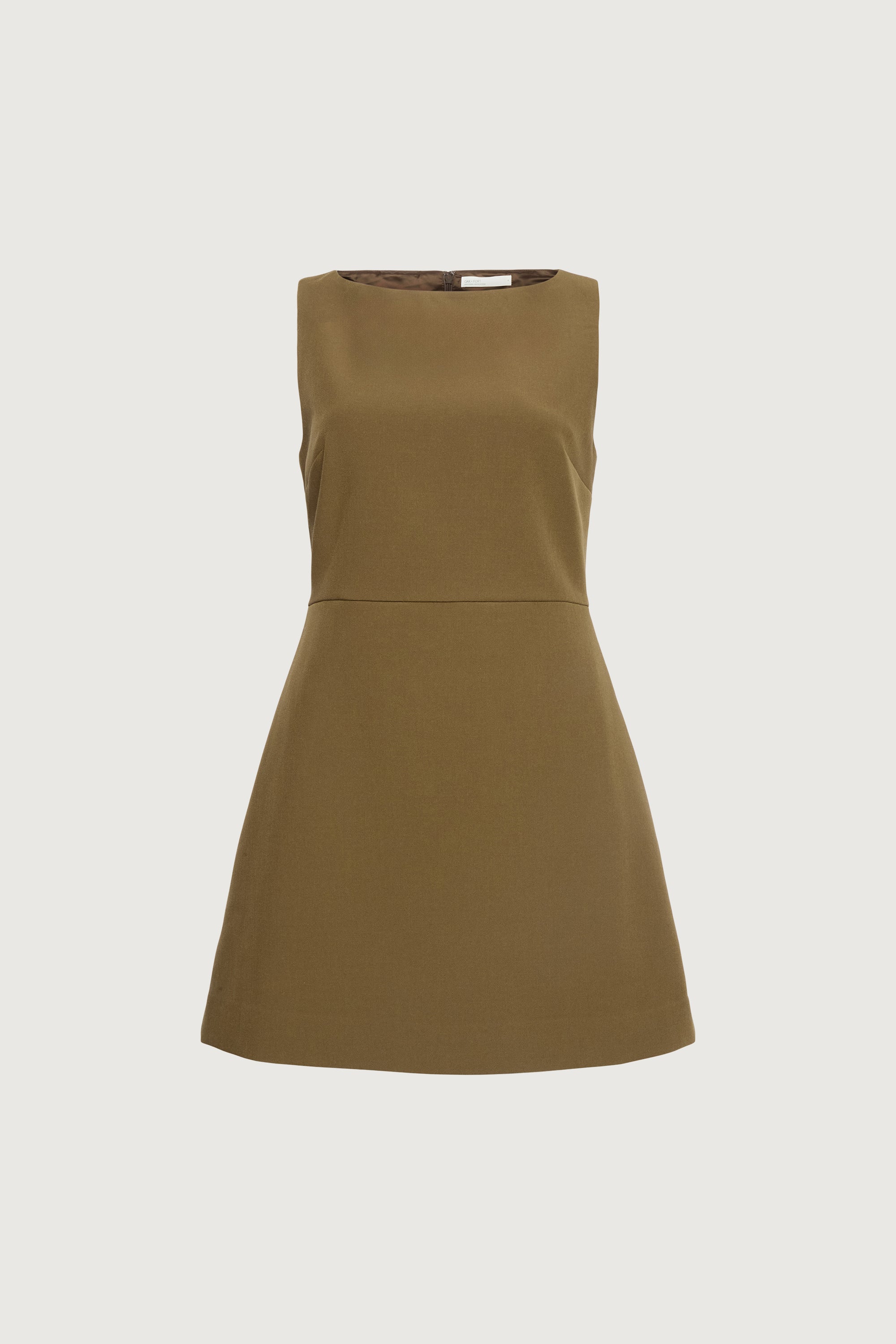 This classic suiting mini dress is made in a slim fit. It has a high neckline, seam details and has side pockets for added function. A versatile silhouette to wear to the office or to your next occasion.