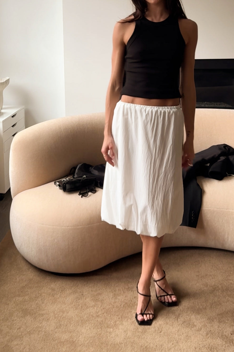 BUBBLE HEM MIDI SKIRT WITH DRAWSTRING