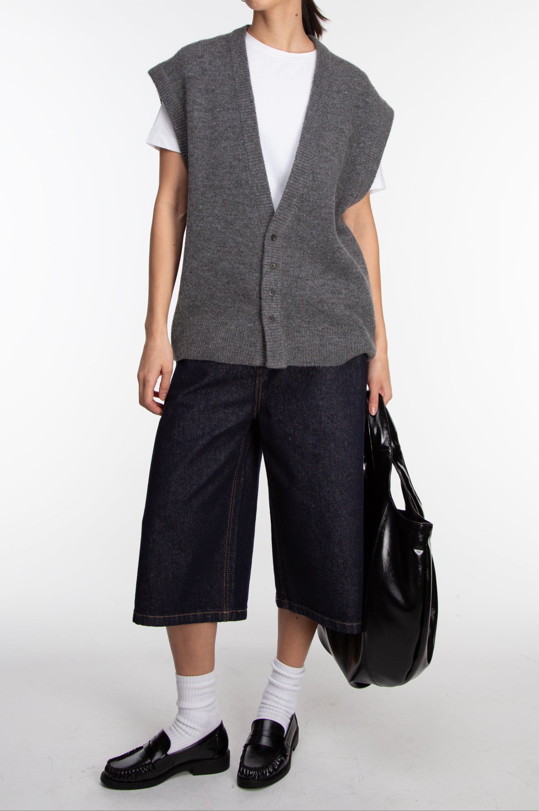 Relaxed fit. Deep v-neckline. Button front. Ribbed trims. 26.5" length based on size M.