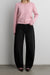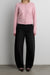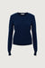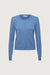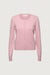 Knit. Crew neckline. Ribbed trims. Covered buttons.