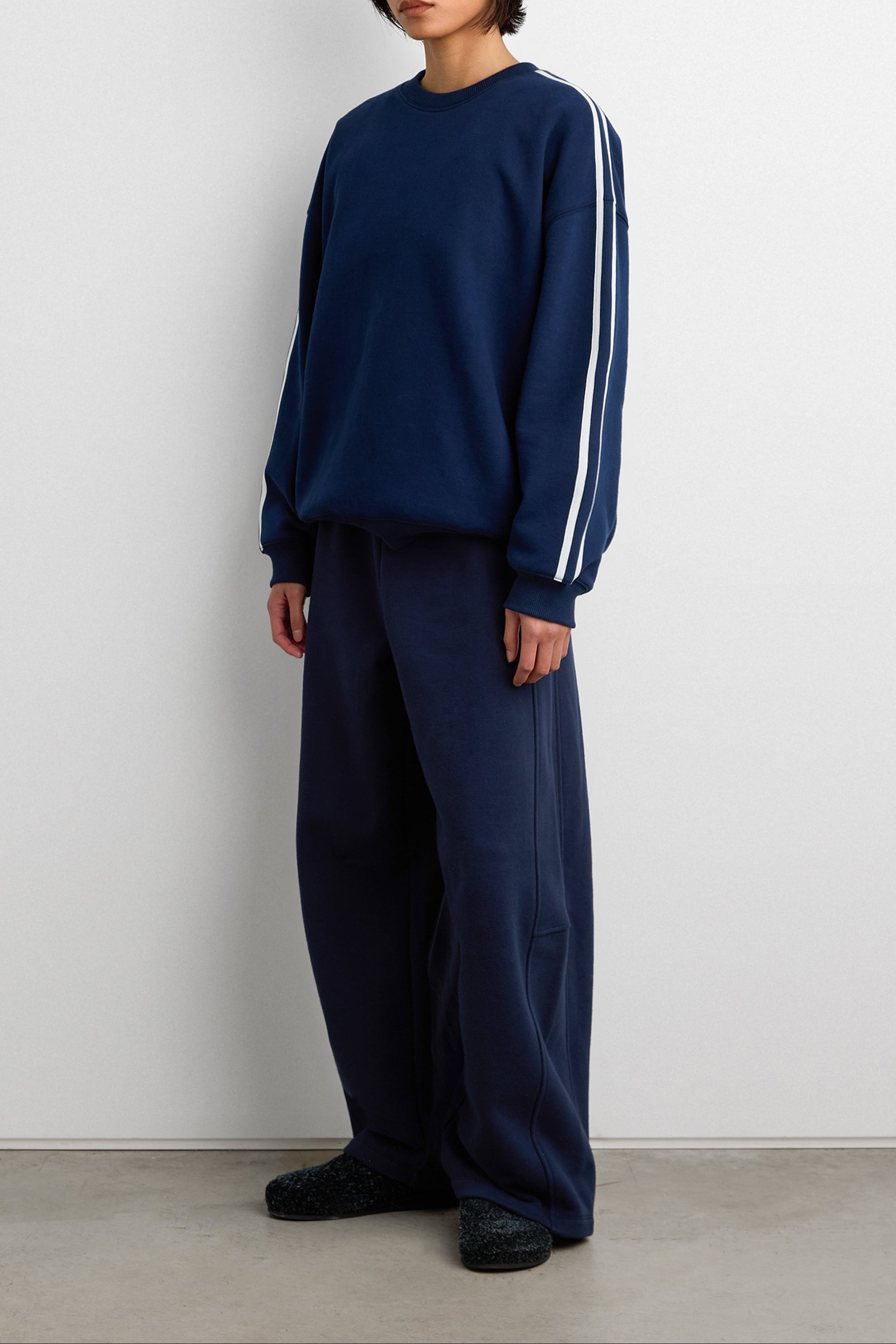 These barrel leg sweatpants are made in an oversized fit with an elasticated waist band. It has seam details to accentuate the curved leg and side pockets. Made to wear as a set pair it with the matching sweatshirt.
