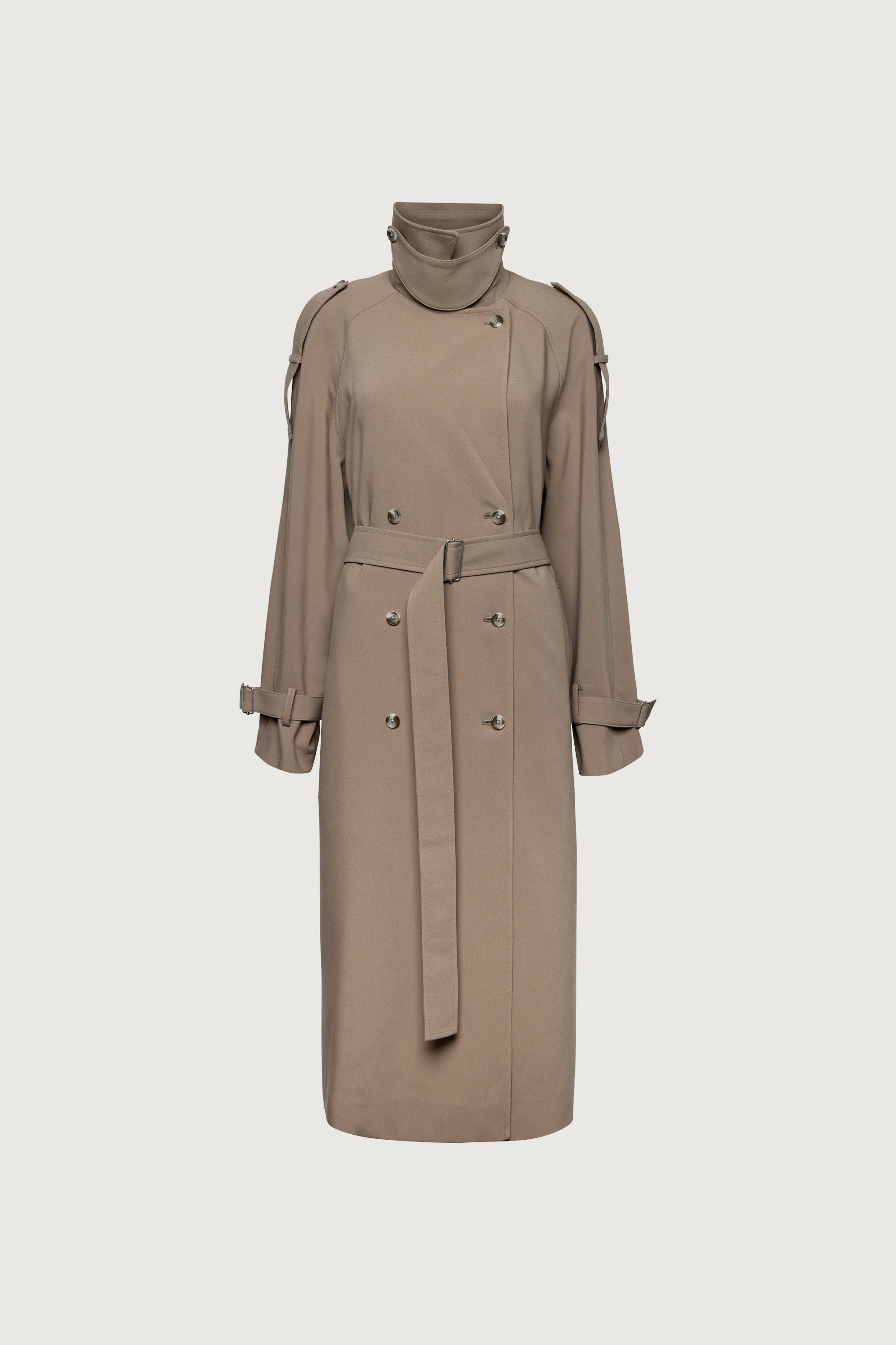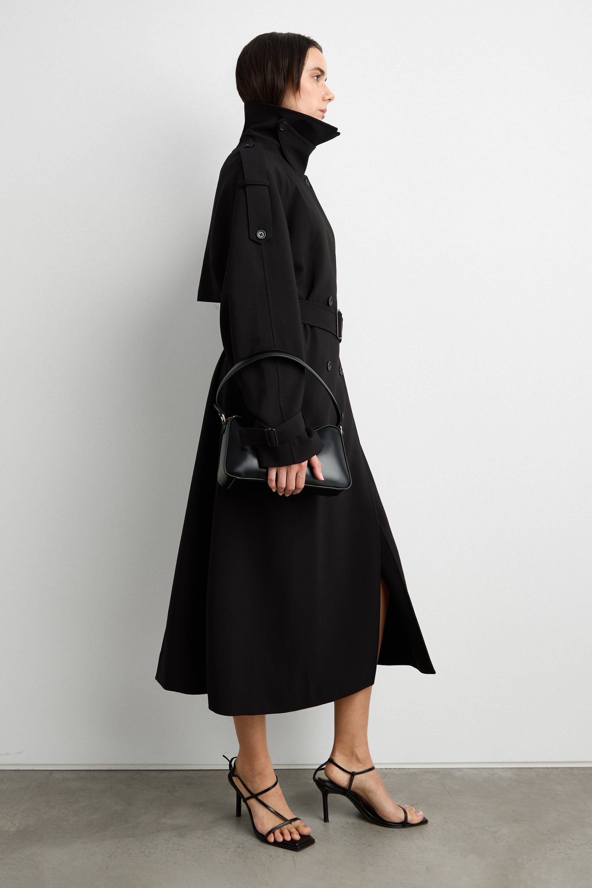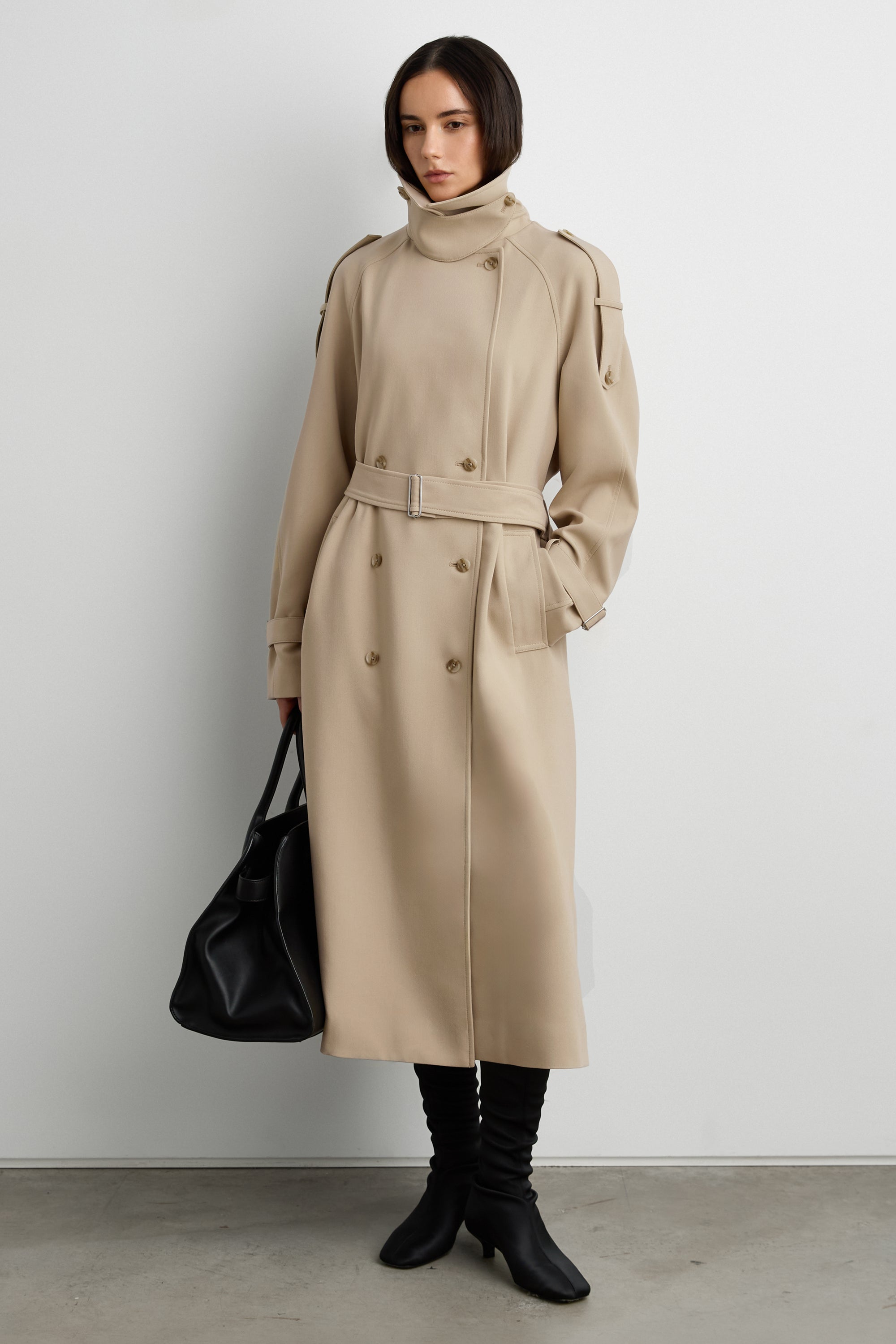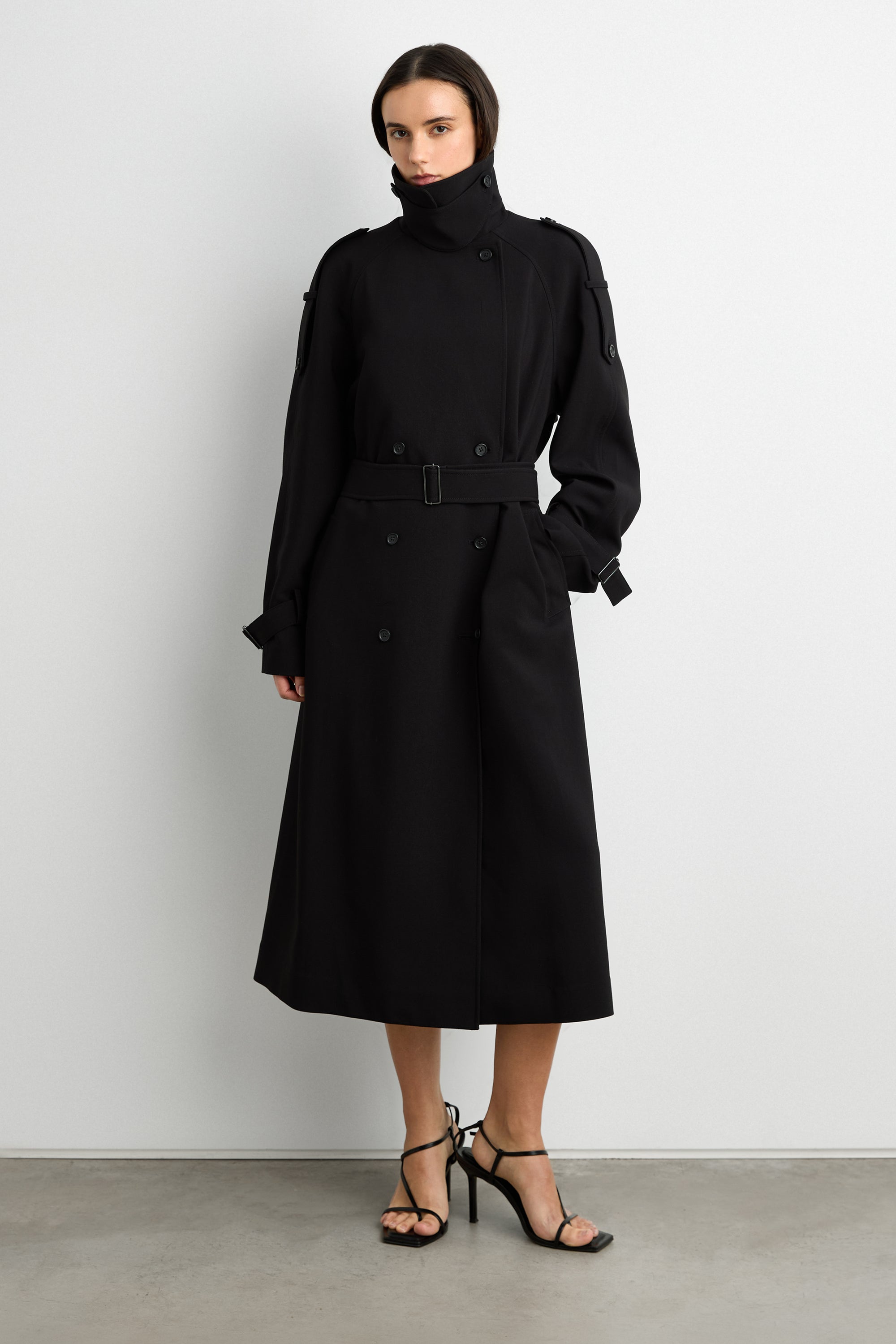 An updated take on our best selling trench coat, this version is an essential in every season and will be a versatile enough to day from day to night. The oversized fit is balanced with a double-breasted front and has a beautiful fluid drape with a subtle stretch. It has structured lapels, dropped shoulders, adjustable cuffs, a back vent and a belt detail at the neckline to create a funnel neck design. An effortless silhouette that you can wear for both for casual and chic outfits.