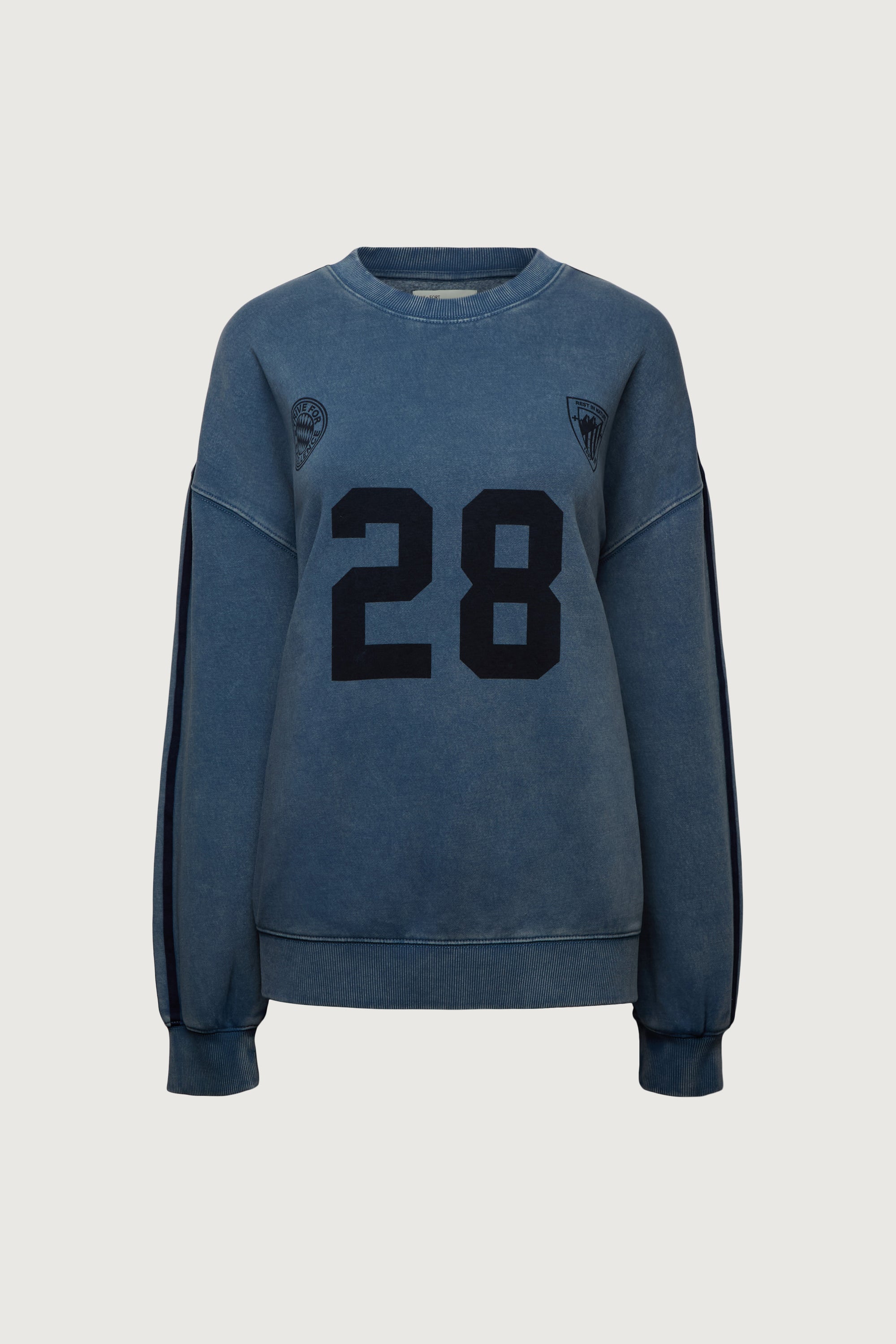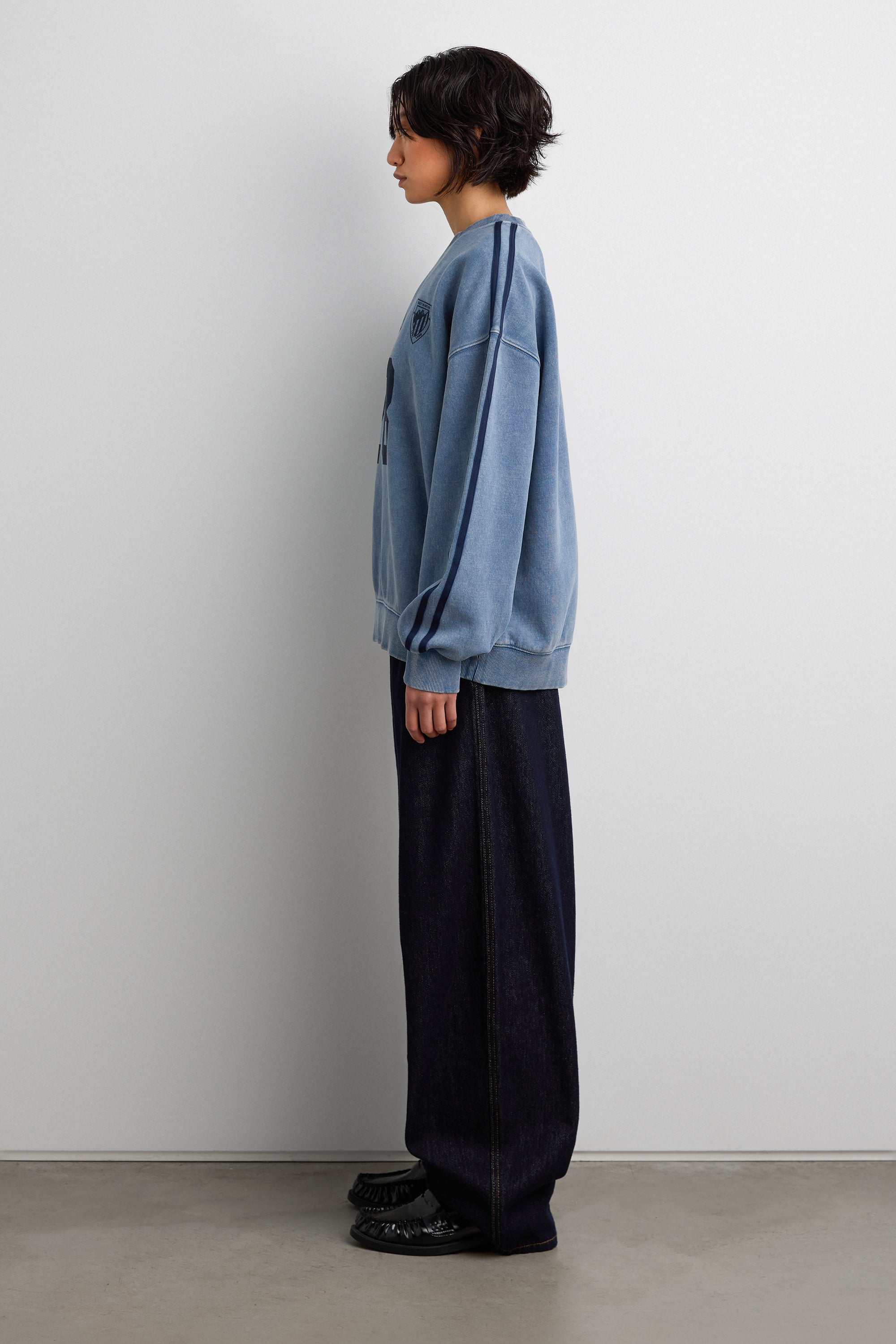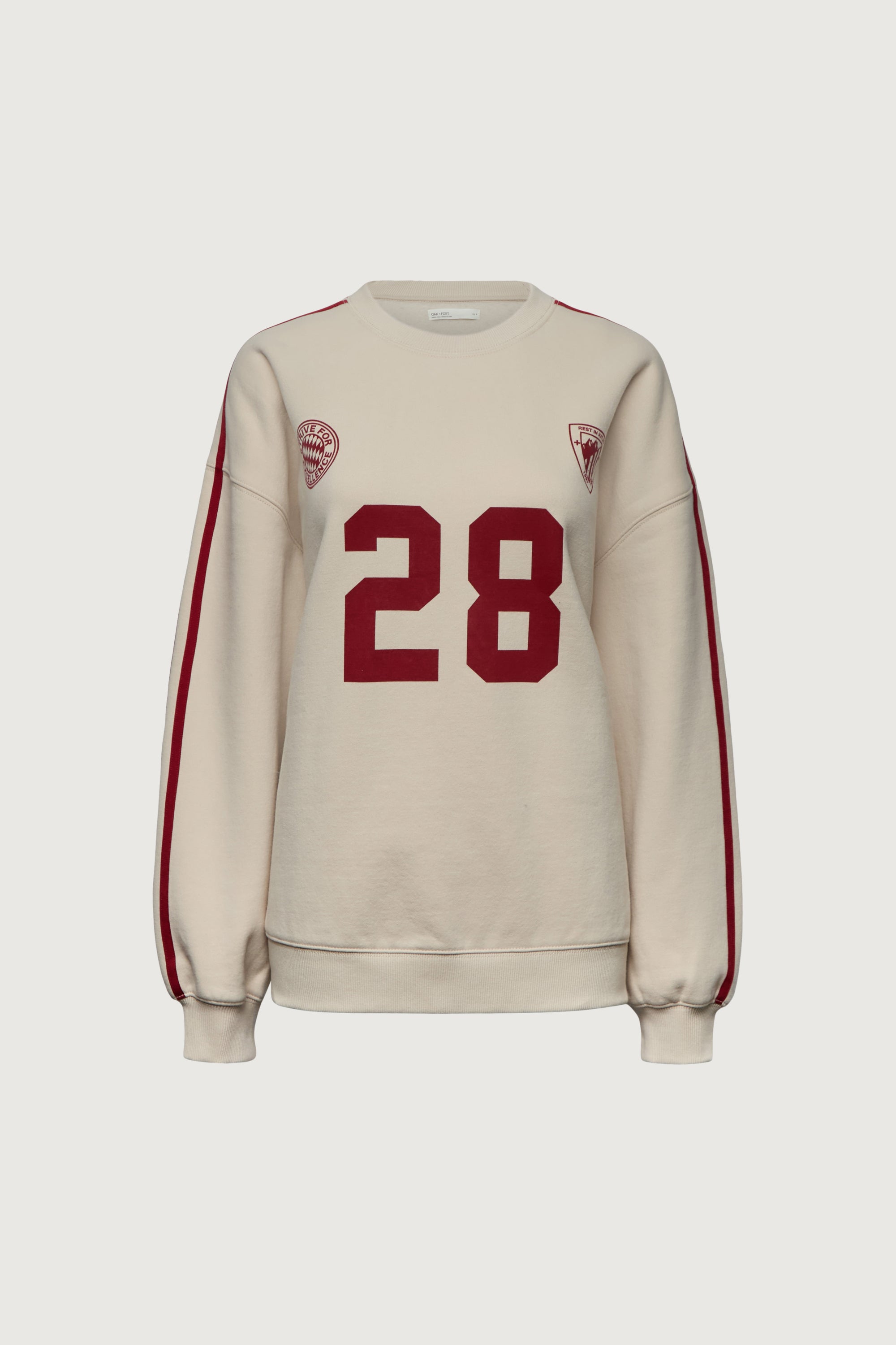 This crewneck sweatshirt is made from a fleece lined cotton blend in an oversized fit. It has ribbed trims, dropped shoulders and a graphic print design. A cozy addition to your essentials, wear yours with joggers or leggings.