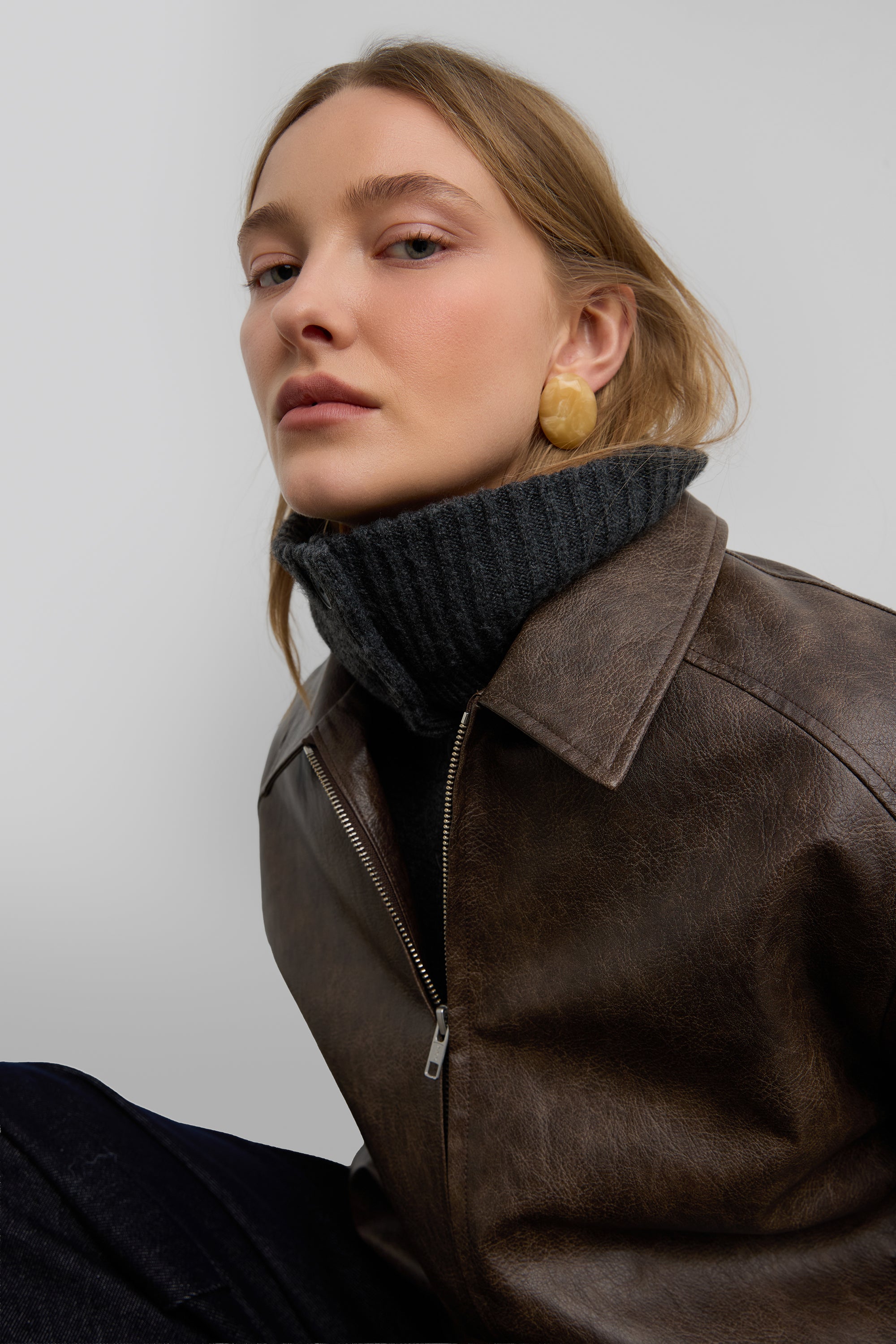 HIGH COLLAR BUTTON FRONT CARDIGAN