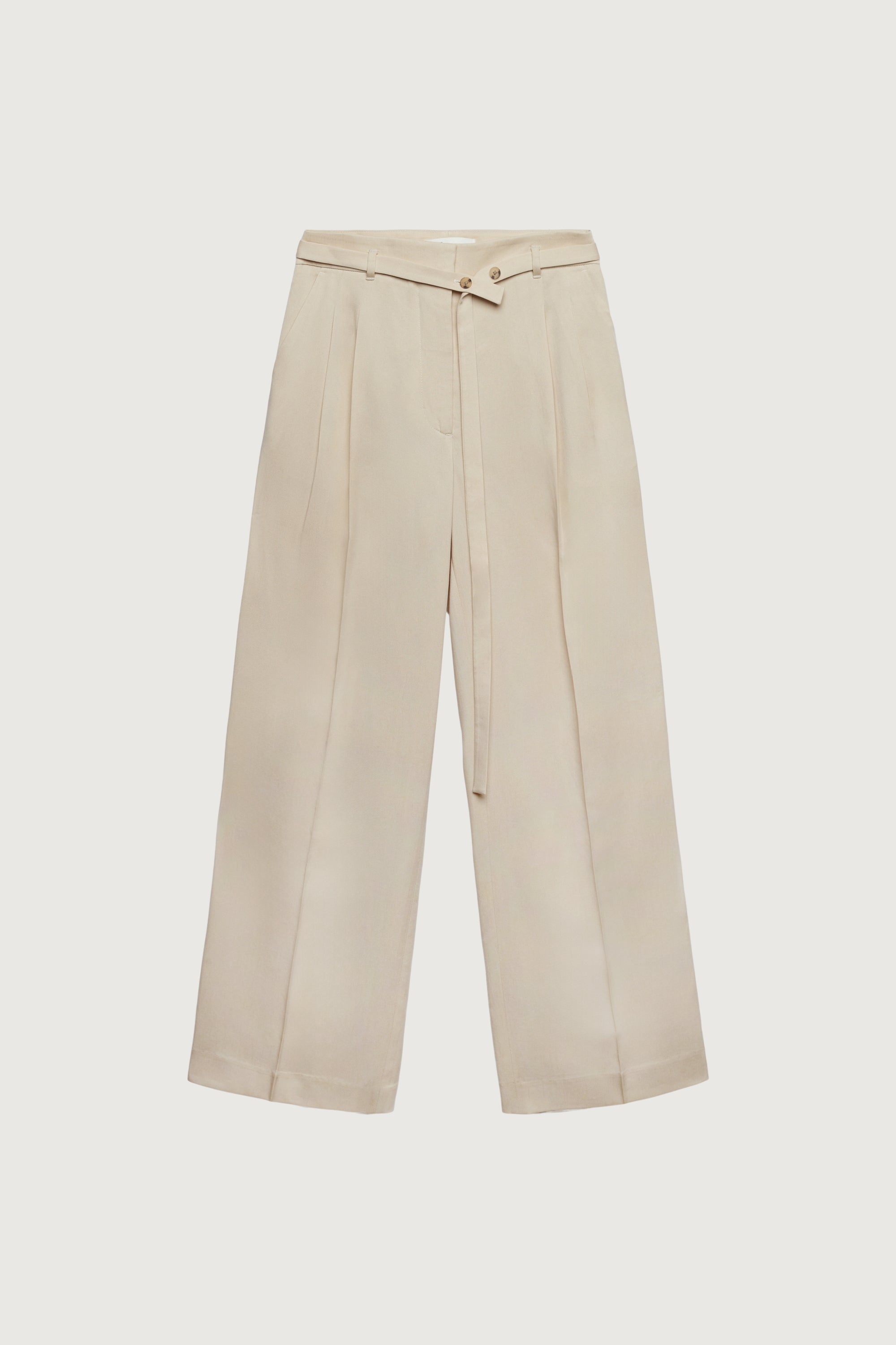 HIGH-RISE WIDE LEG BELT DETAIL TROUSER