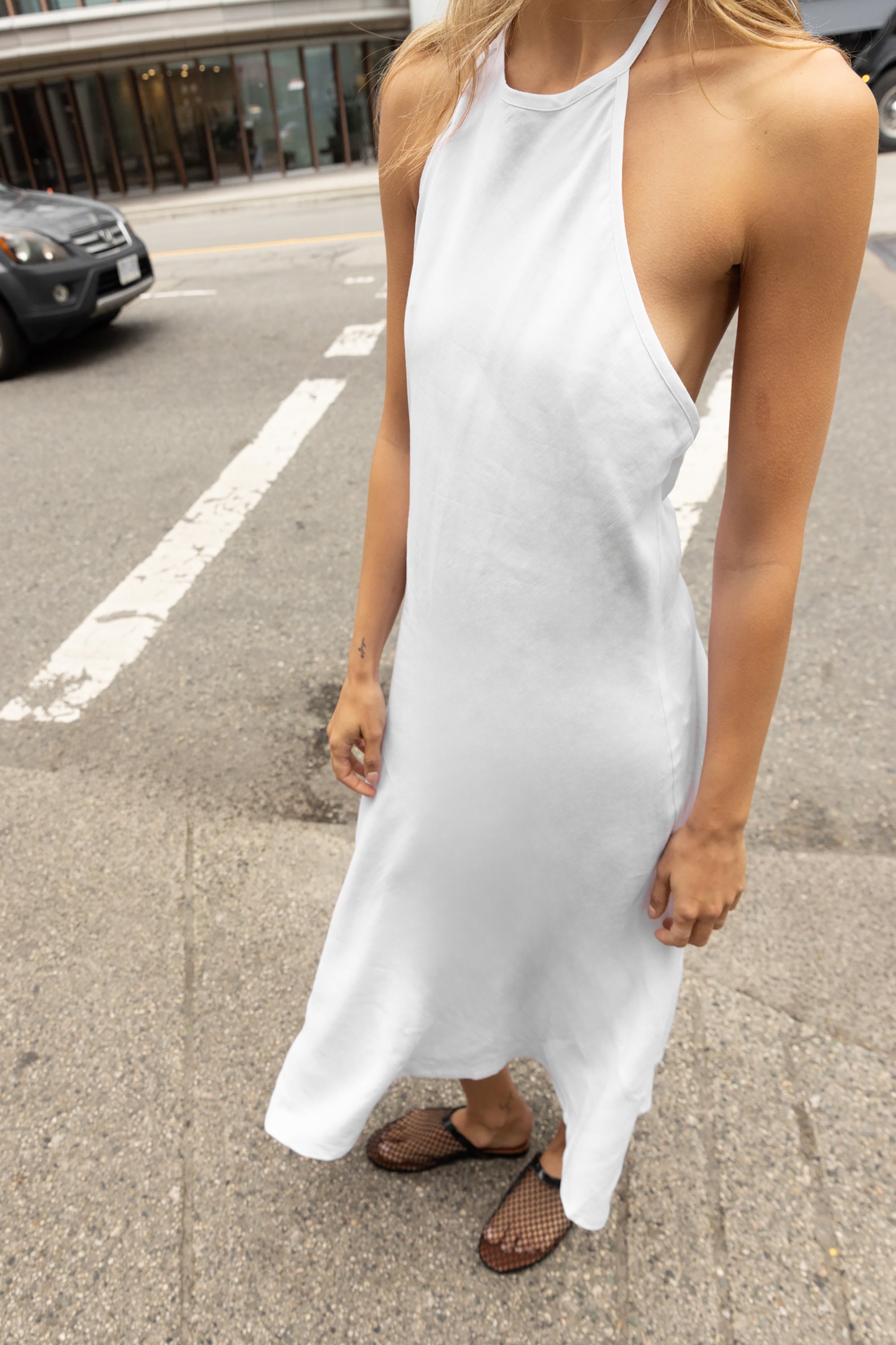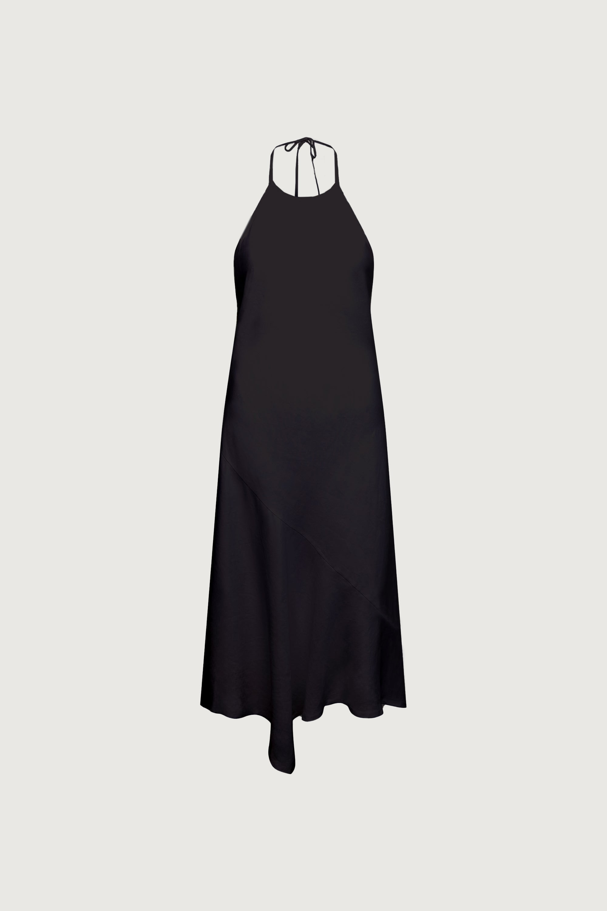 LINEN BLEND HALTER NECK MIDI DRESS