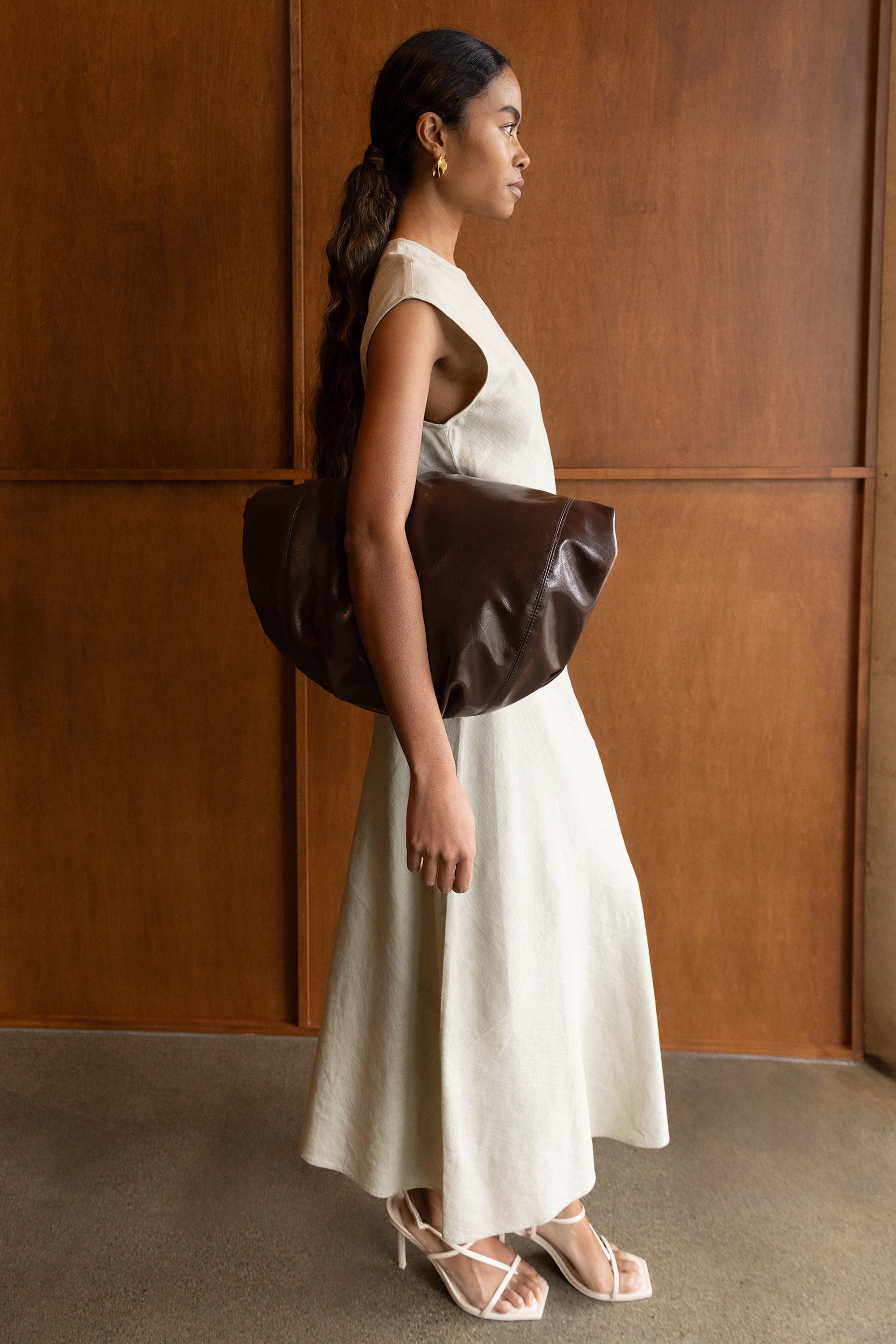 LINEN BLEND SLEEVELESS BIAS CUT MIDI DRESS