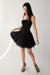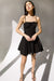 This corset mini dress has a fitted bodice with a smocked back and a gathered skirt. The perfect dress for your warmer weather plans, wear it with sandals and statement jewelry.