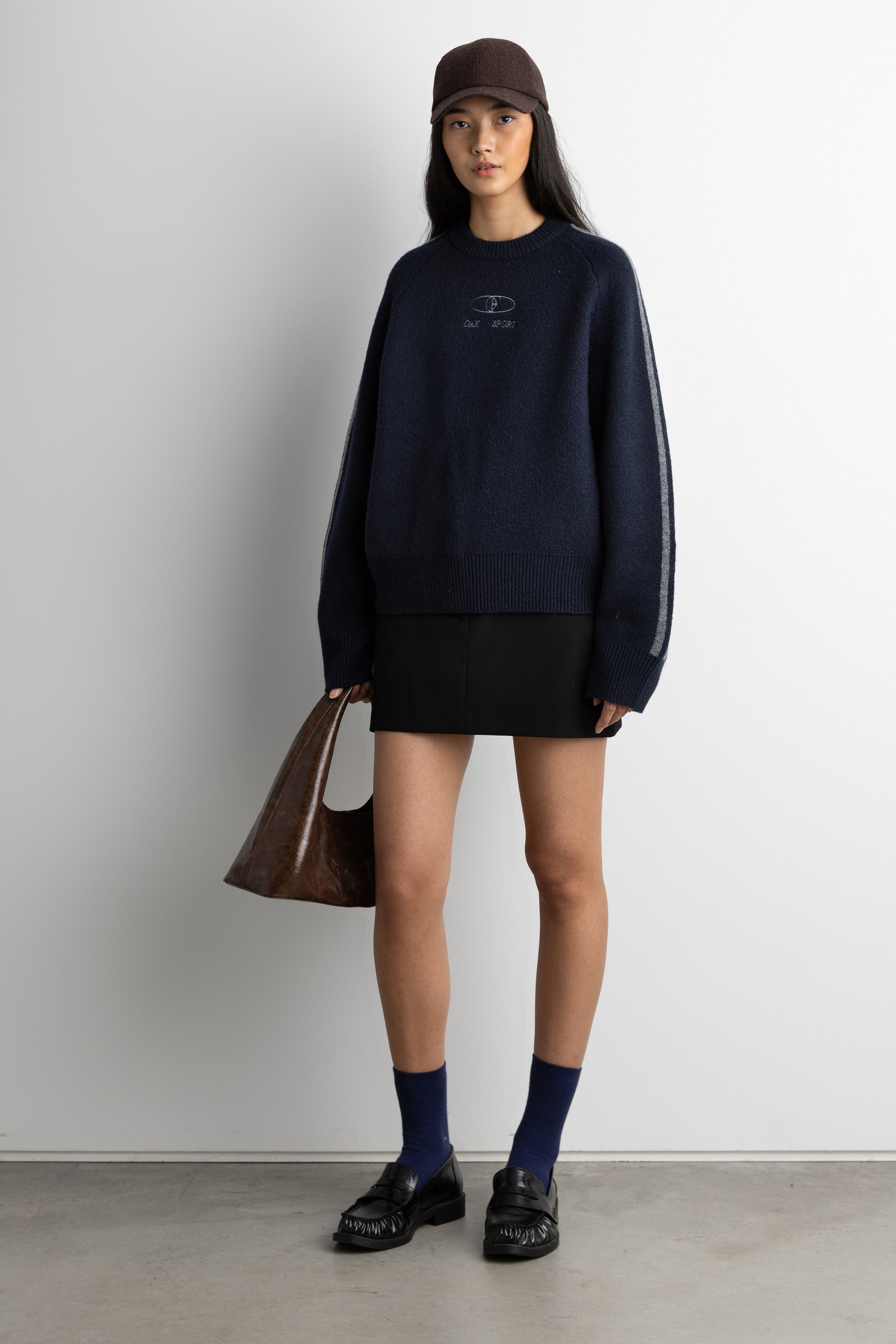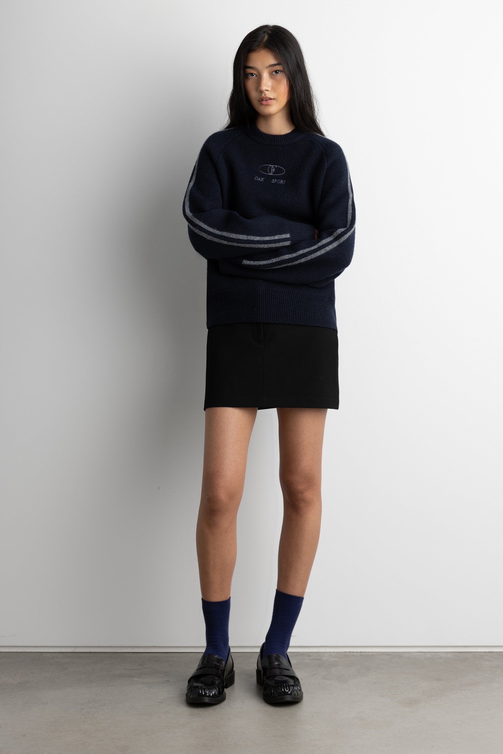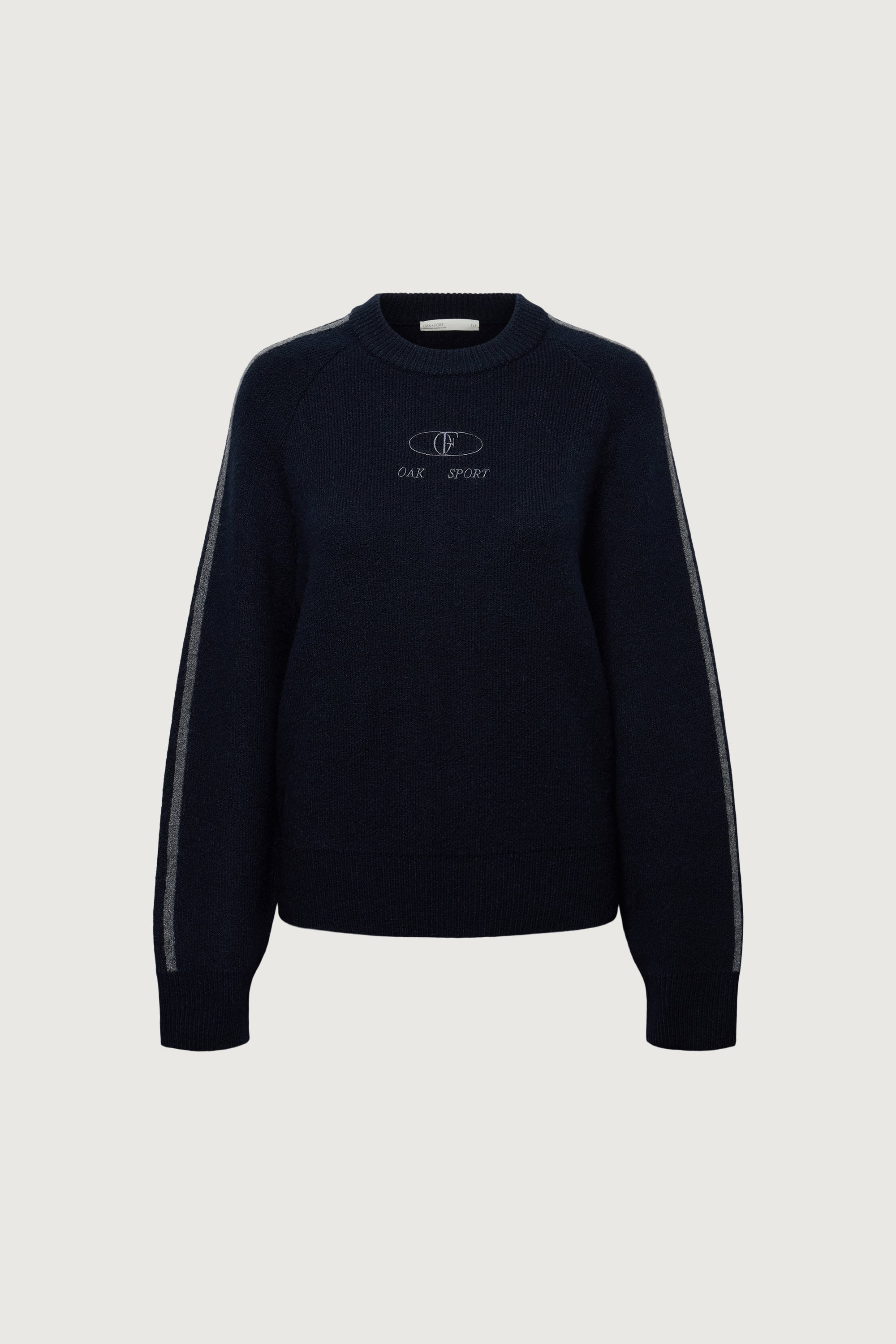 This crewneck sweater is made in a relaxed fit and is detailed with ribbed trims, two stripes along the sleeves and an embroidered 'OAK SPORT' logo. A versatile knit you wear with any bottoms from pleated mini skirts to high-rise trousers.