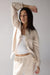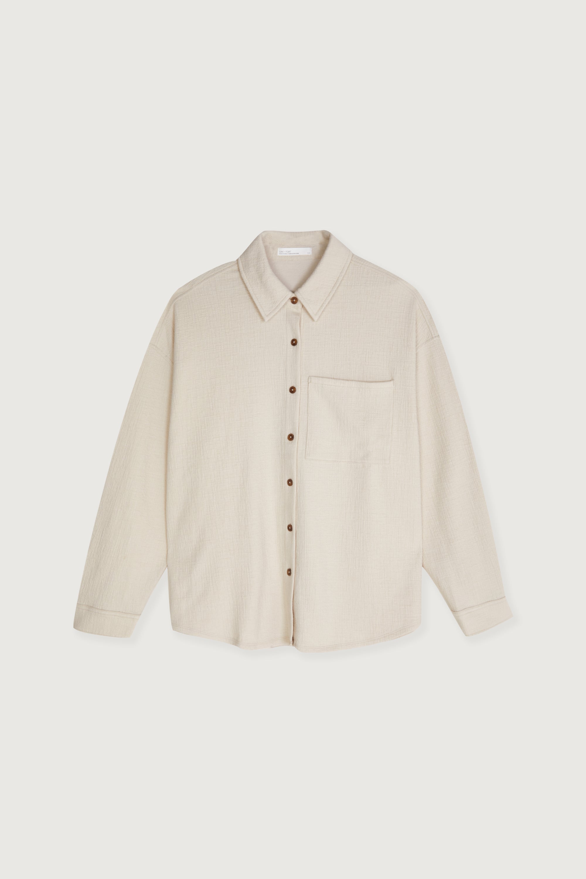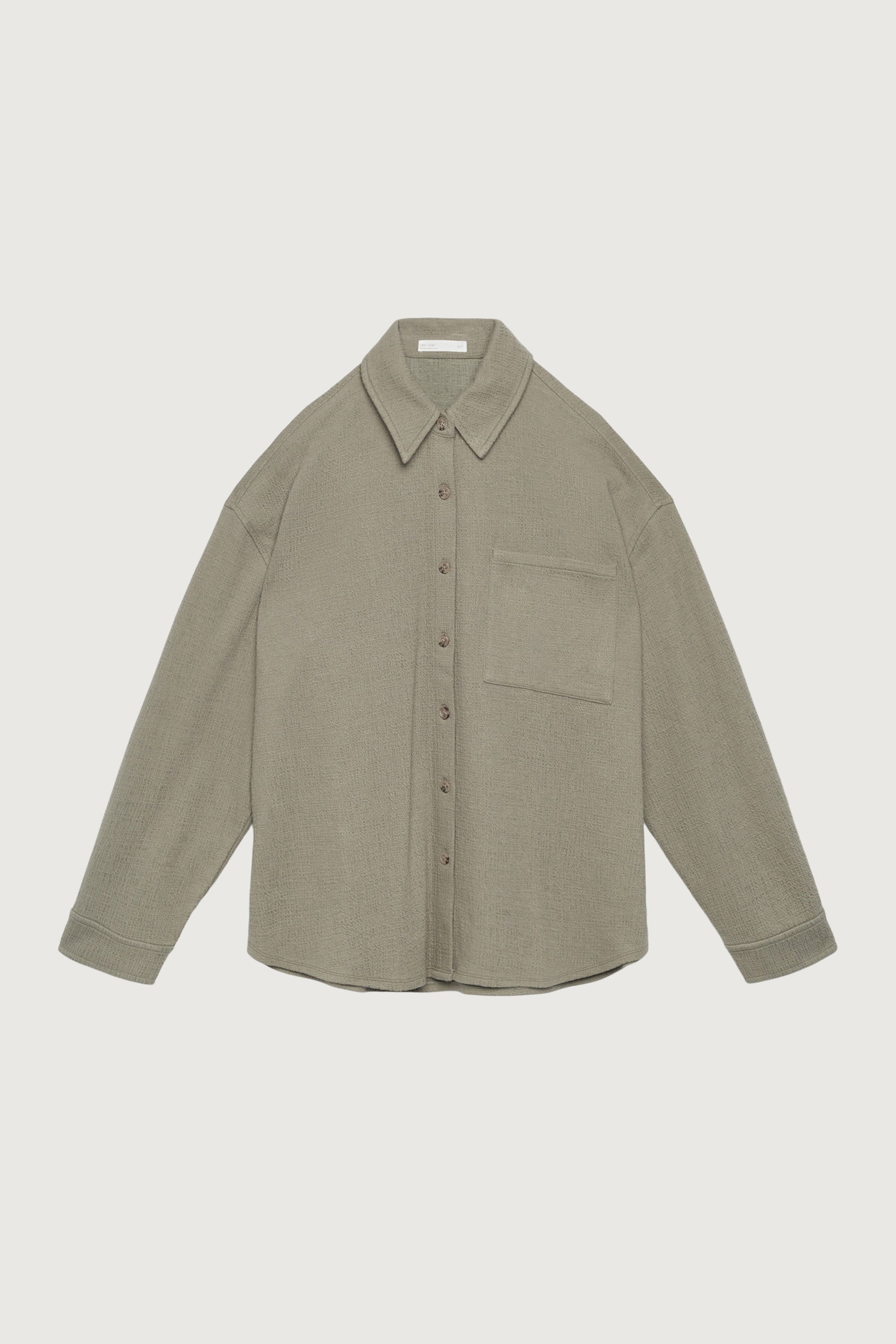 Dropped shoulders. Textured fabric. Curved hem. Front patch pocket.