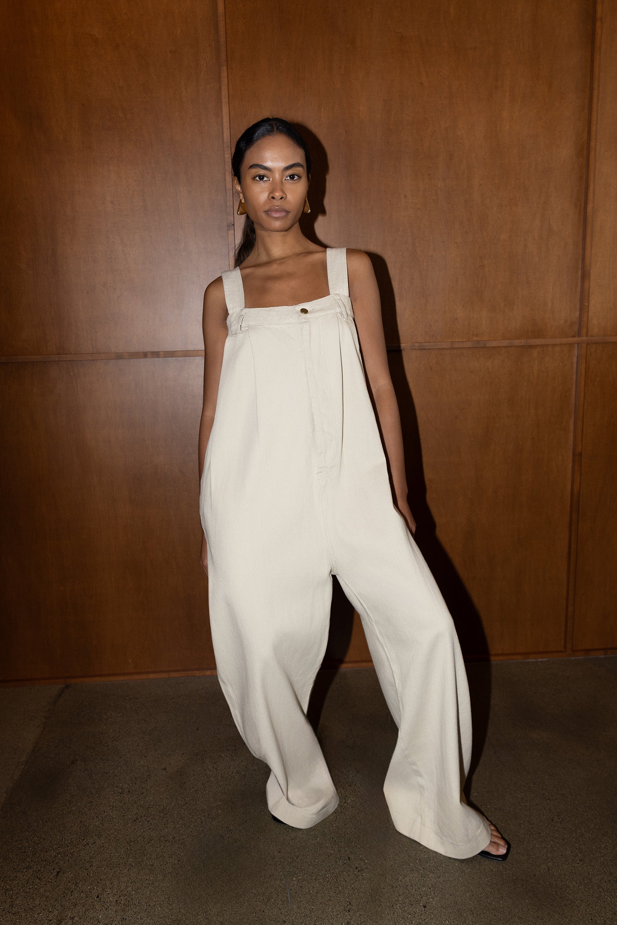 These oversized overalls come in a trouser-like style, with a hidden button fly and belt loops at the top. Wear these overalls over a t-shirt or long sleeve knit top.