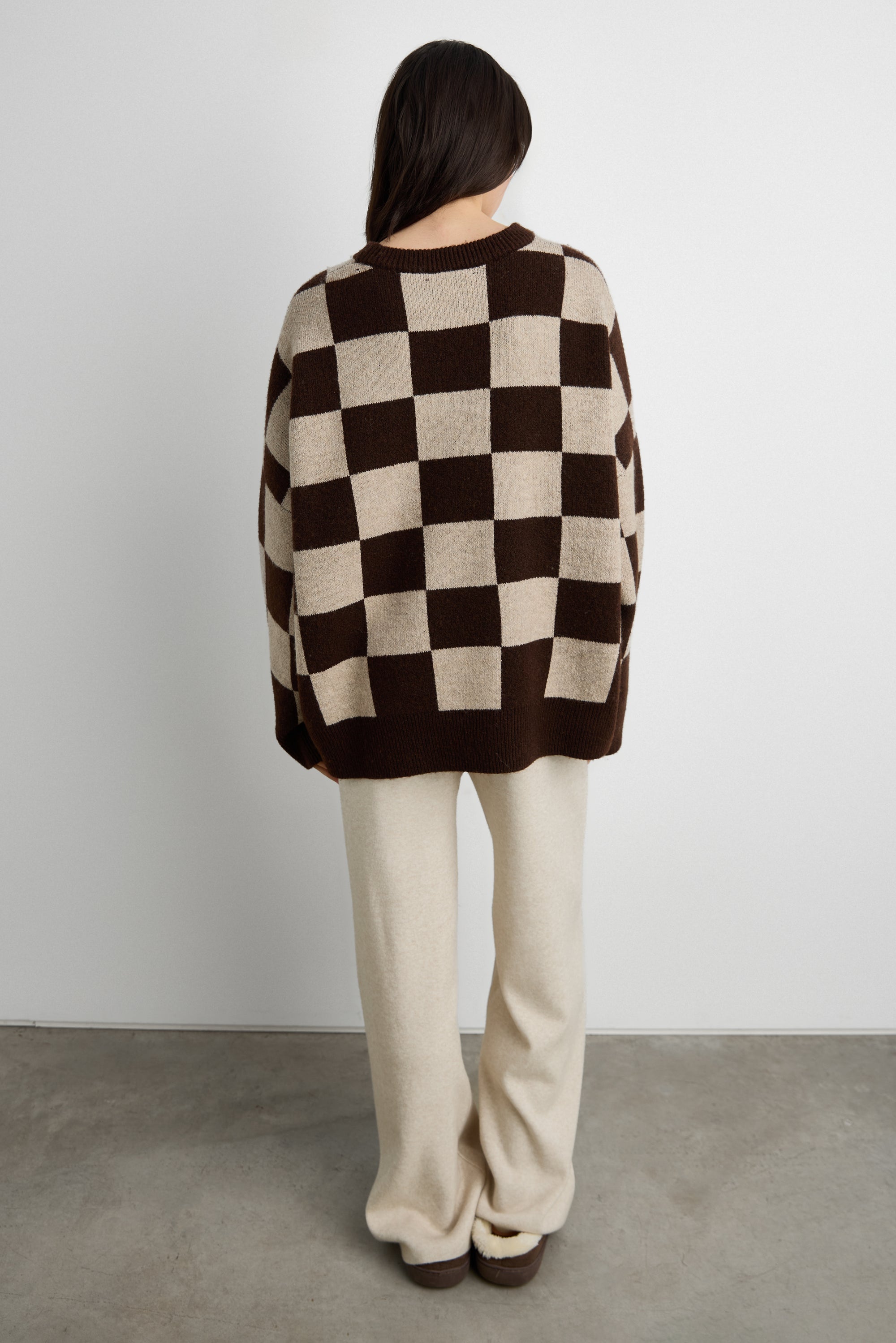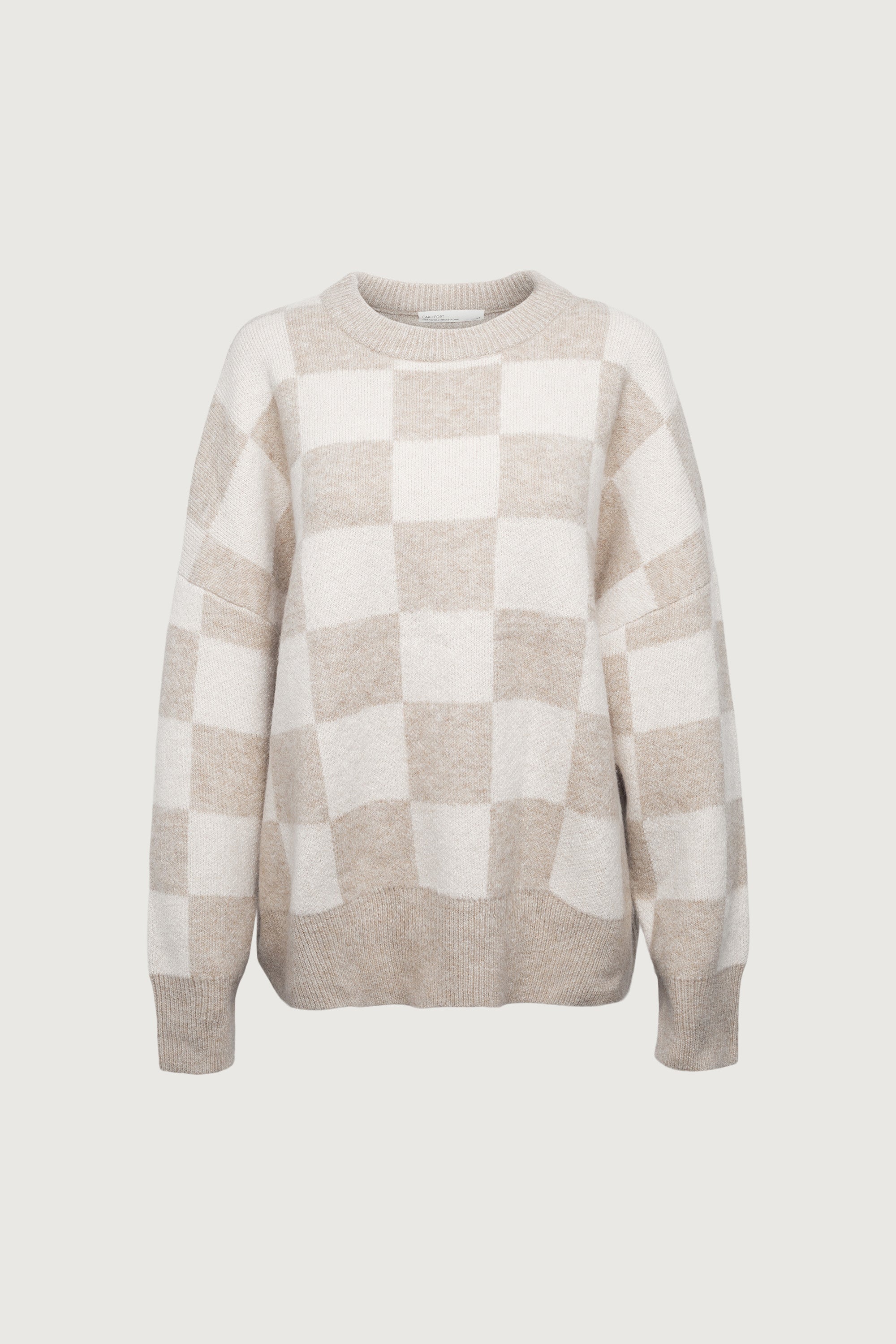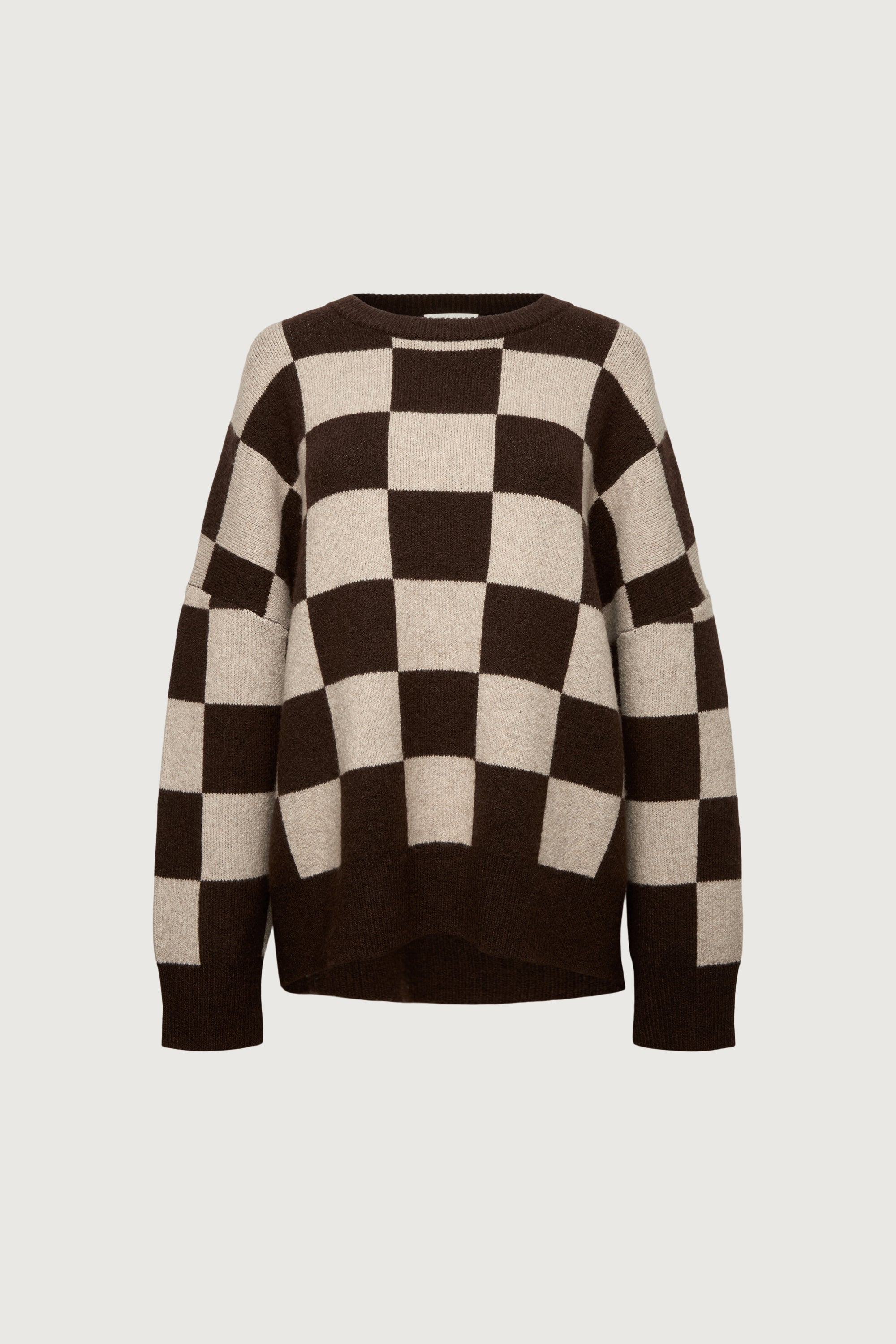 Oversized fit. Checkered knit. Crew neckline. Ribbed trims. Dropped shoulders.