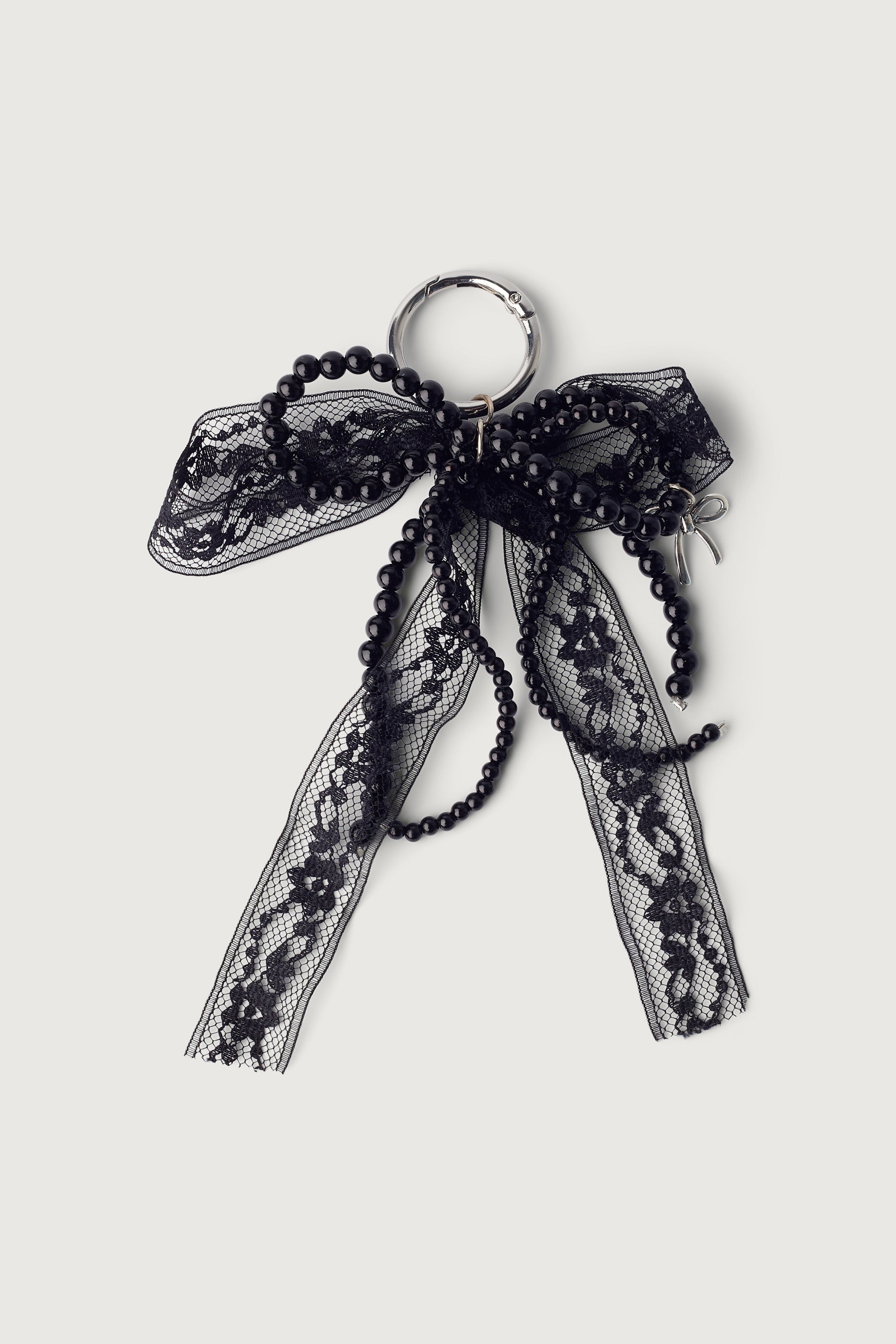 The Pearls and Lace Ribbon Bag Charm provides dainty additional detail to any bag or purse.
