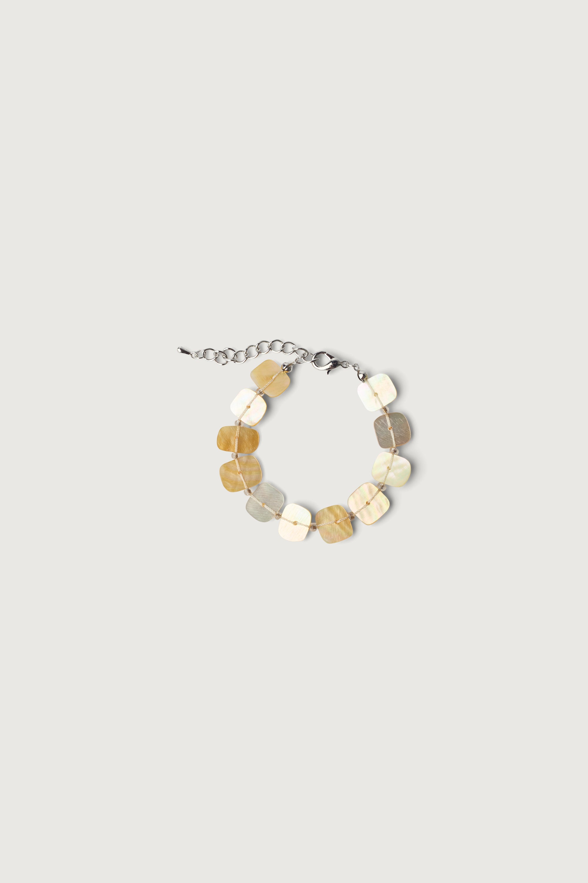 This bracelet features shiny rectangular pearl stones for an earthy look. This bracelet is a perfect addition to any beach outfit. Pair with the matching necklace NK-15459-W.