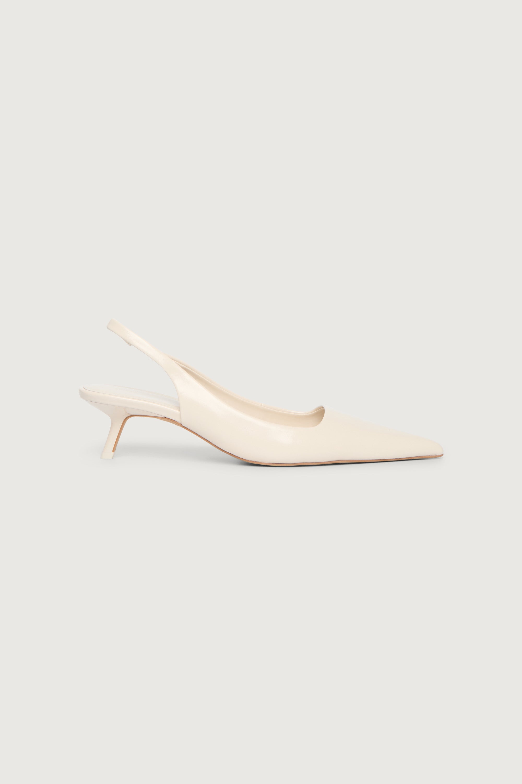 These sling back heels have a pointed toe and a 2" kitten heel. Pair this versatile shoe with any of your office or casual looks.