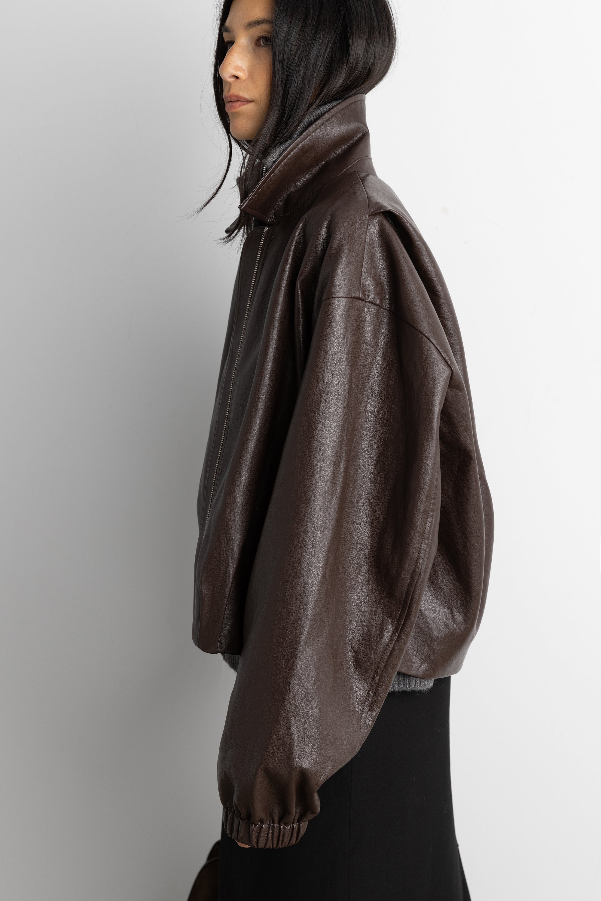 VEGAN LEATHER BOMBER JACKET WITH PLEATS