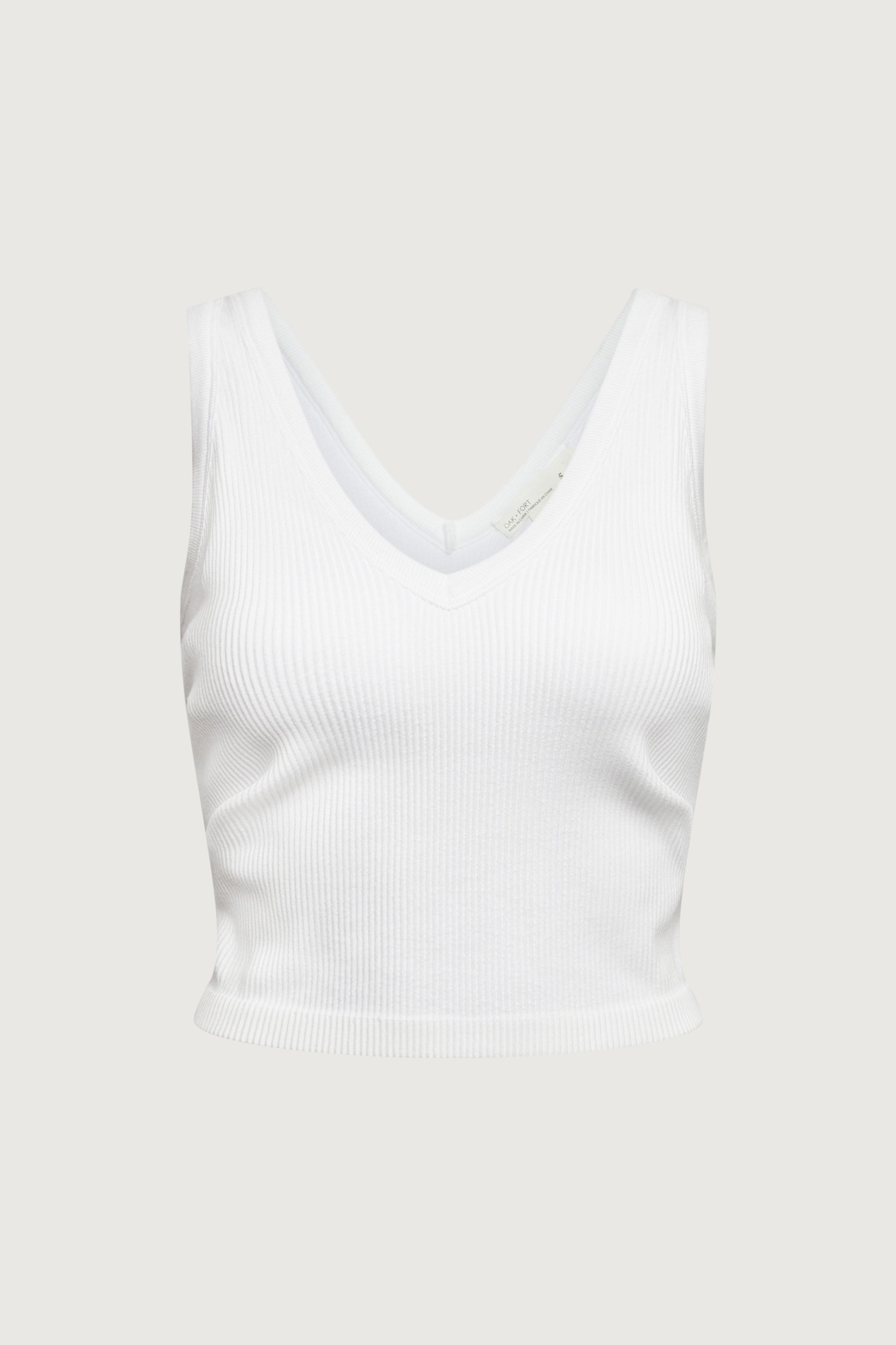 This V-neck tank top is made from a seamless ribbed knit in a slim fit with stretch. It is designed with a built-in padded bra to make your days effortless. An easy go-to to wear all season long, wear it on its own with a pleated skirt or underneath blazers.
