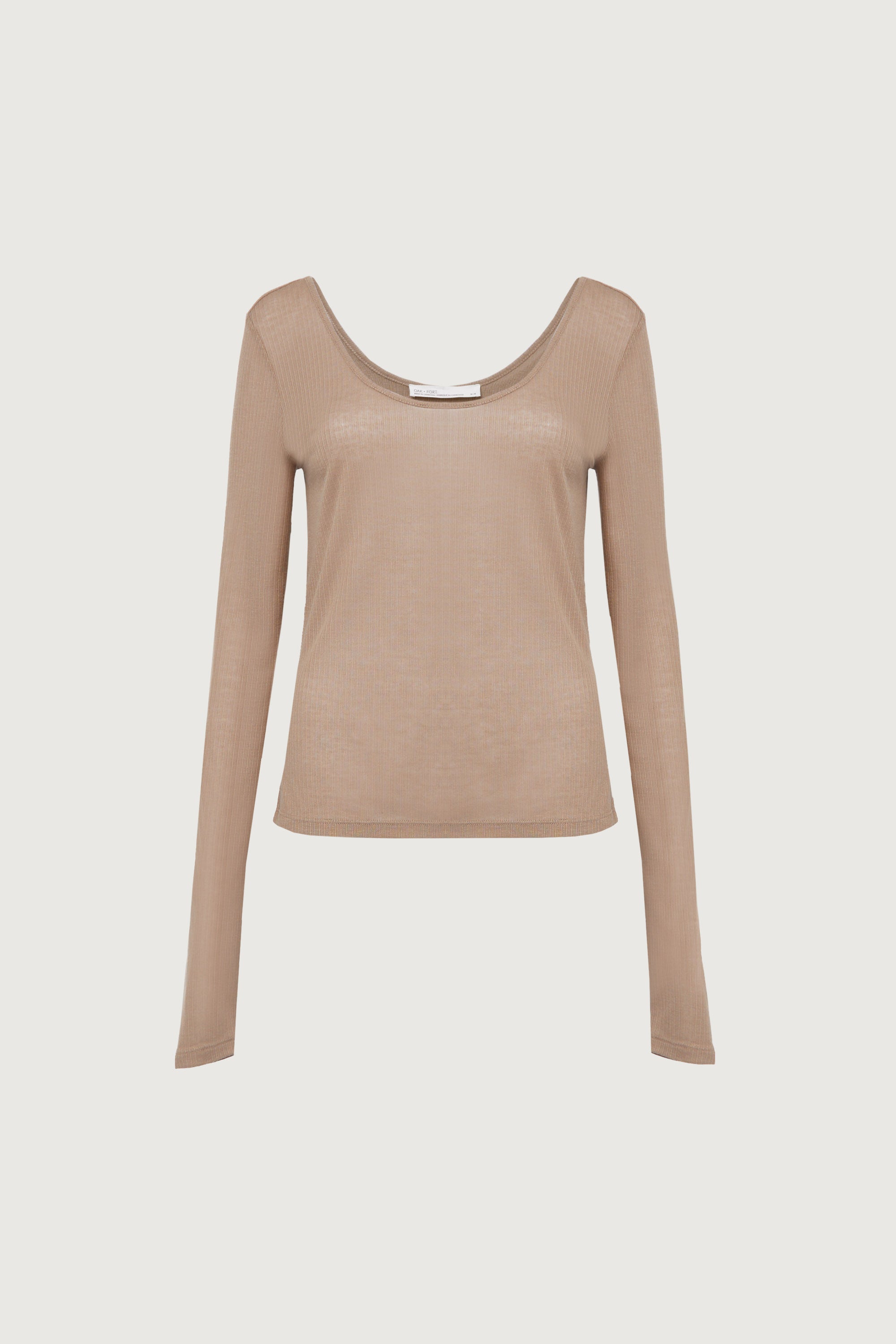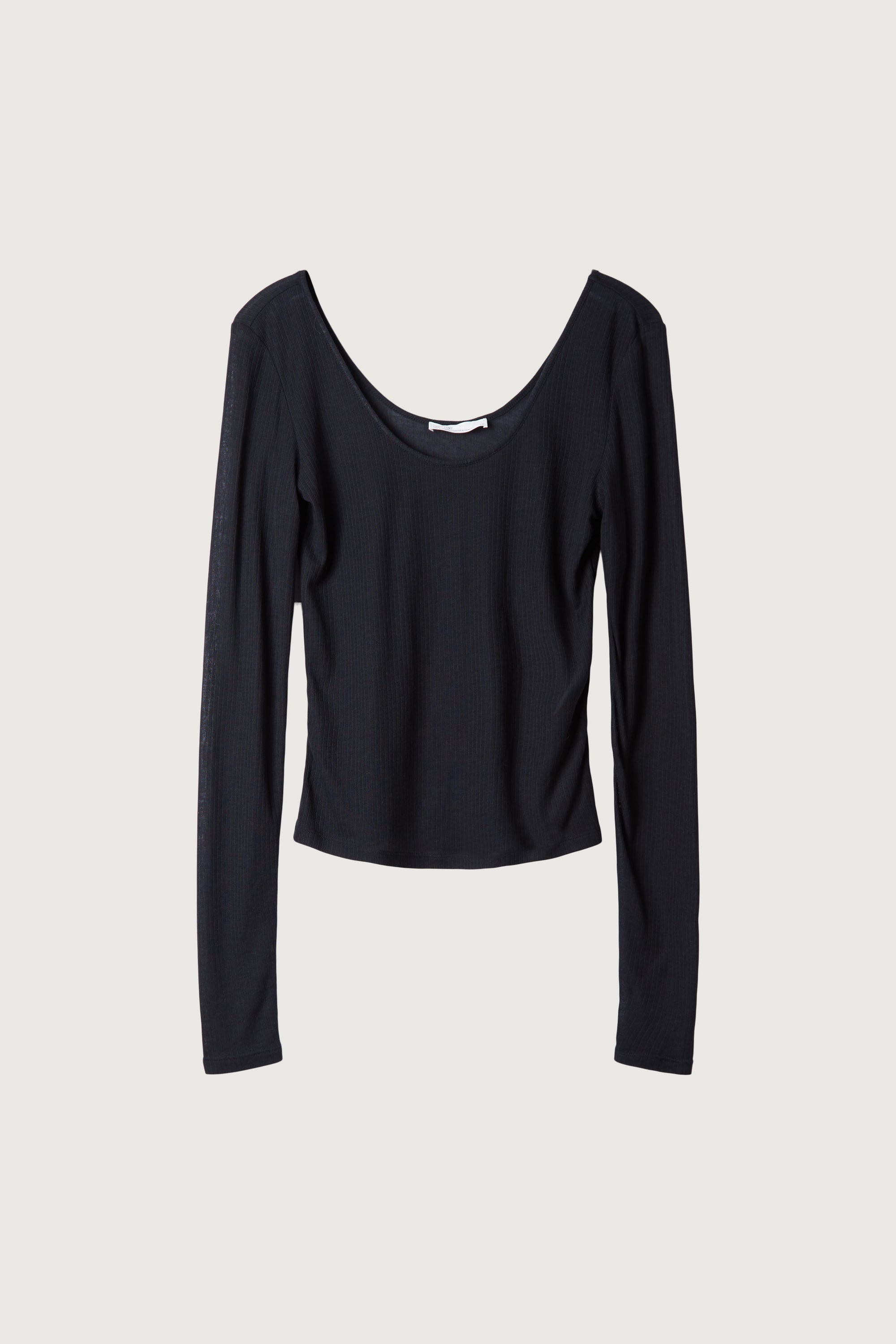 SHEER SCOOP NECK LONG SLEEVE TOP
