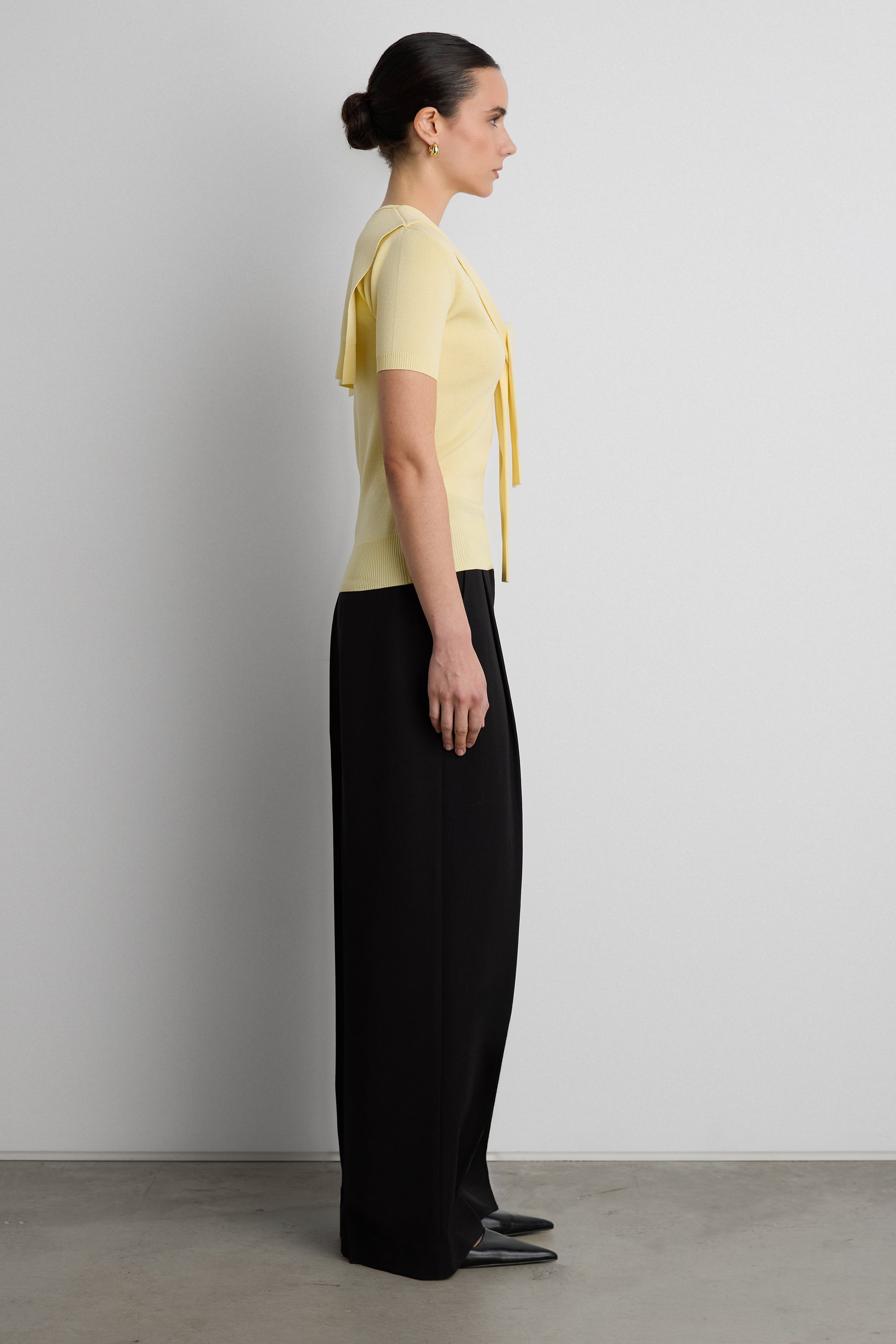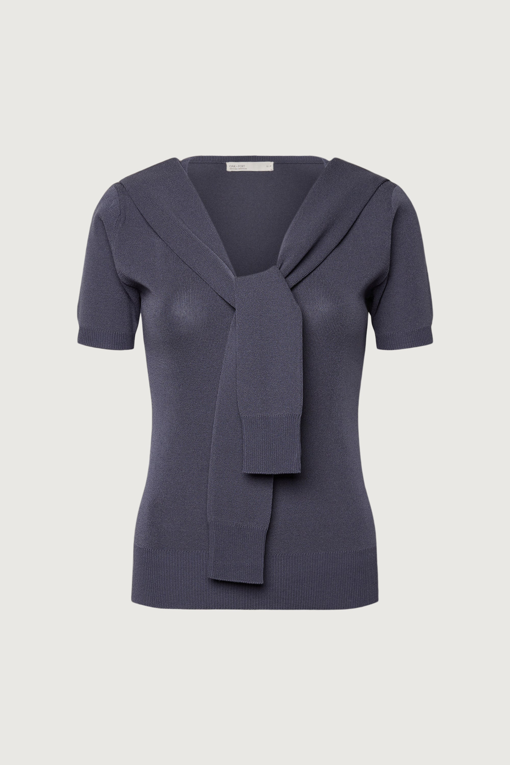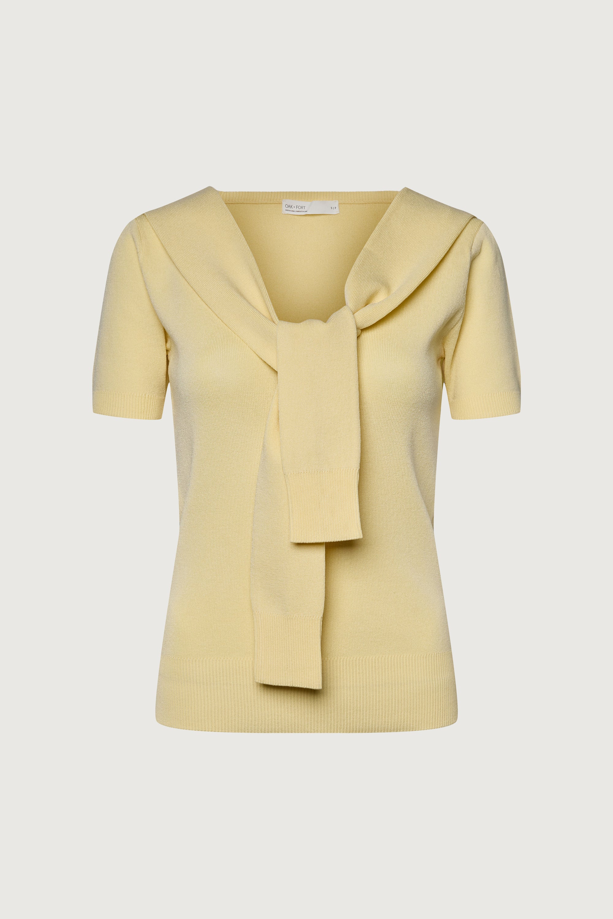 SHORT SLEEVE SWEATER WITH TIED FRONT EFFECT
