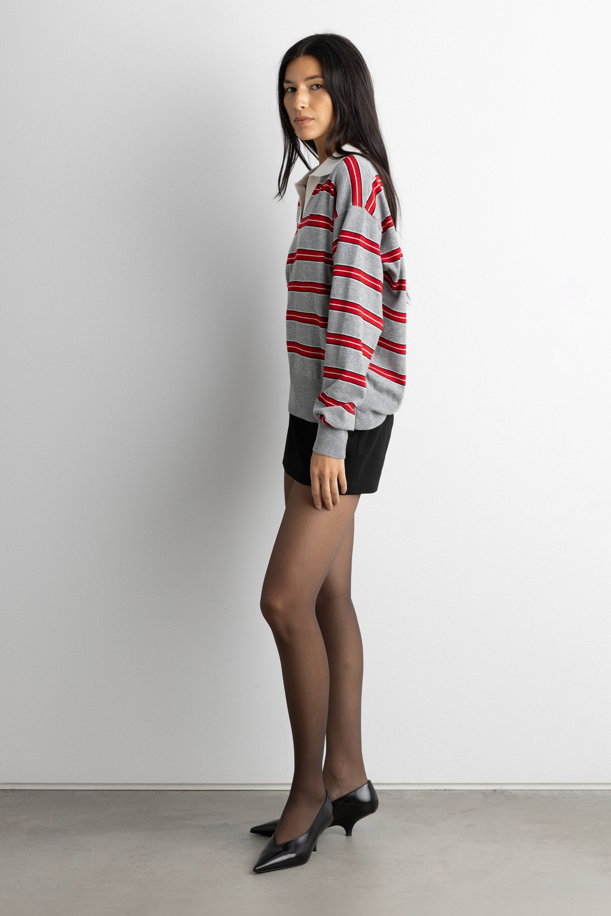 STRIPED RUGBY POLO SWEATER