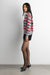 Striped knit fabric. Contrast collared V-neckline. Ribbed trims.