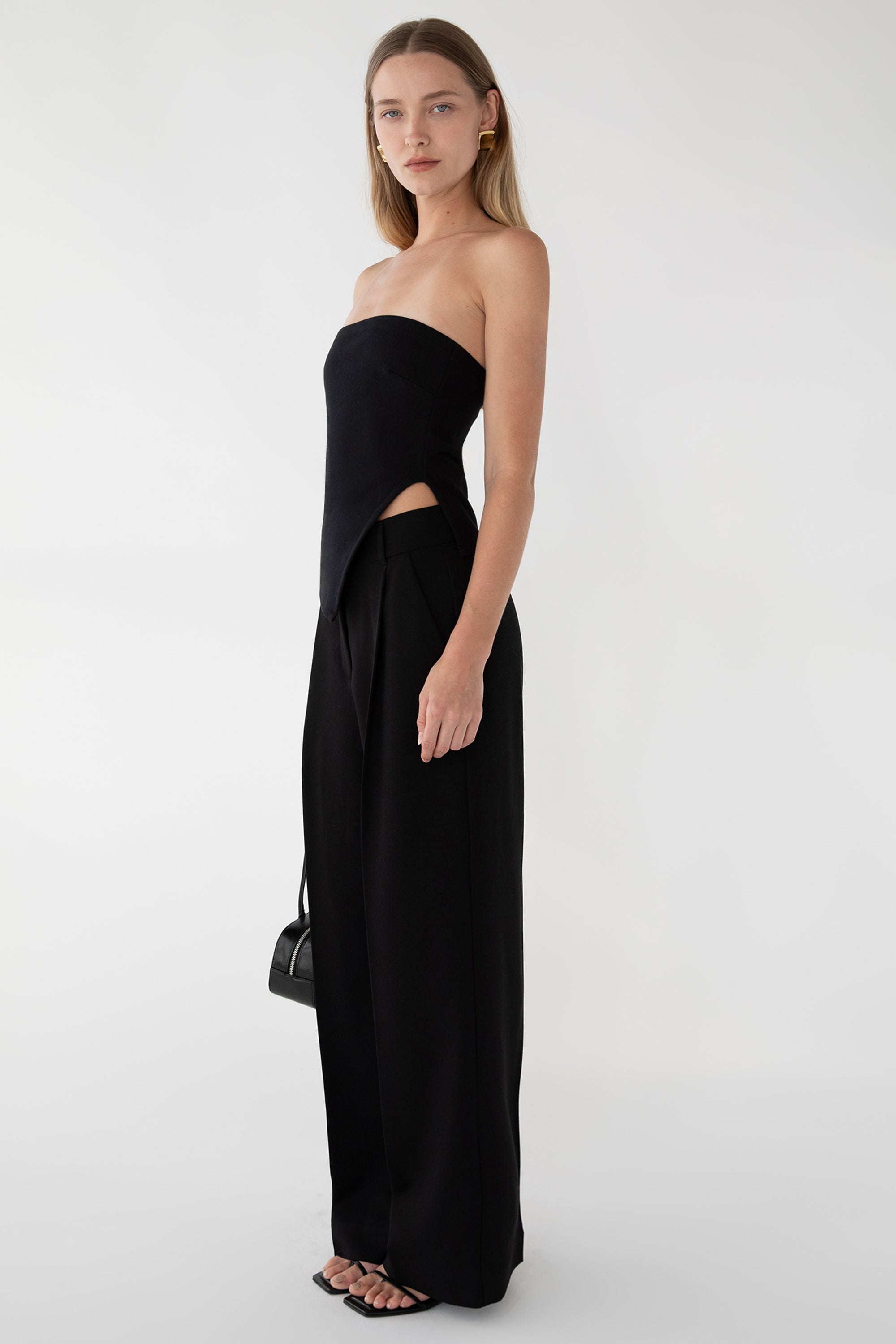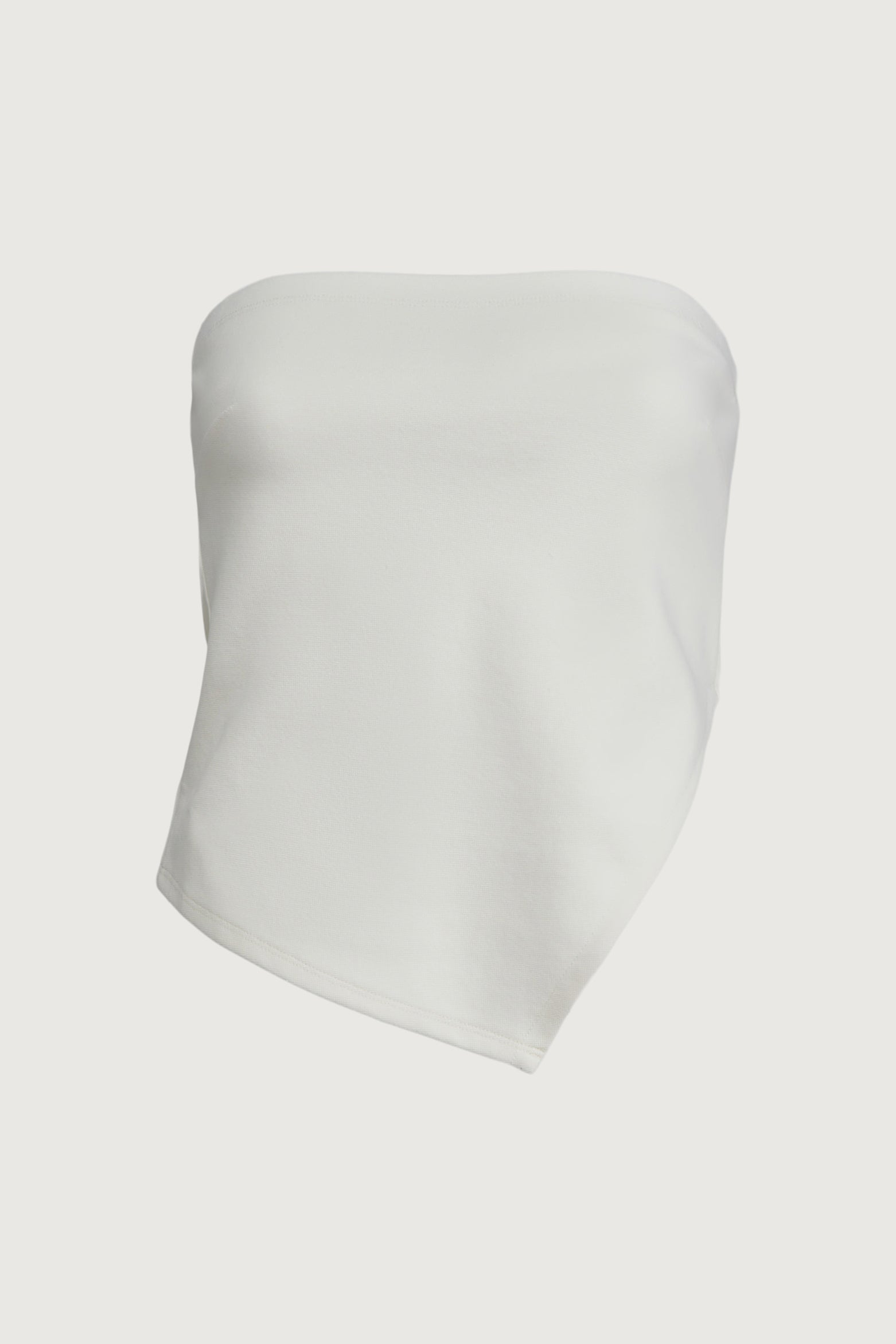 This cropped tube top is cut from a thick cotton blend and is detailed with a side slit. The perfect top that pairs well with any bottoms from midi slip skirts to high-rise trousers. Style it with Ponte Knit Mini Skirt (SK-10567-W).