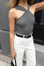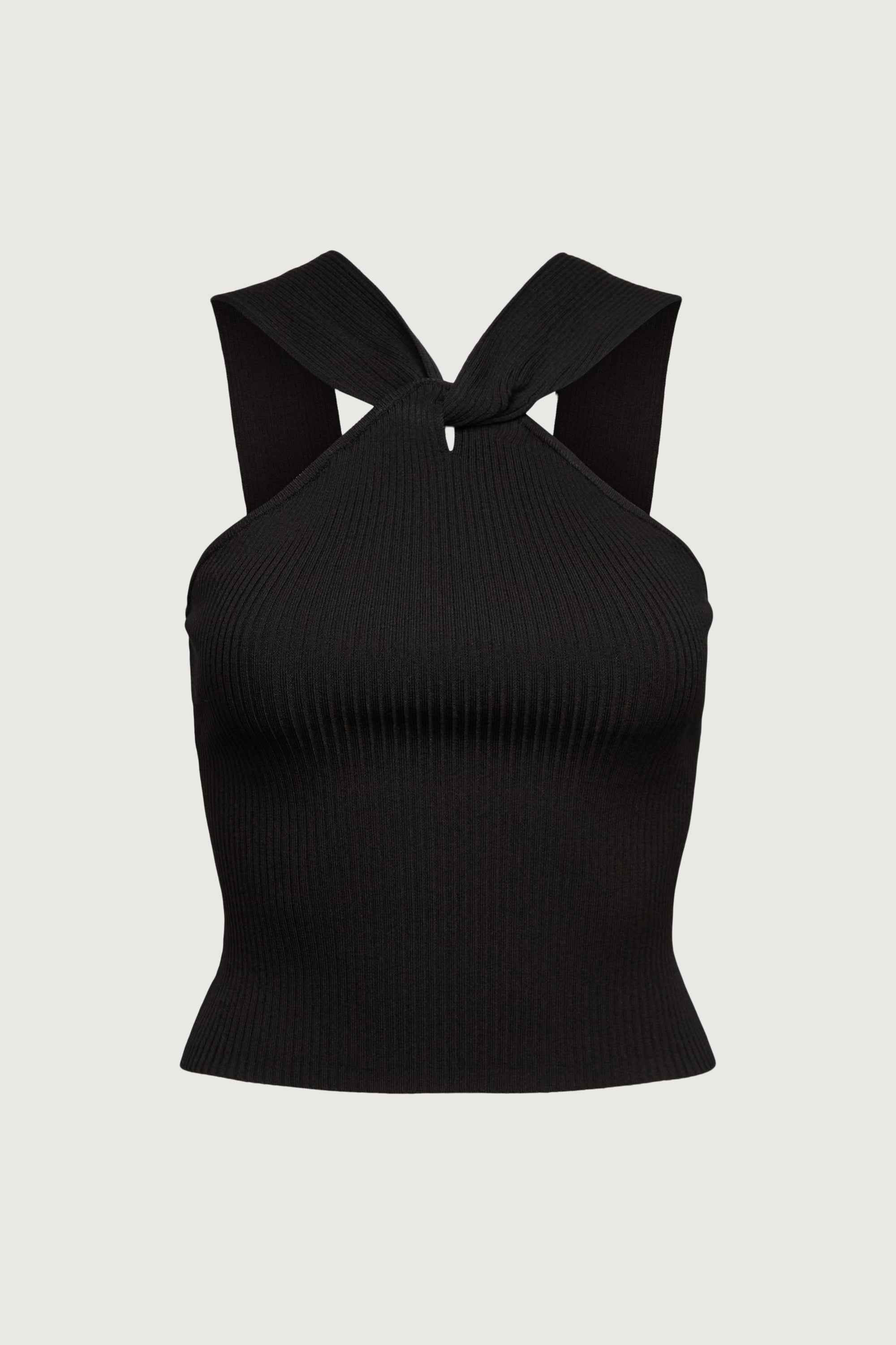 This rib-knit tank has a twist keyhole front and is made in a slim fit. You can wear it casually with jeans or with a mini skirt and heels for a night out.