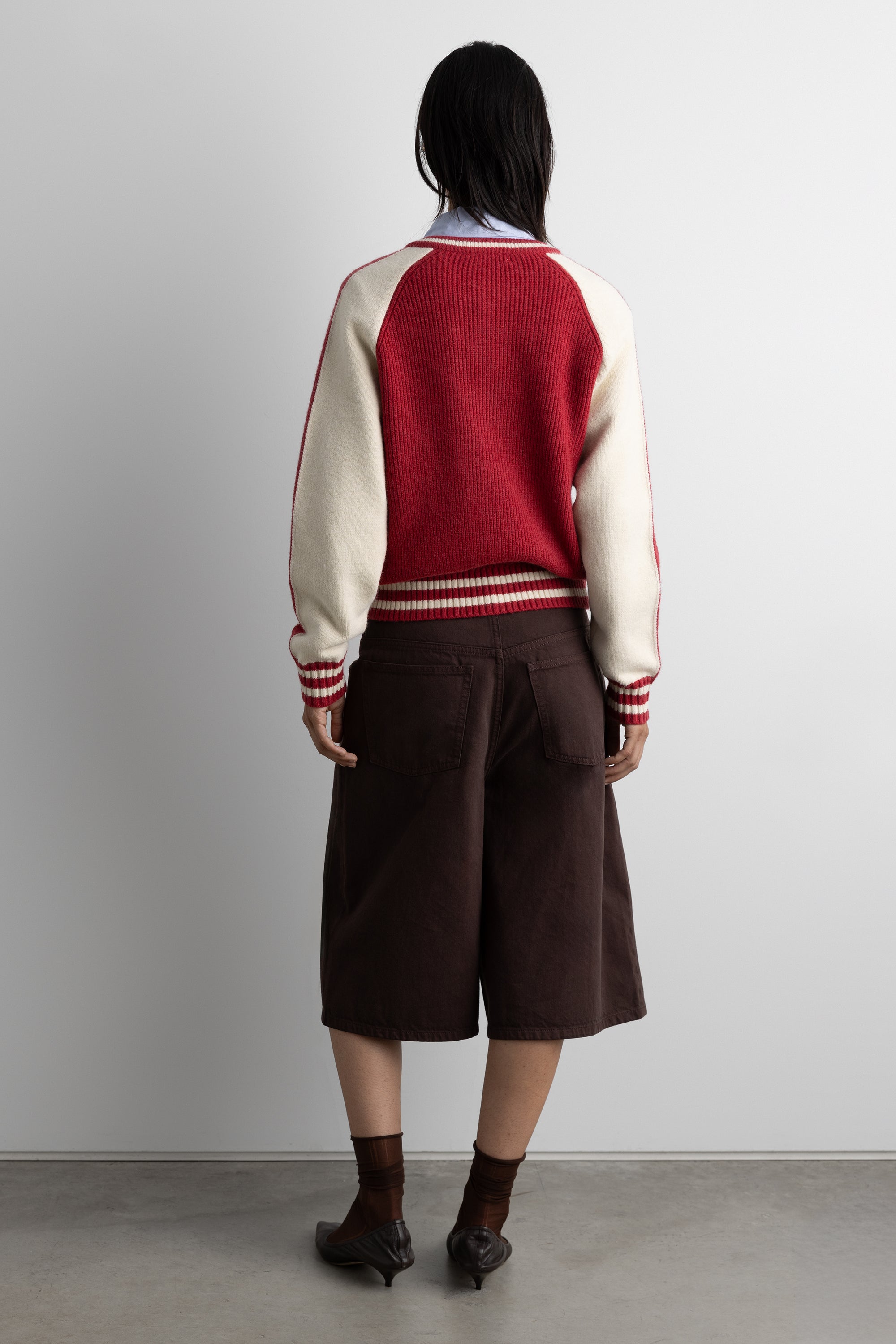 TWO TONE VARSITY ZIP-UP KNIT CARDIGAN