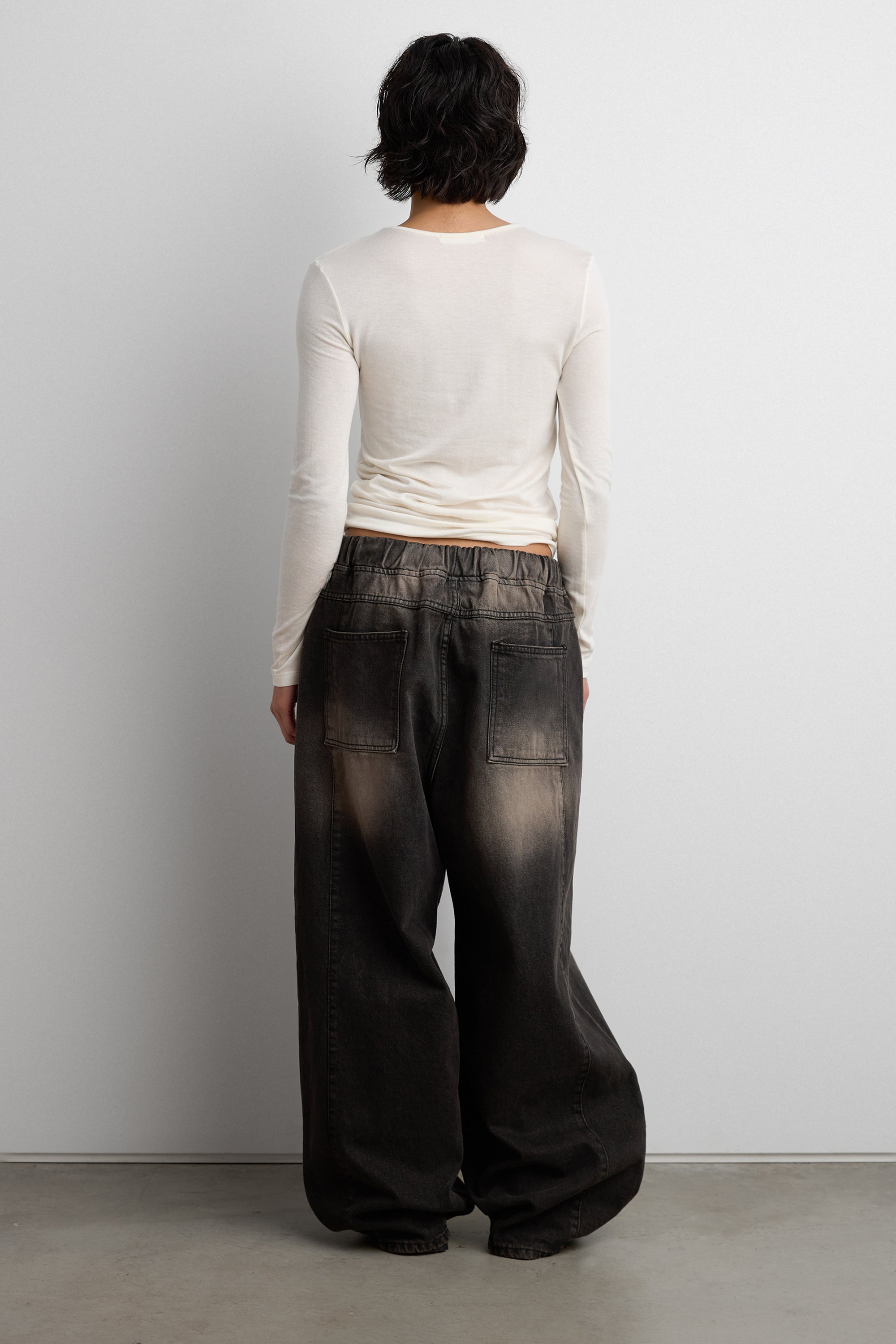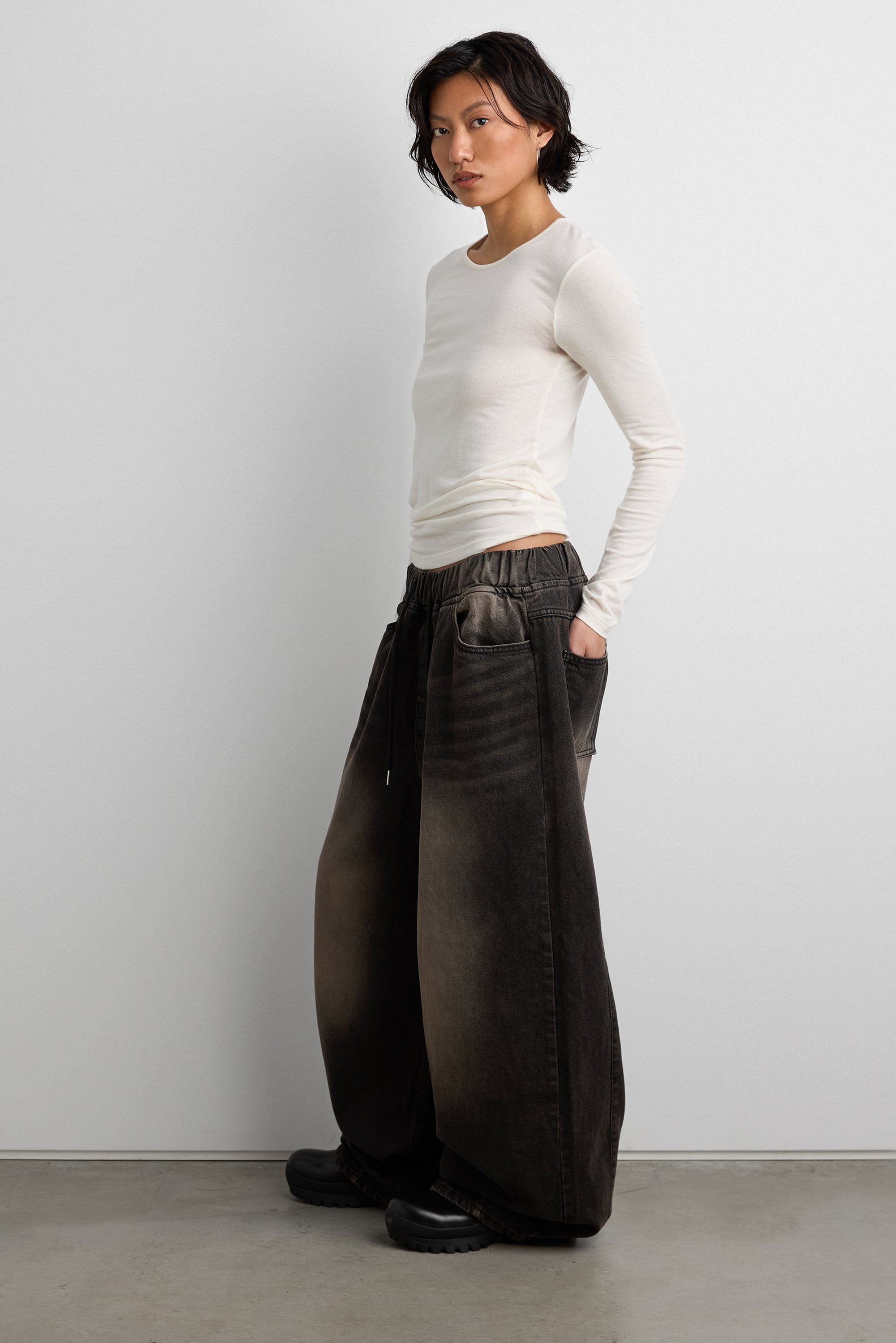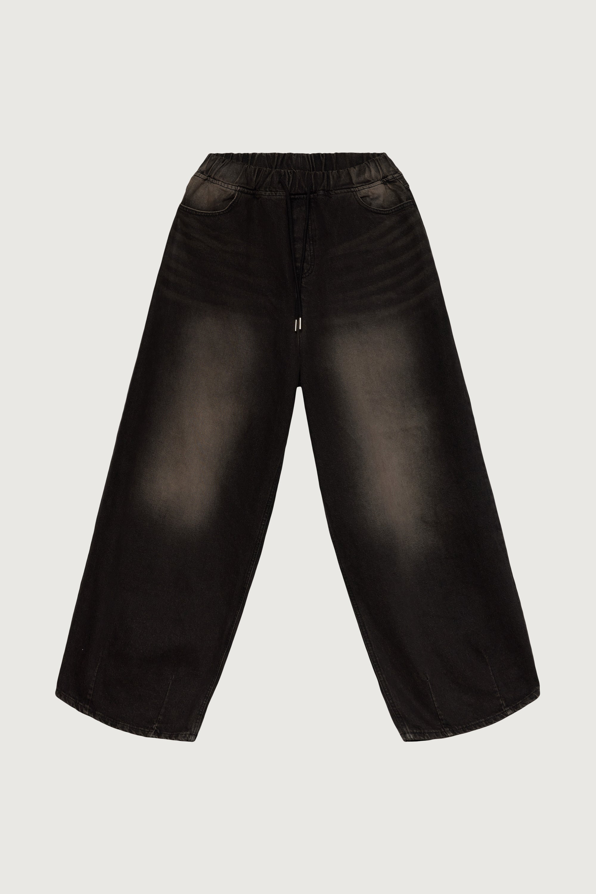 Vintage wash. Elastic waistband with drawstring. Wide leg.