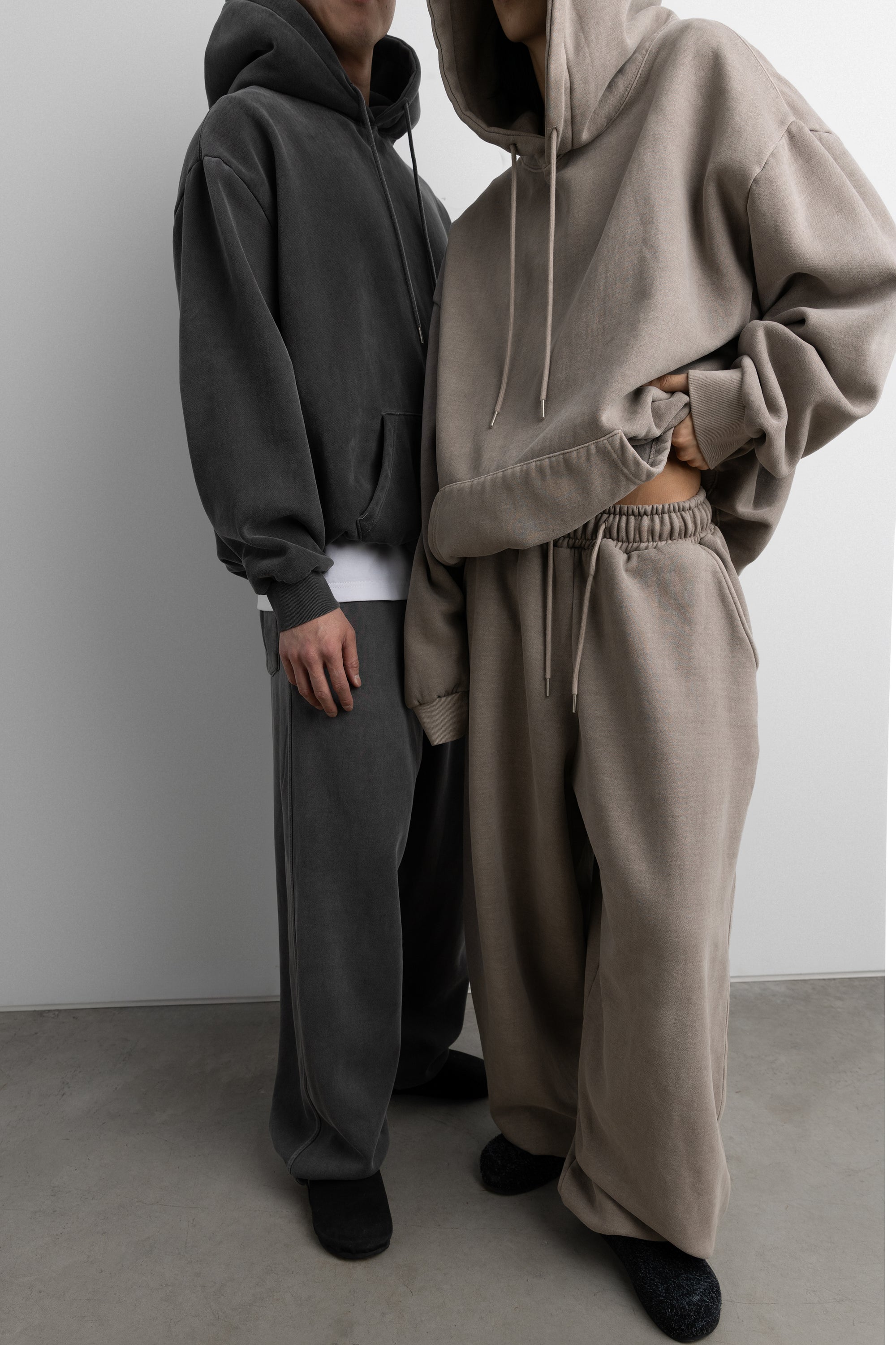 These vintage wash sweatpants feature a relaxed wide-leg silhouette, fleece lined and an adjustable drawstring waistband for everyday comfort. Crafted from a heavyweight cotton blend with a worn-in finish, they offer a laid-back look that's easy to style with tanks, knits, or matching vintage wash pieces.